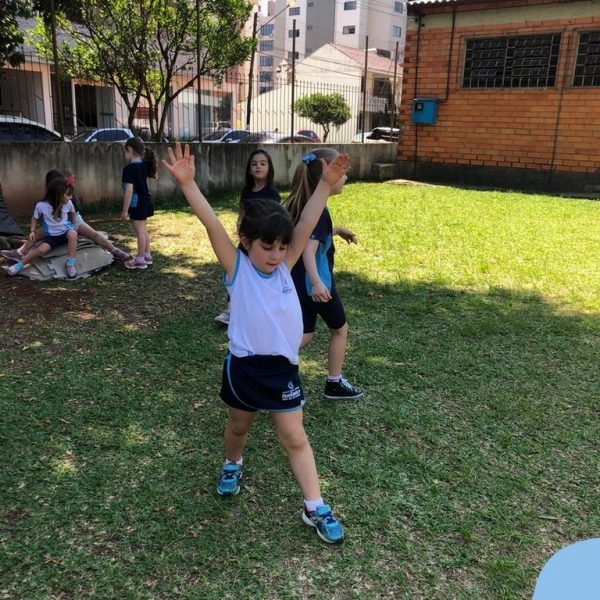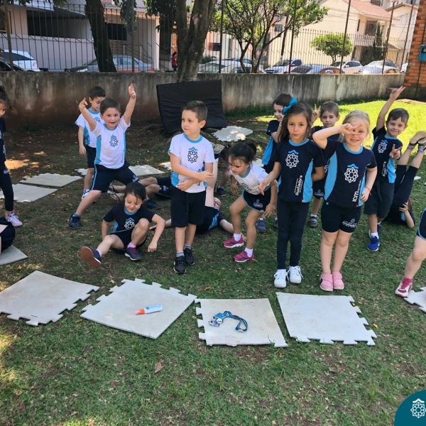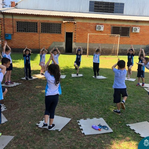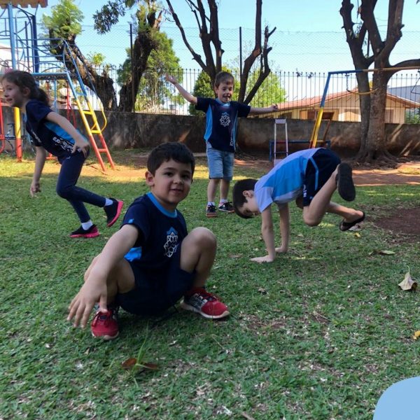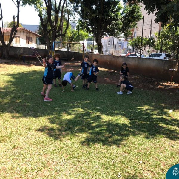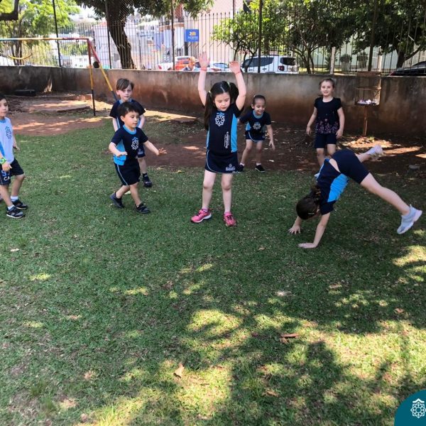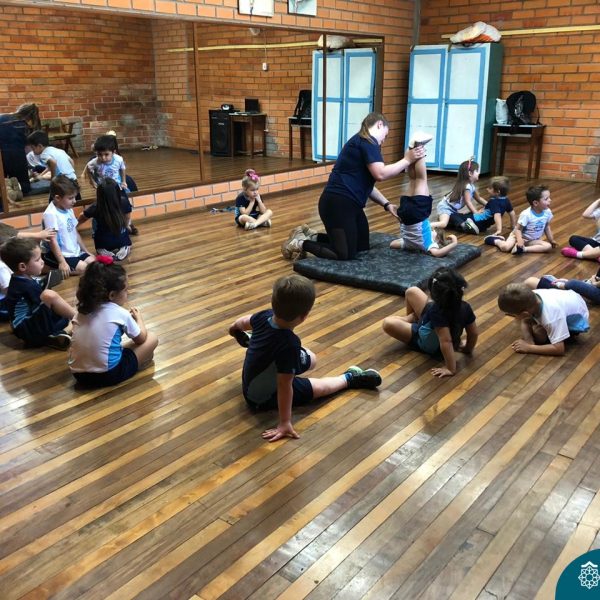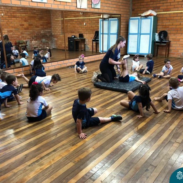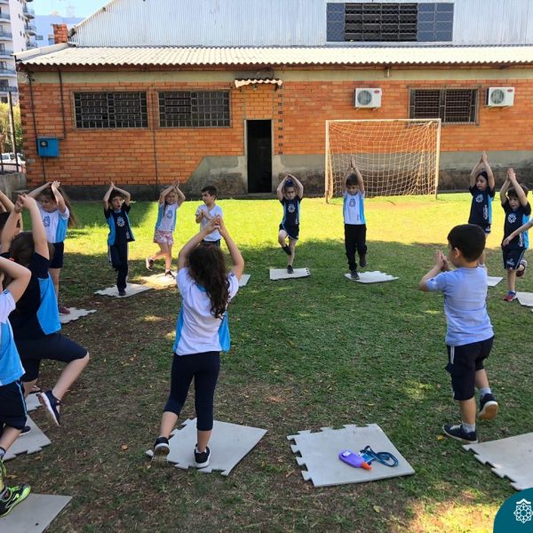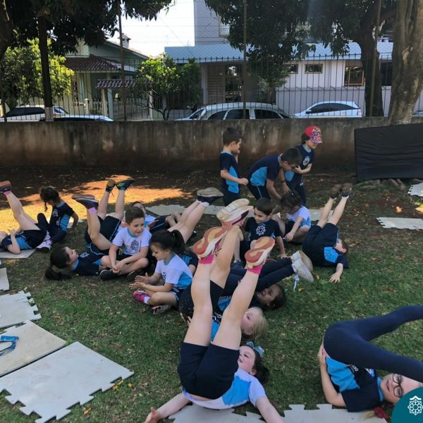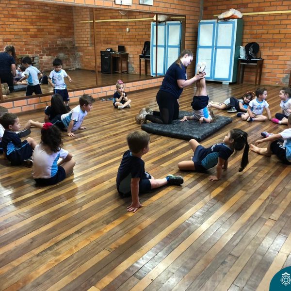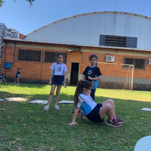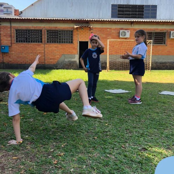 Nas aulas de Educação Física e Motricidade da educação infantil, foram trabalhados com a professora Thays Londero, nos meses de agosto e setembro, a Ginástica Geral com caráter educacional, tendo o desenvolvimento integral do aluno, respeitando a fase de aprendizagem deles, desenvolvido através de uma metodologia lúdica, sendo ela não competitiva, permitindo a socialização, respeitando os limites individuais, contribui com o desenvolvimento motor, social e afetivo do aluno.