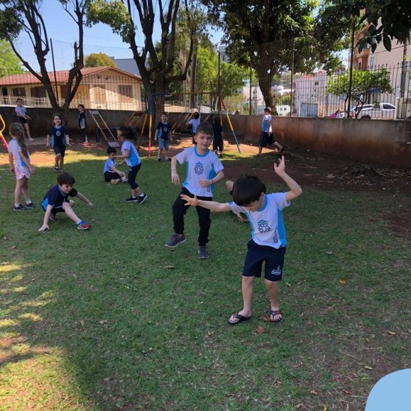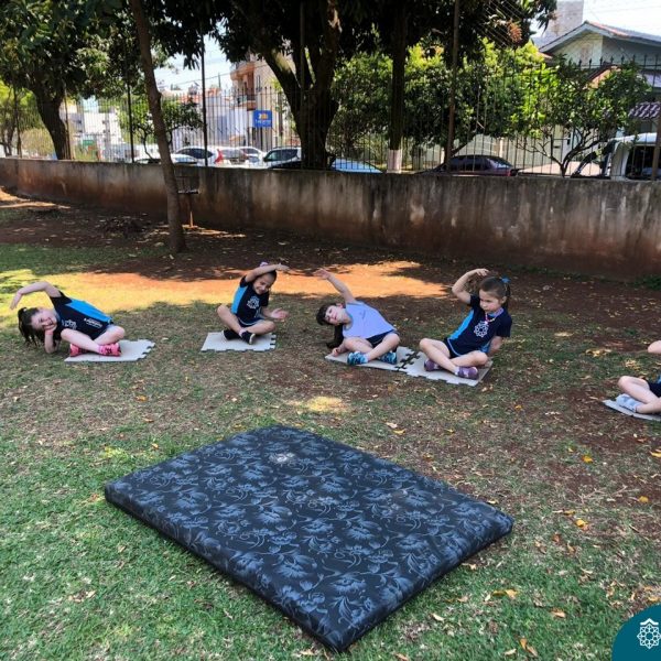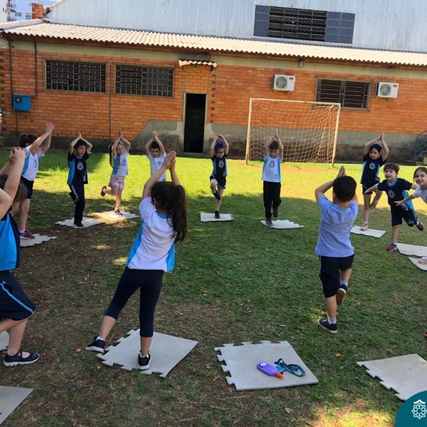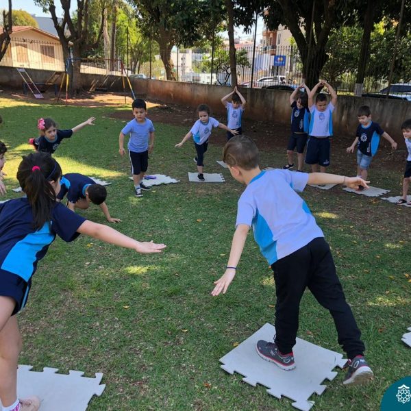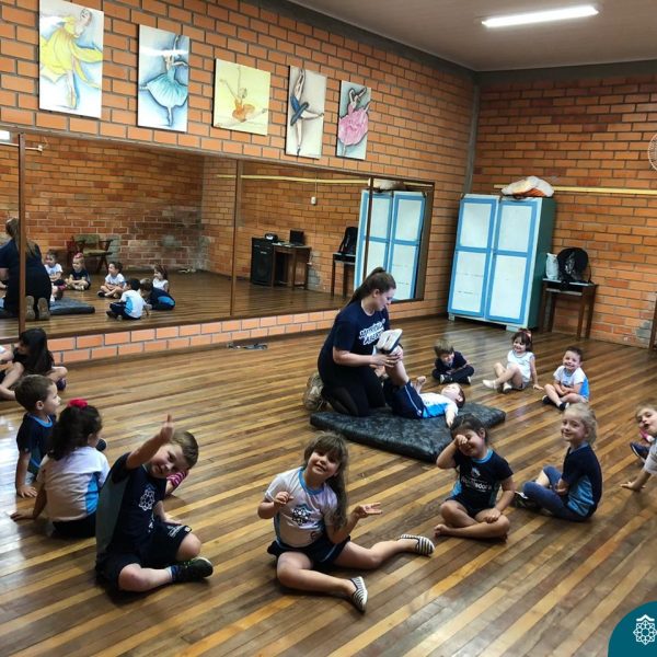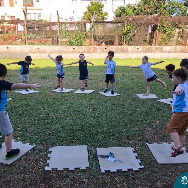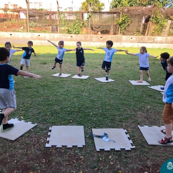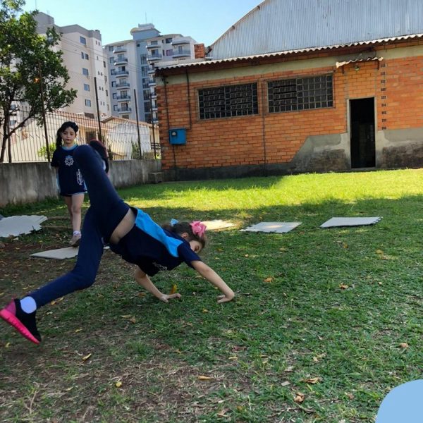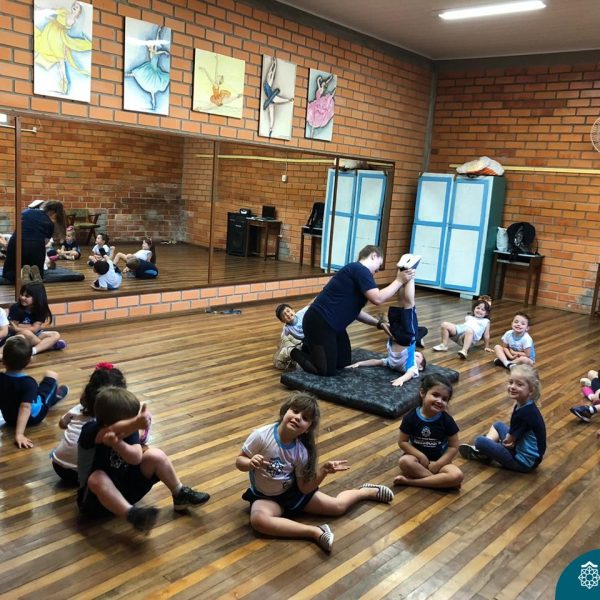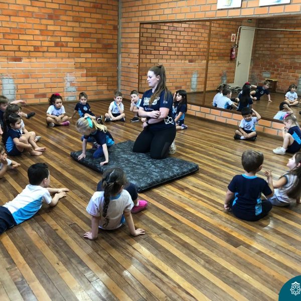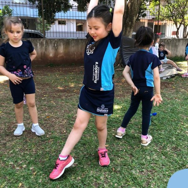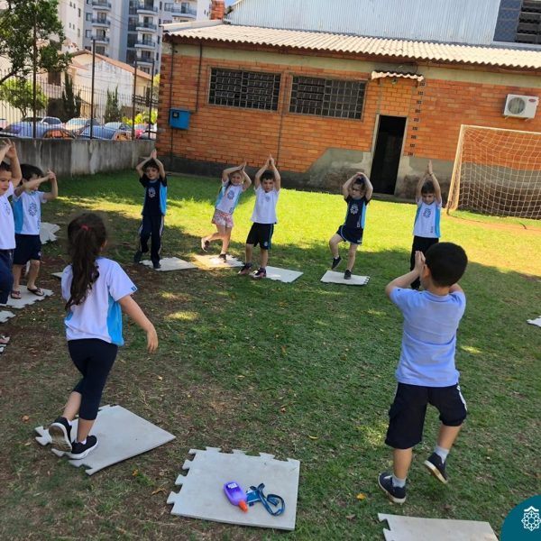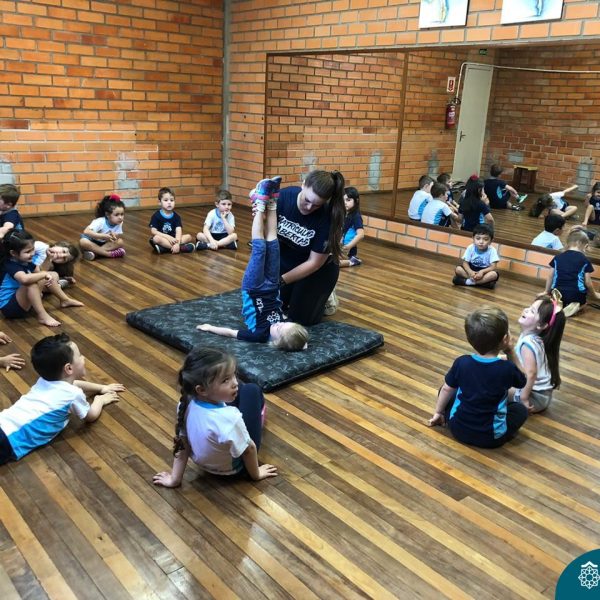 Nas aulas de Educação Física e Motricidade da educação infantil, foram trabalhados com a professora Thays Londero, nos meses de agosto e setembro, a Ginástica Geral com caráter educacional, tendo o desenvolvimento integral do aluno, respeitando a fase de aprendizagem deles, desenvolvido através de uma metodologia lúdica, sendo ela não competitiva, permitindo a socialização, respeitando os limites individuais, contribui com o desenvolvimento motor, social e afetivo do aluno.