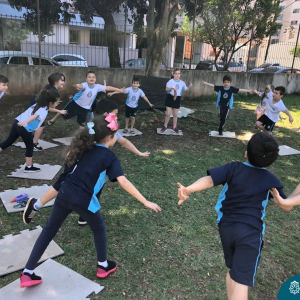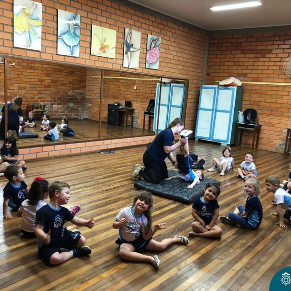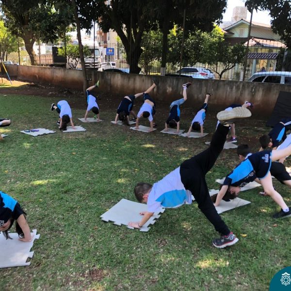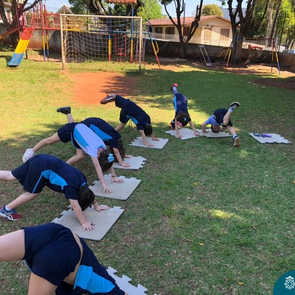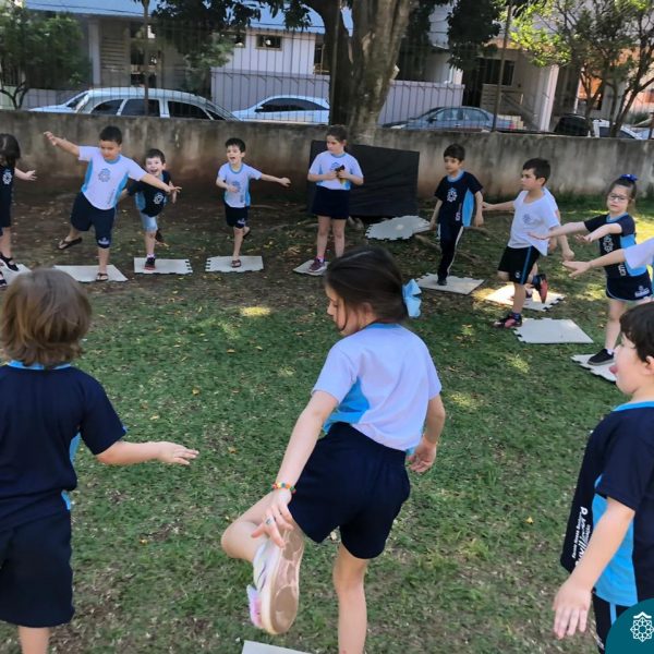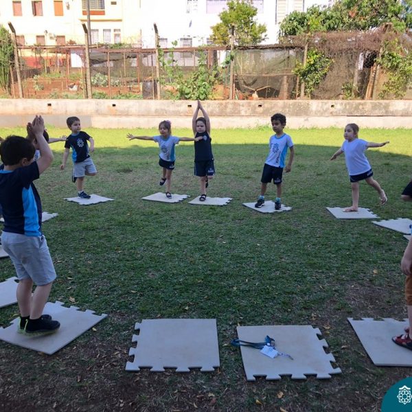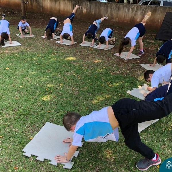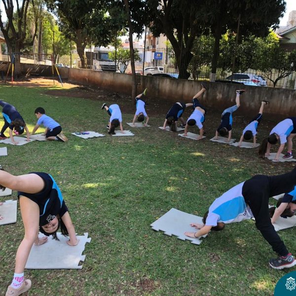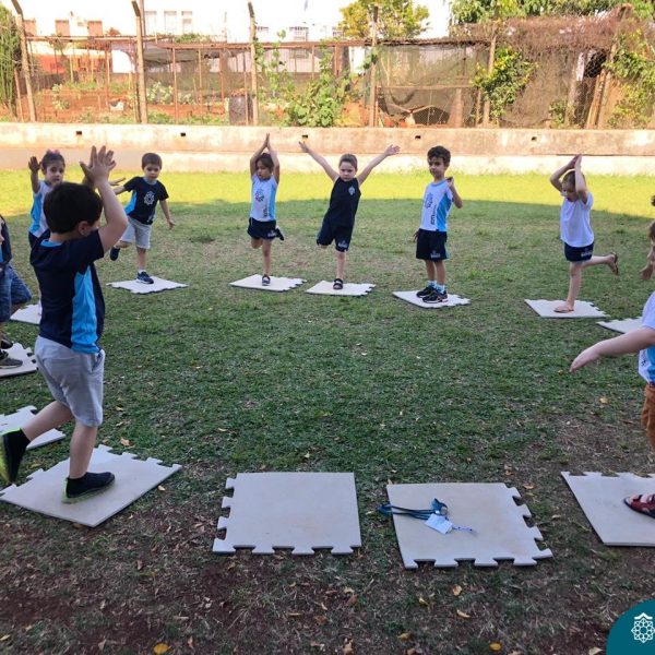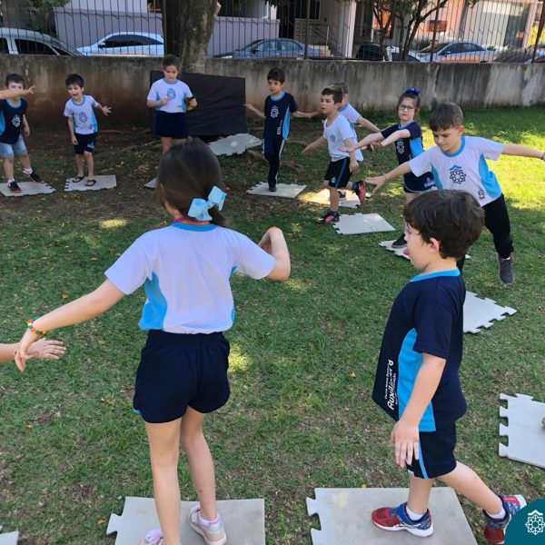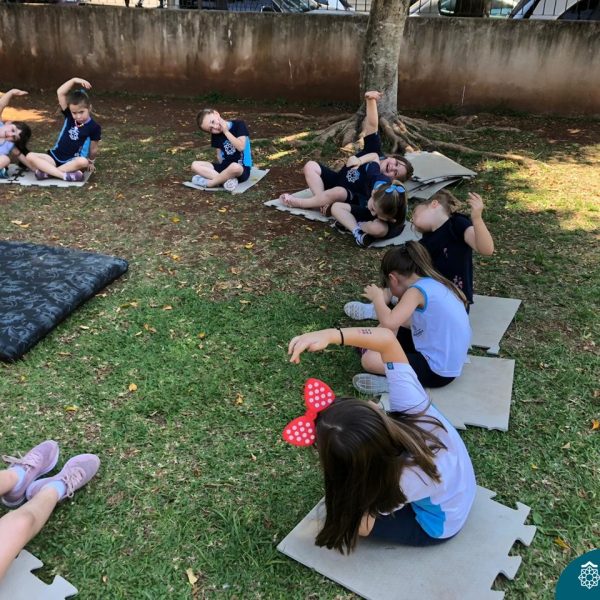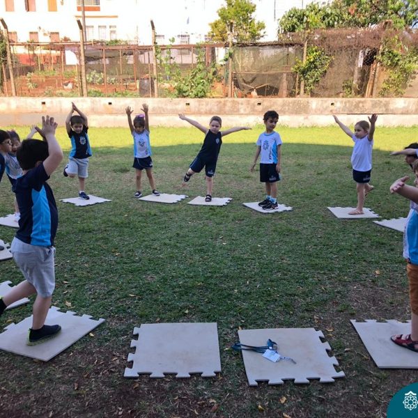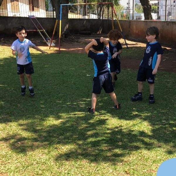 Nas aulas de Educação Física e Motricidade da educação infantil, foram trabalhados com a professora Thays Londero, nos meses de agosto e setembro, a Ginástica Geral com caráter educacional, tendo o desenvolvimento integral do aluno, respeitando a fase de aprendizagem deles, desenvolvido através de uma metodologia lúdica, sendo ela não competitiva, permitindo a socialização, respeitando os limites individuais, contribui com o desenvolvimento motor, social e afetivo do aluno.