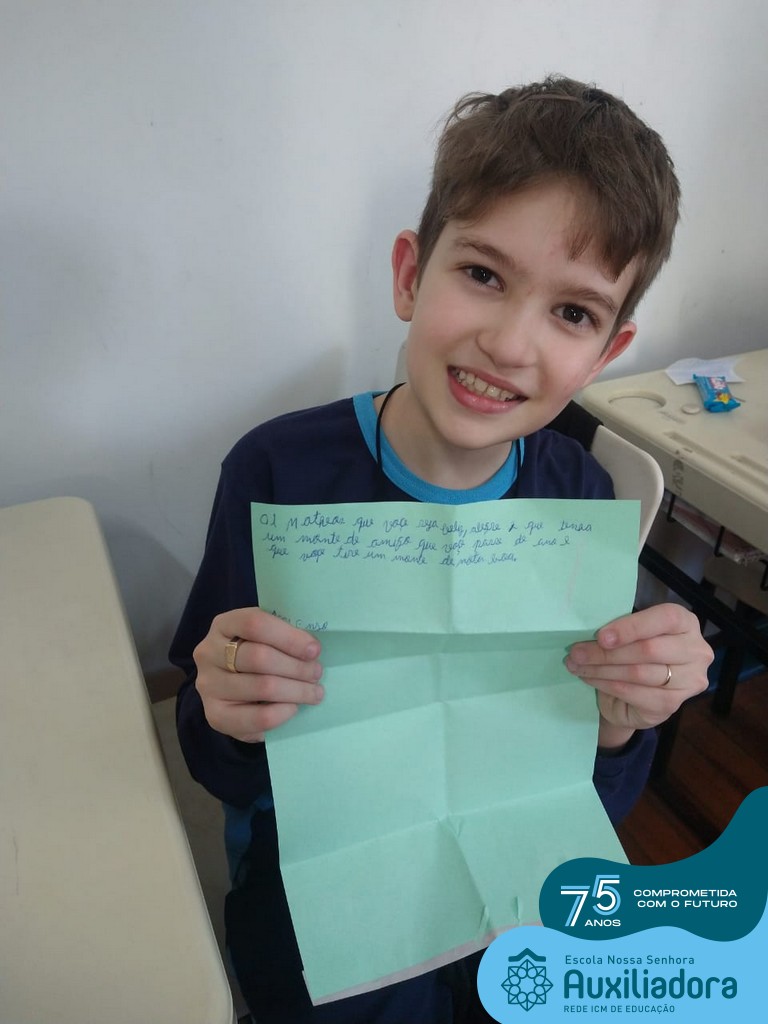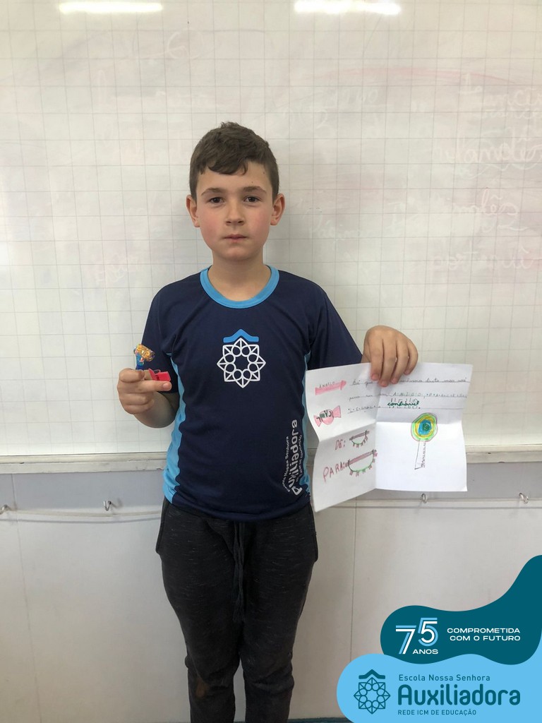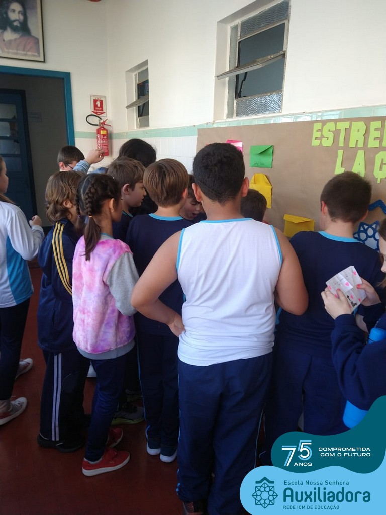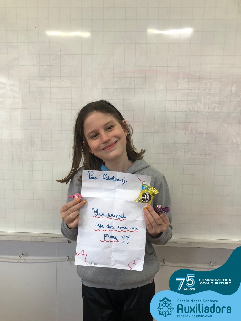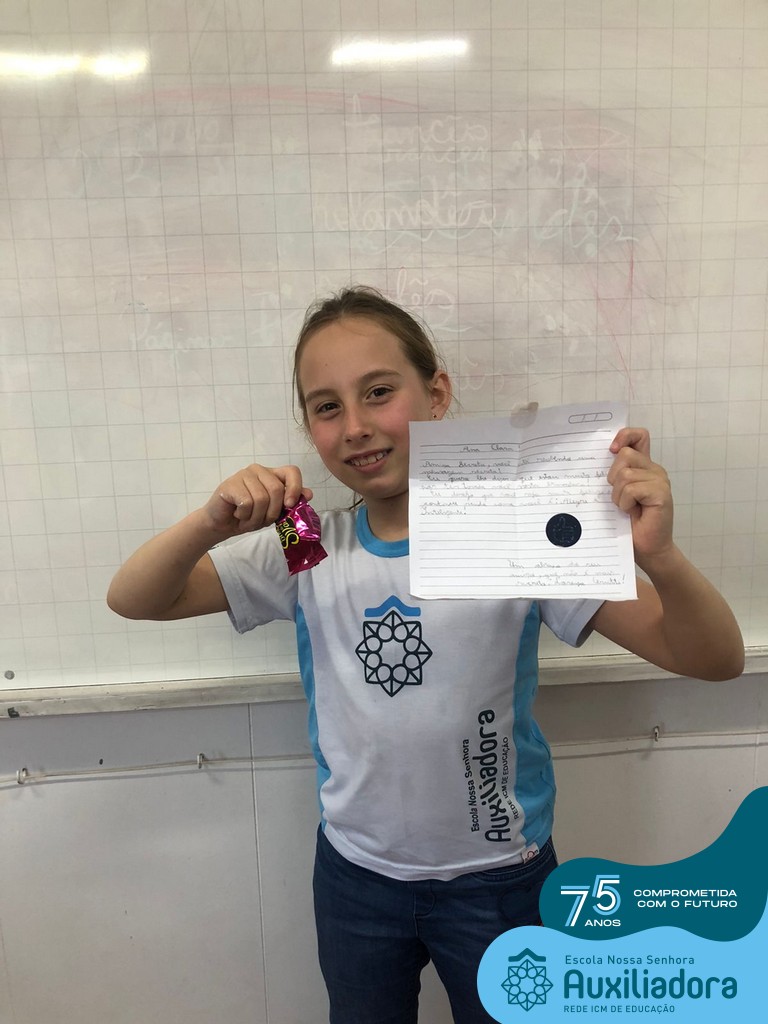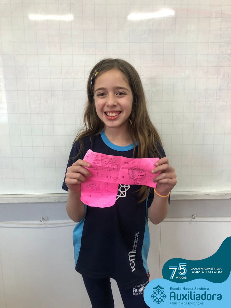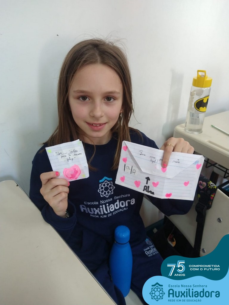 Na tarde desta terça-feira, 23, as turmas do 4º ano 41 e 42 concluíram a atividade “Escola Auxiliadora: Criando laços”. Os alunos receberam de seus amigos secretos em seus “correios”, uma cartinha com bons desejos para o ano letivo, estreitando laços de amizade e coleguismo entre as turmas.