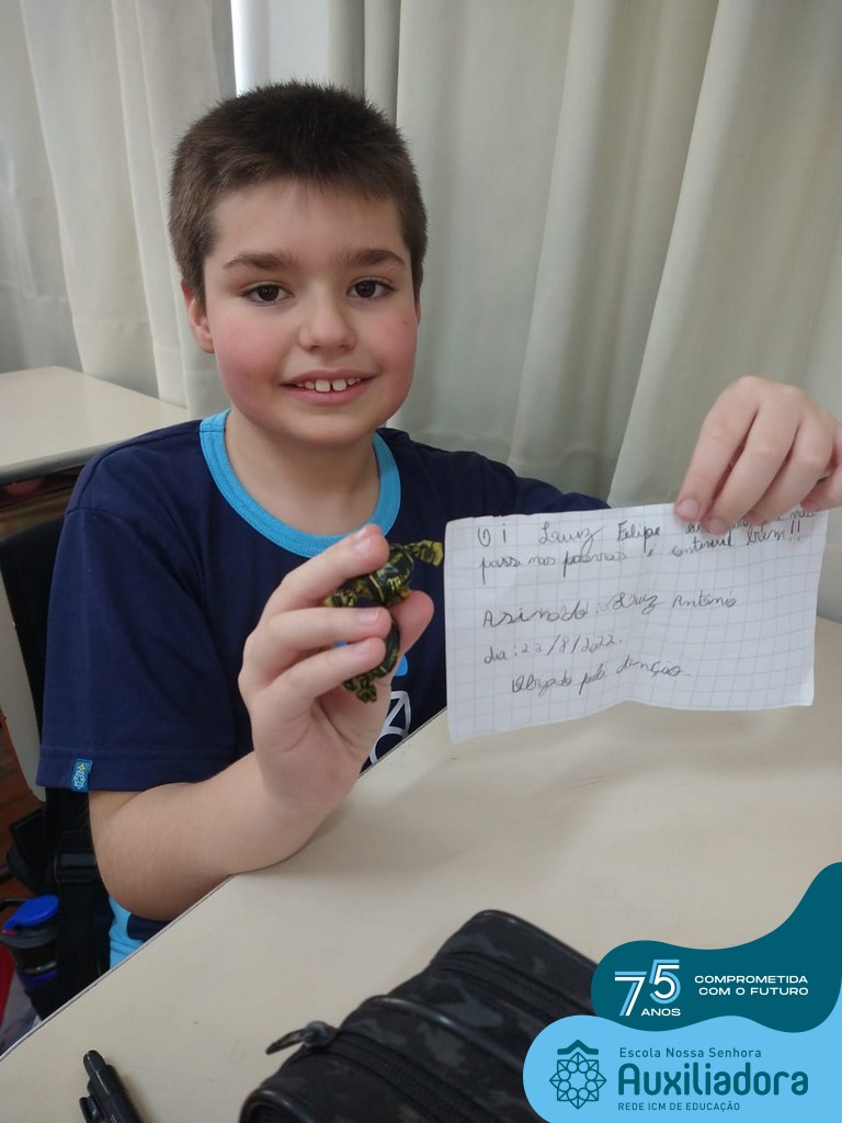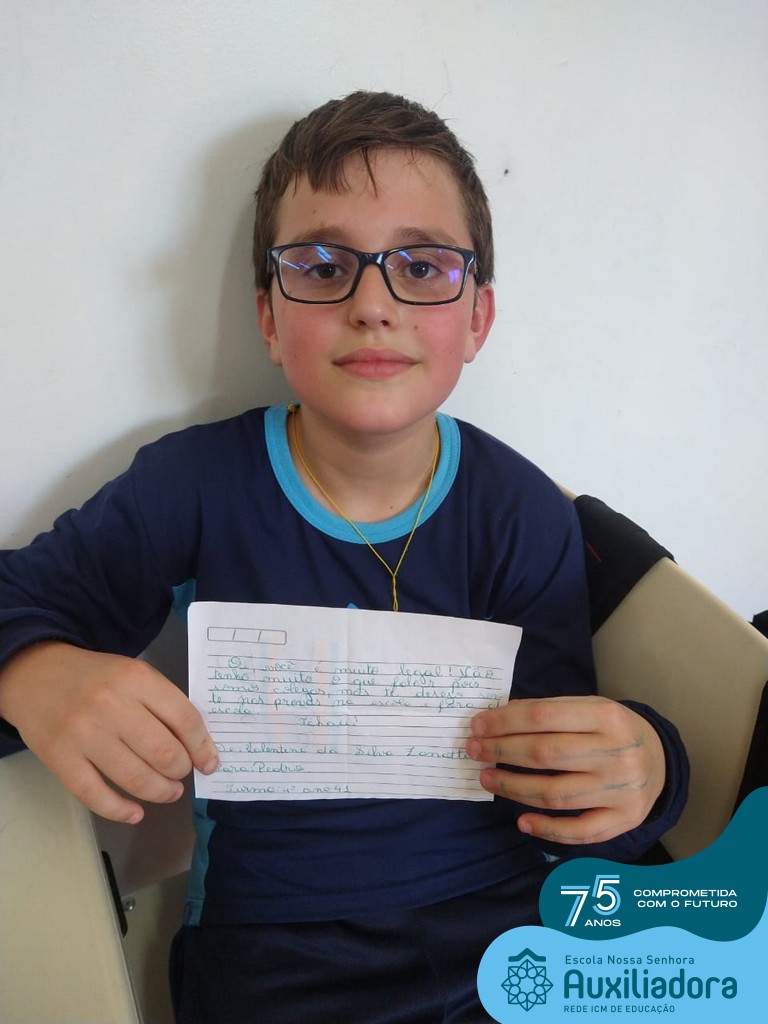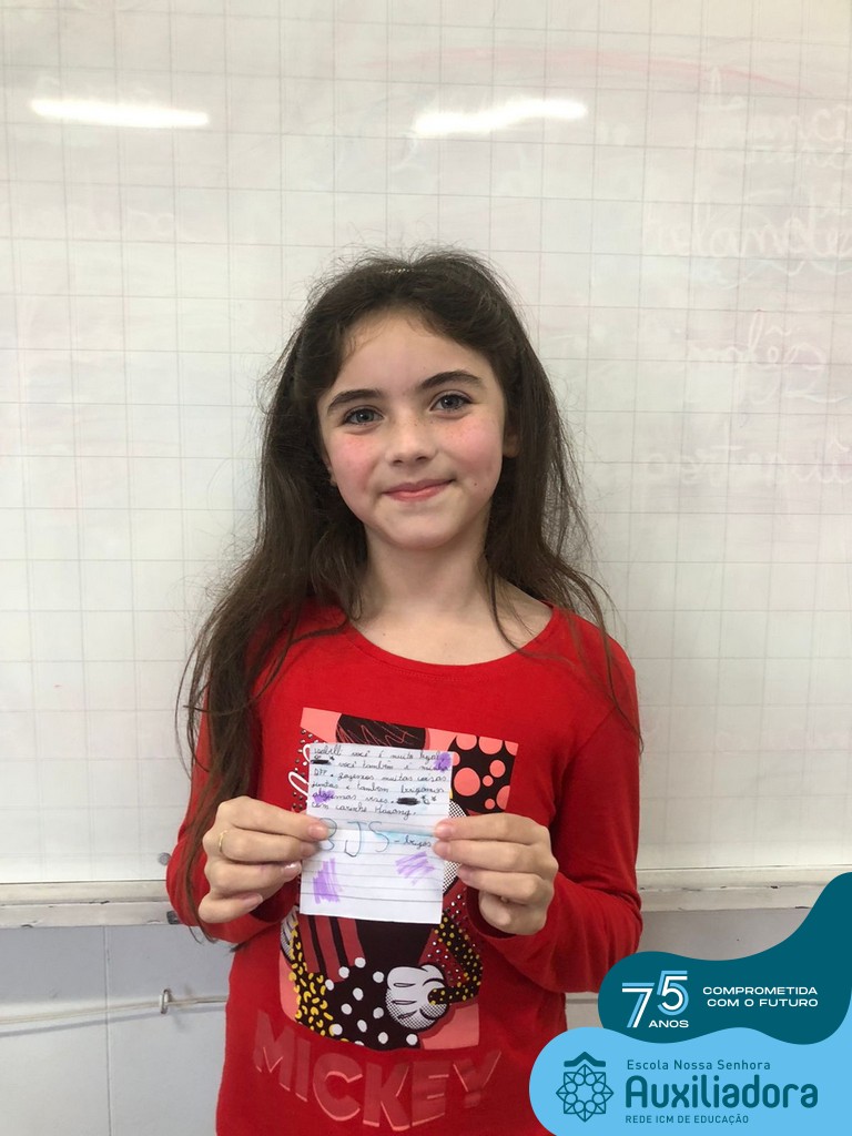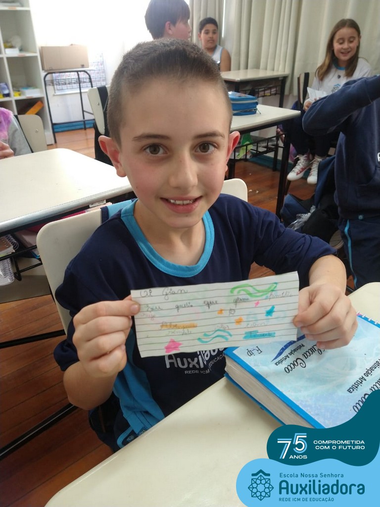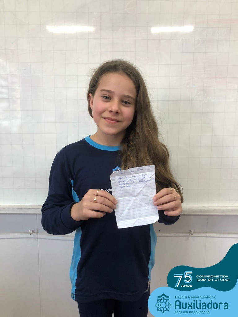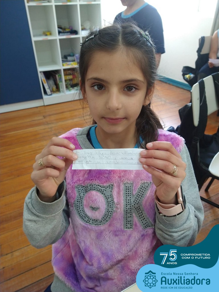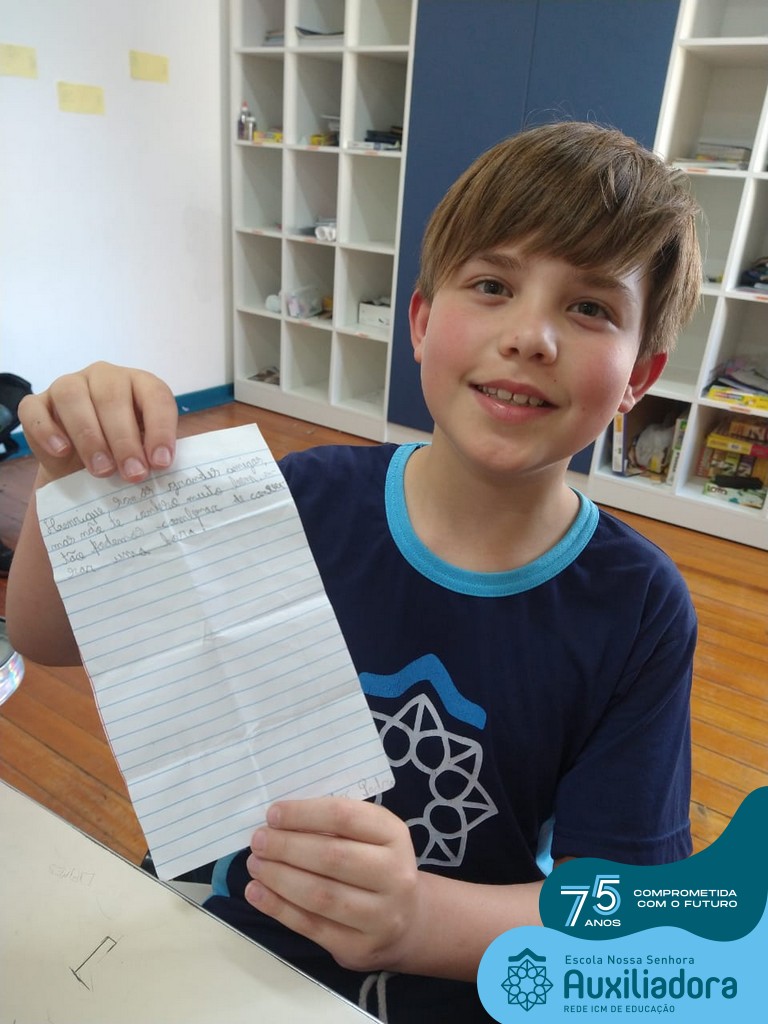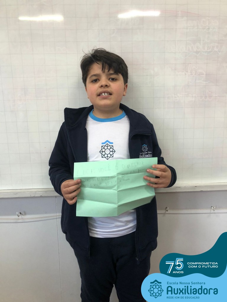 Na tarde desta terça-feira, 23, as turmas do 4º ano 41 e 42 concluíram a atividade “Escola Auxiliadora: Criando laços”. Os alunos receberam de seus amigos secretos em seus “correios”, uma cartinha com bons desejos para o ano letivo, estreitando laços de amizade e coleguismo entre as turmas.