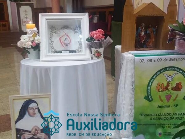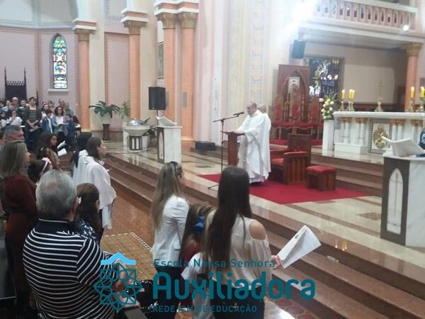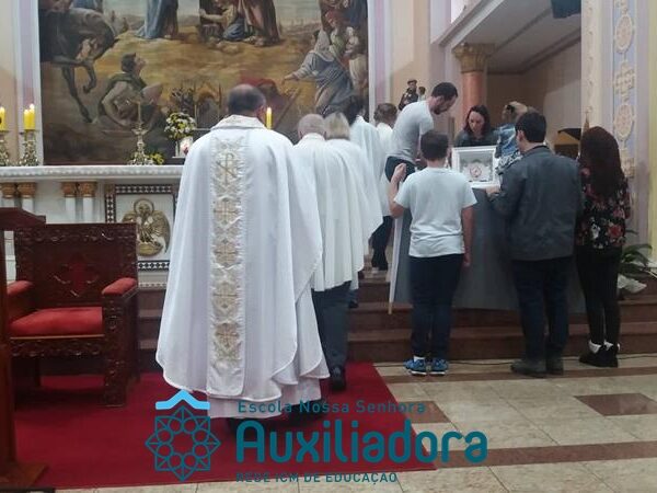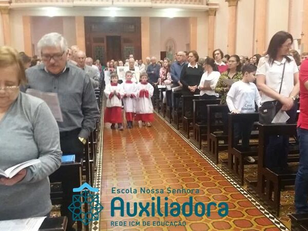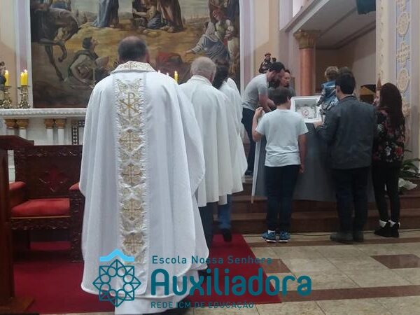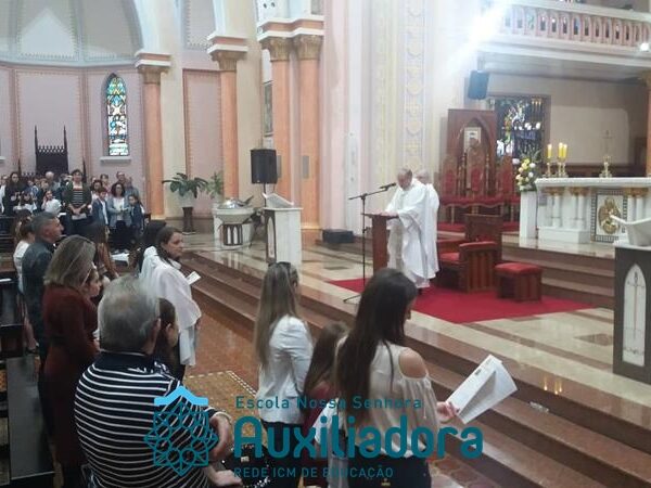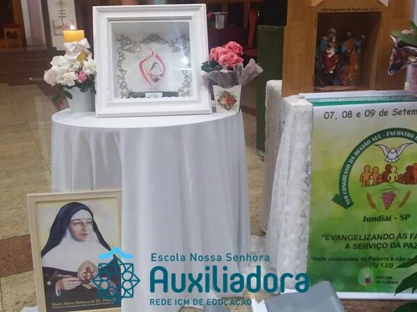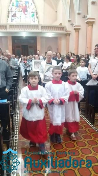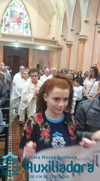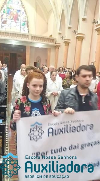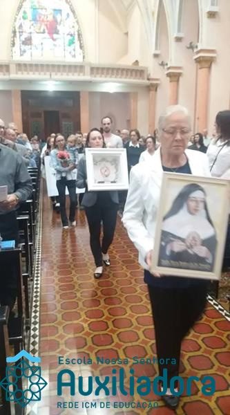 🧕 Celebração da Eucaristia – Ação de Graças pelo BICENTENÁRIO de Bárbara Maix. ❗ No dia 23 de junho de 2018, pais, alunos, educadores, funcionários e Irmãs da Escola Nossa Senhora Auxiliadora, reuniram-se na Catedral Santo Antônio, para celebrar em AÇÃO de GRAÇAS pelos 200 anos de vida da Beata 🧕 Barbara Maix – Fundadora da Congregação das Irmãs do Imaculado Coração de Maria. ❗Aconteceram momentos especiais como: Procissão de entrada com a participação do Grêmio Estudantil carregando uma faixa com a mensagem: ❣“Por tudo, daí graças ao Senhor”. Em destaque de honra a Relíquia de Barbara Maix, foi conduzida até o altar manifestando a presença viva e atuante de Bárbara, representada por uma migalha de seus ossos, bem como outros símbolos de aproximação, significando a fé, a coragem e a firmeza na vida da Fundadora. ❗Foi um momento especial com a participação de todos, rezando, cantando e louvando a Deus pela vida de Bárbara MAIX, pela sua Obra e Carisma fundacional “Fazer em tudo a Vontade Deus”. ❗A Direção e Coordenações agradecem a participação de todos. Certos de que Bárbara Maix, nos impulsiona sempre mais a ser presença eficaz na missão de educar, confiada a todos nós.