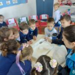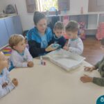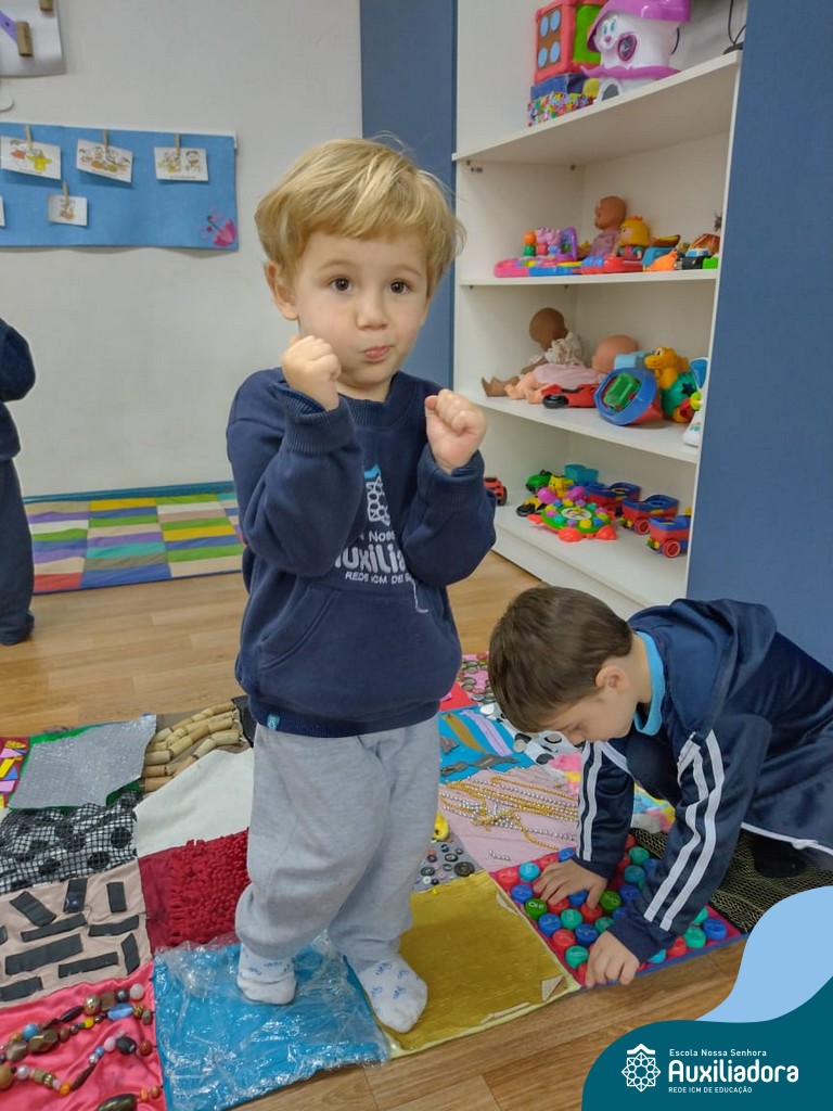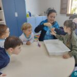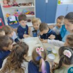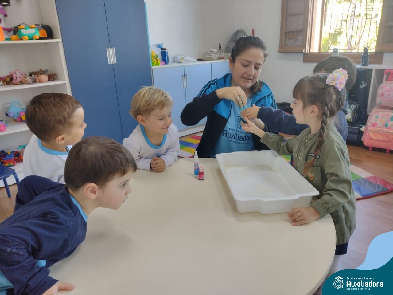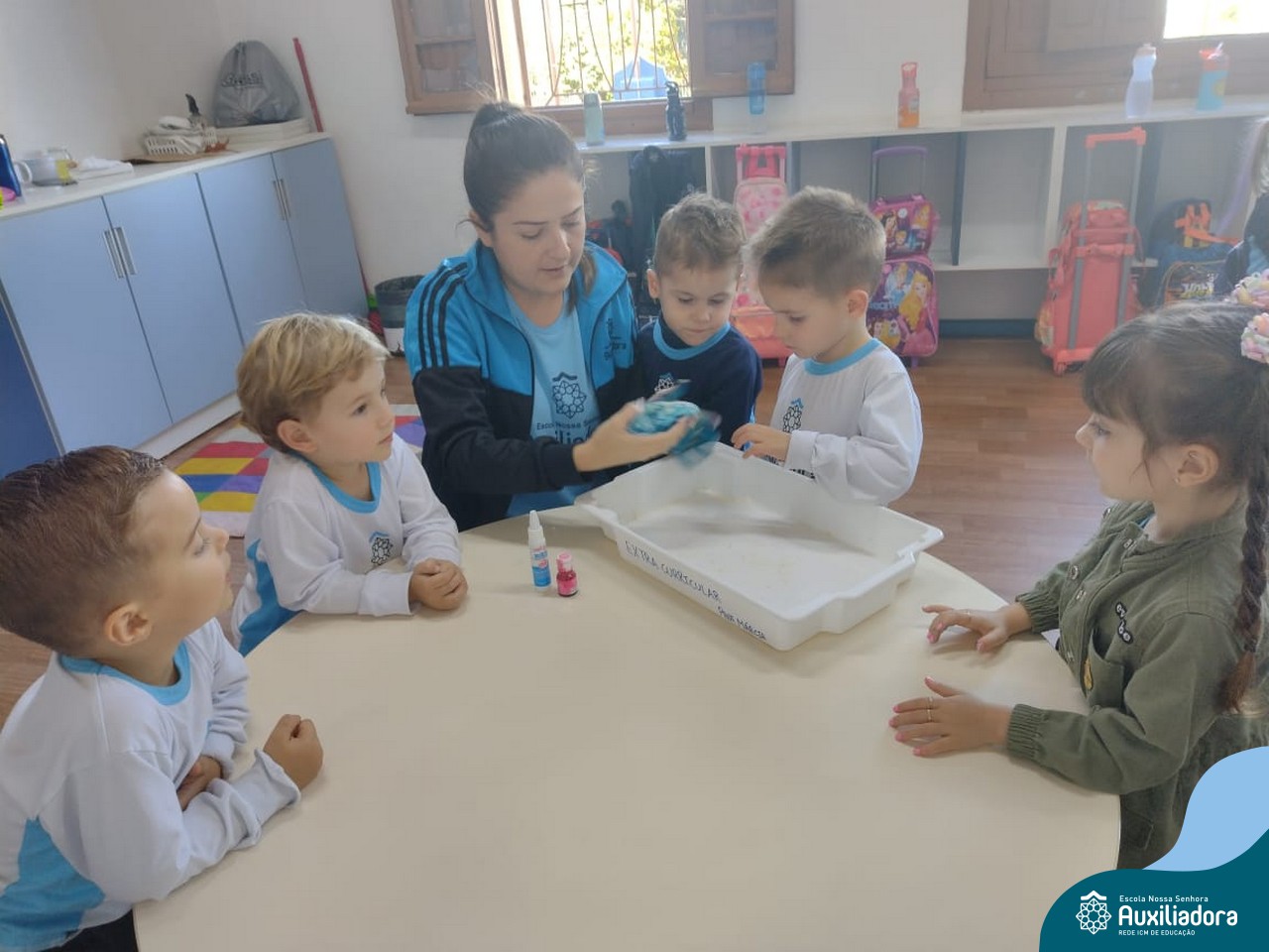 Durante as últimas semanas a galerinha do Maternal 2 A trabalhou sobre a importância dos cinco sentidos em nossa vida. Para explorar o sentido do Tato, produzimos em conjunto uma receita de massinha de modelar caseira. Além de enfatizar a textura, pudemos experimentar esta delícia!