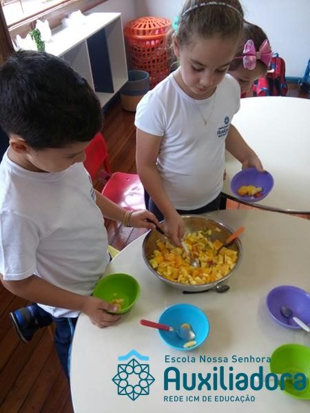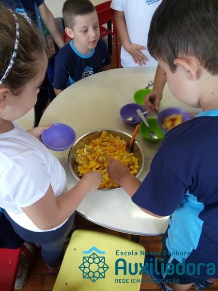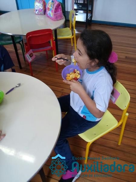 Com o objetivo de estimular a alimentação saudável e proporcionar experiências significativas, a turma do extracurricular desenvolveu diversas atividades através de contacão de histórias, poesias, jogos e construção de materiais salientando a importância do consumo de alimentos saudáveis. ” Profe Gabriela Ulbrik