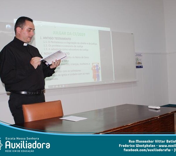 ▶️Na segunda-feira, dia 11 de fevereiro, as atividades de Formação foram retomadas com a fala do Pe. Neimar de Marco, que trabalhou o Julgar da Campanha da Fraternidade. Após os professores construíram o plano anual de ações referentes ao tema Políticas Públicas.