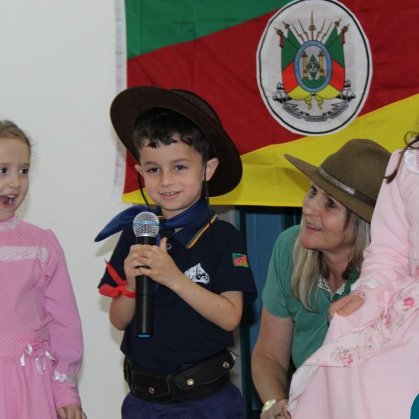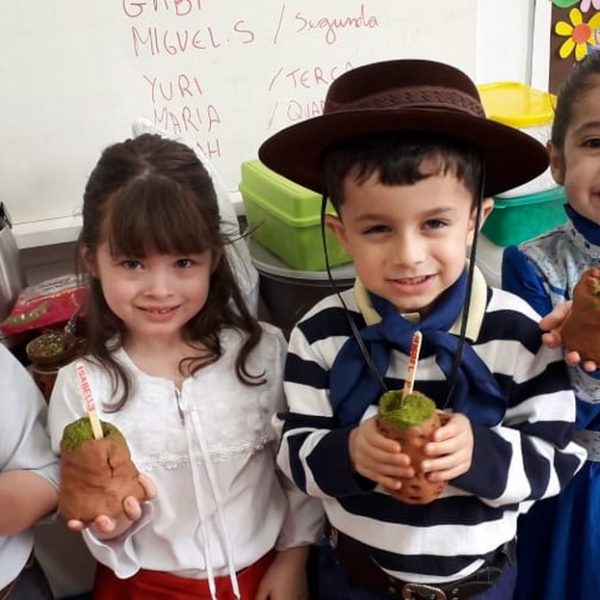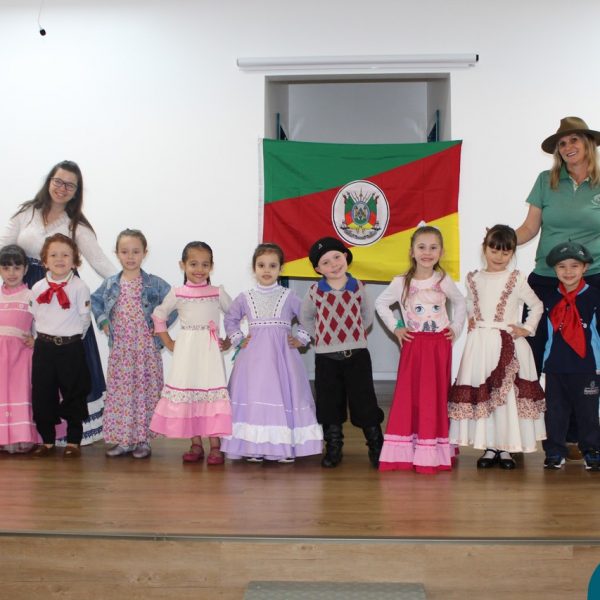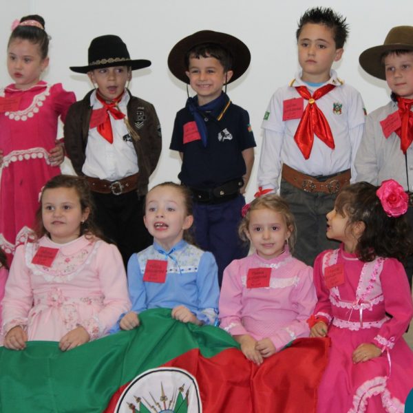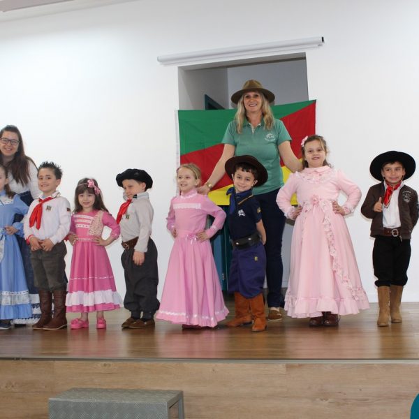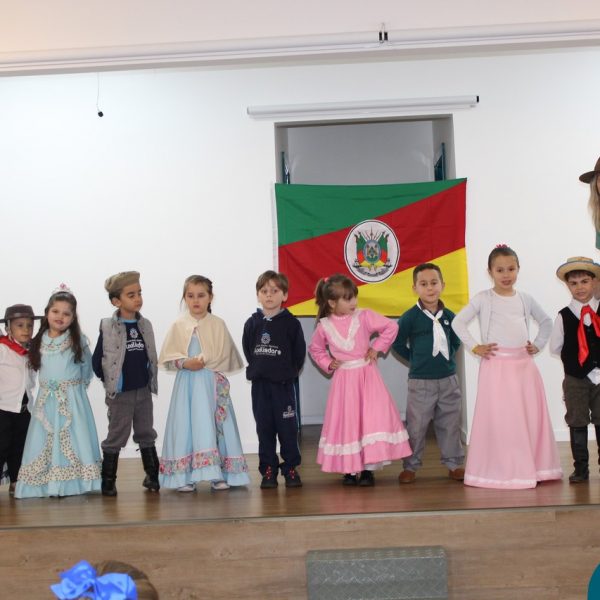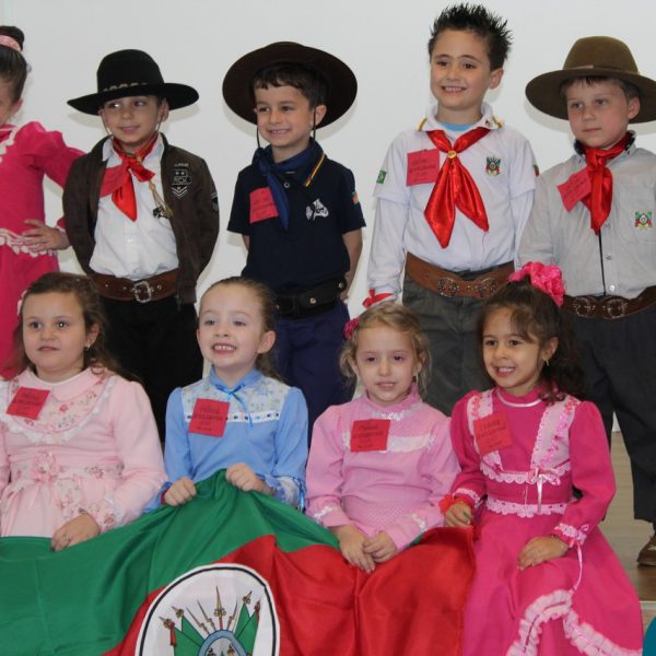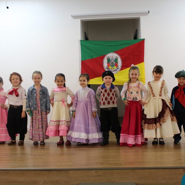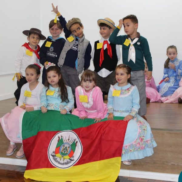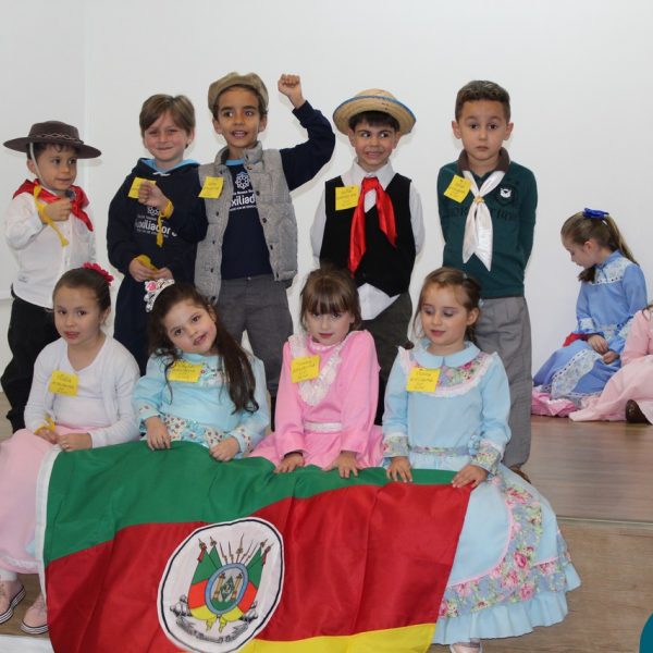 Foi realizado a gincana infantil sobre a temática Gaúcha, dividindo em grupos com as cores da bandeira, com tarefas na escola com a ajuda das educadoras e em casa com a ajuda da família. Todos os alunos receberam a premiação de Prenda e Gaúcho Auxiliadora 2019. Entre as tarefas estavam: Releitura da bandeira do Rio Grande do Sul, palestra e registros, modelagem com argila da cuia, mateada, churrasquinho e apresentação de um verso ou música gaúcha para os demais colegas da gincana. Confira!