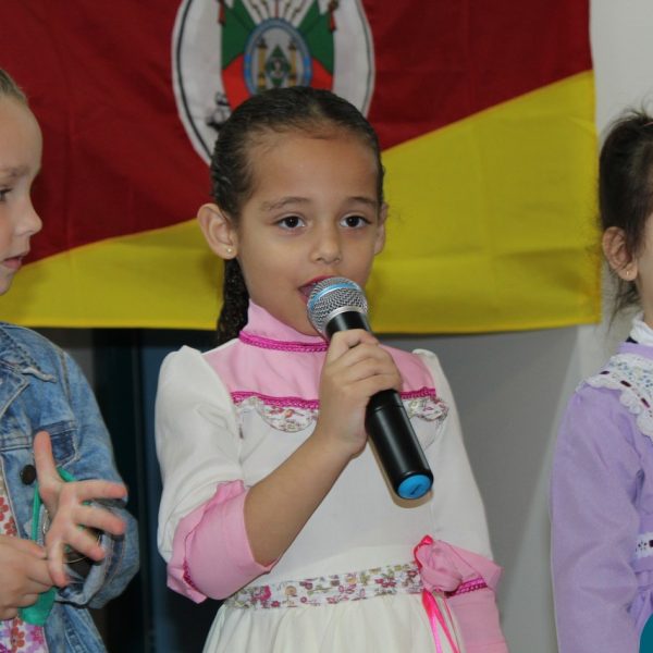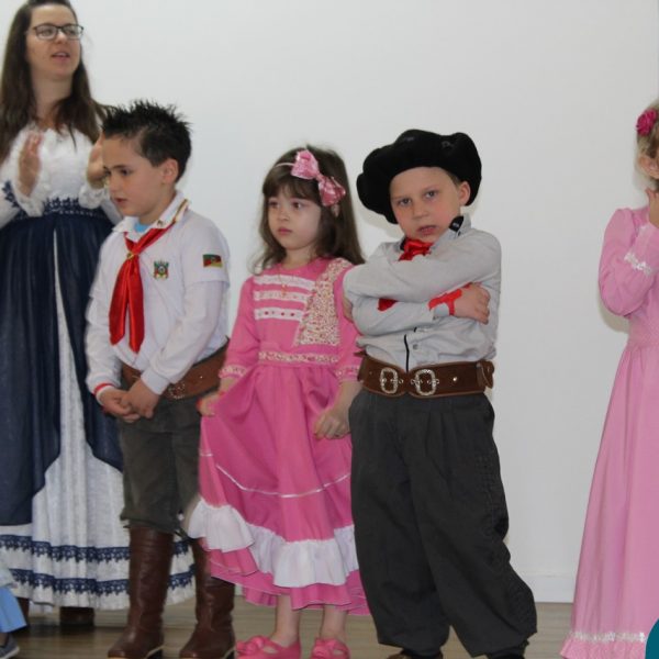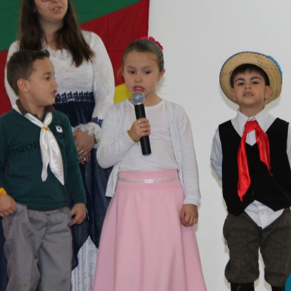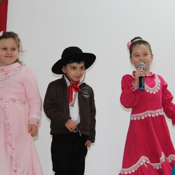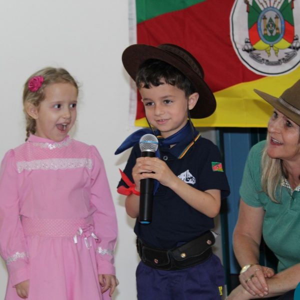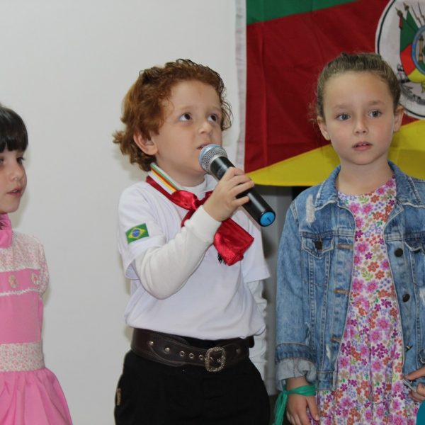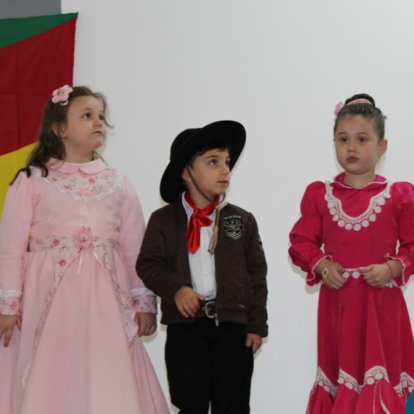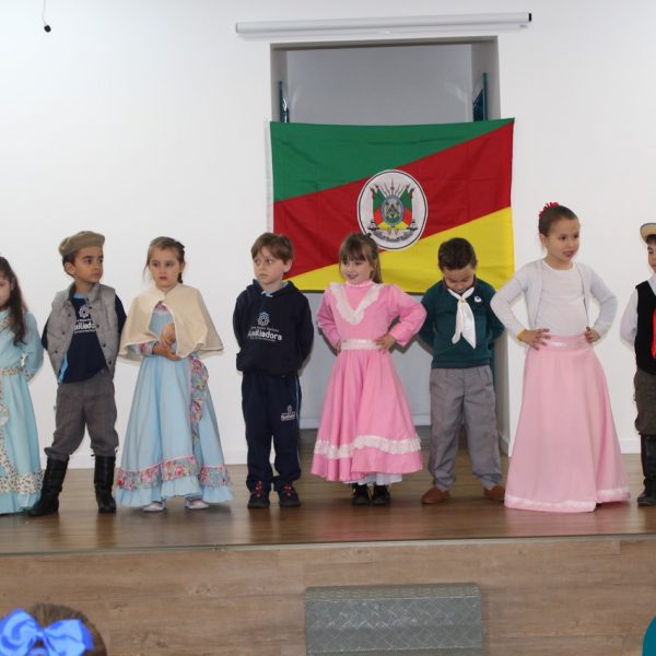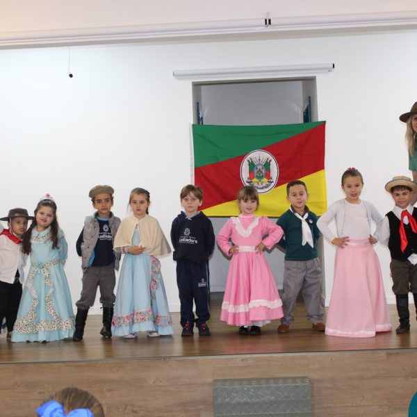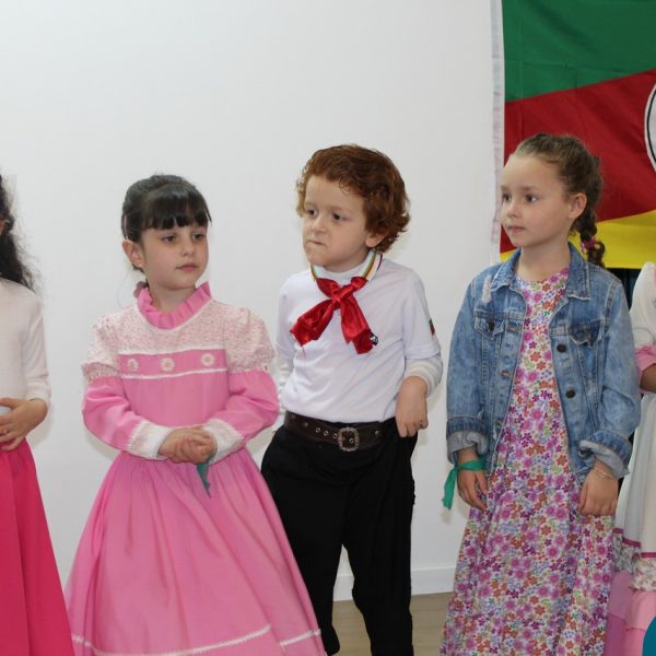Foi realizado a gincana infantil sobre a temática Gaúcha, dividindo em grupos com as cores da bandeira, com tarefas na escola com a ajuda das educadoras e em casa com a ajuda da família. Todos os alunos receberam a premiação de Prenda e Gaúcho Auxiliadora 2019. Entre as tarefas estavam: Releitura da bandeira do Rio Grande do Sul, palestra e registros, modelagem com argila da cuia, mateada, churrasquinho e apresentação de um verso ou música gaúcha para os demais colegas da gincana. Confira!