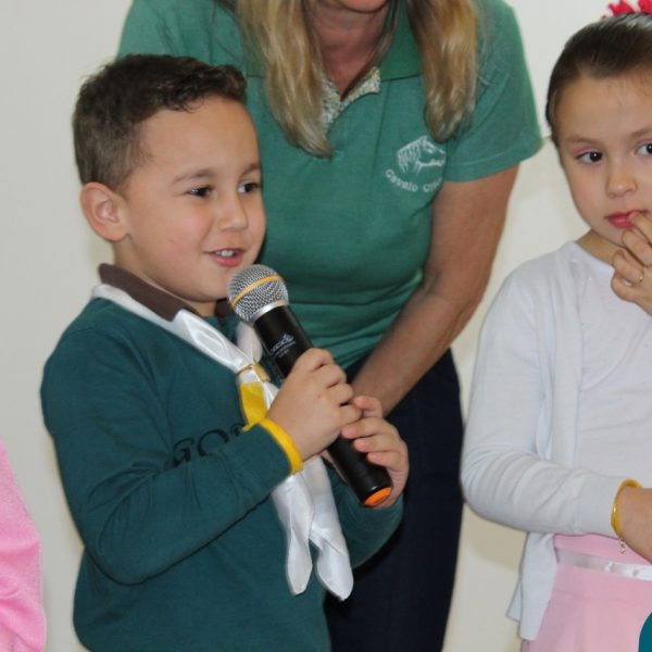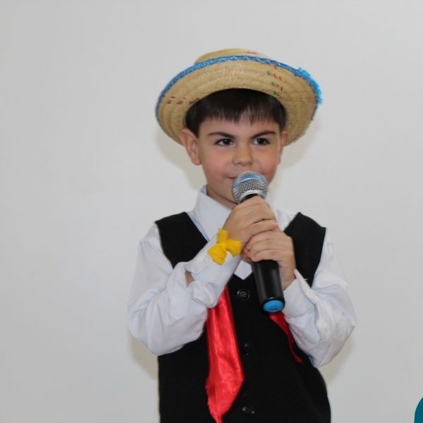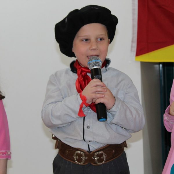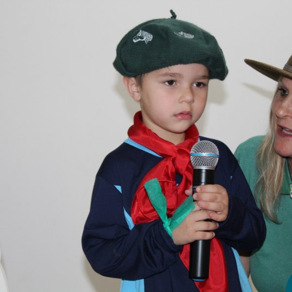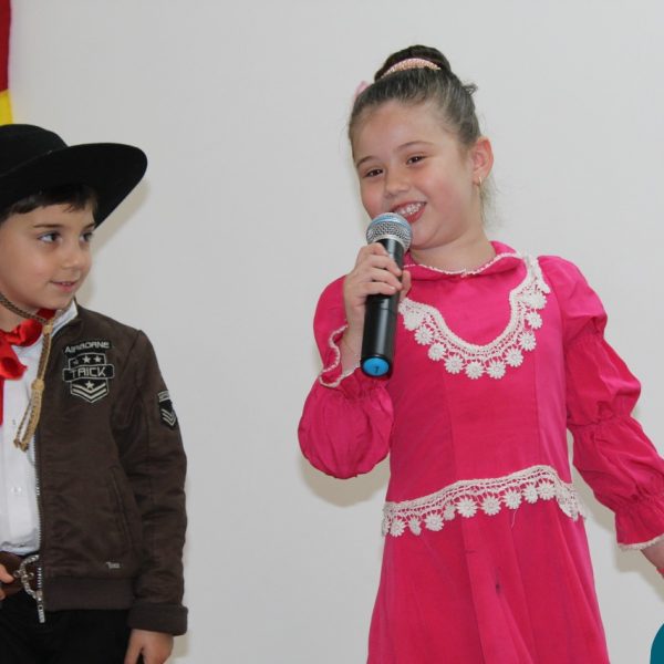 4º Tarefa: Apresentação de um verso ou trecho de música gaúcha, esta que foi preparada pela família e assim feita a apresentação individual para as turmas. Para muitos um grande desafio, para outros uma oportunidade de revelar os talentos.
