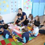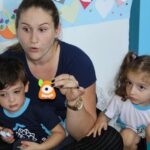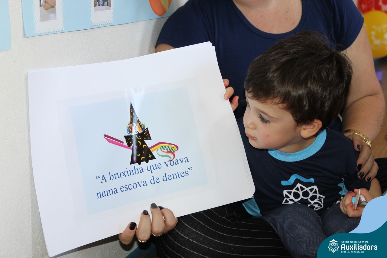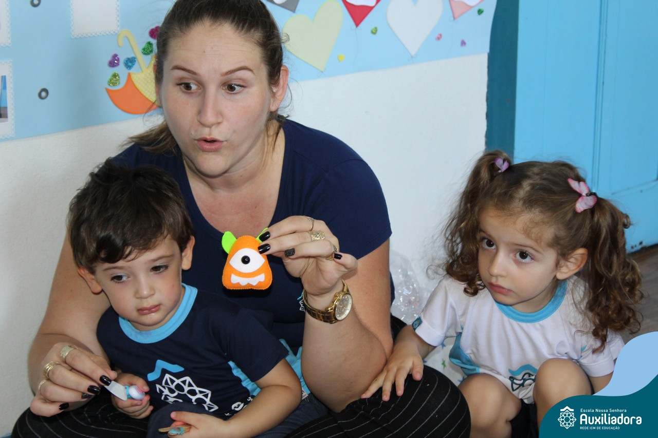 As crianças ouviram a História da bruxinha que voava numa escova de dentes e também se divertiram com o bocão, podendo manusear os amigos e os inimigos dos dentinhos!
