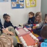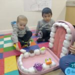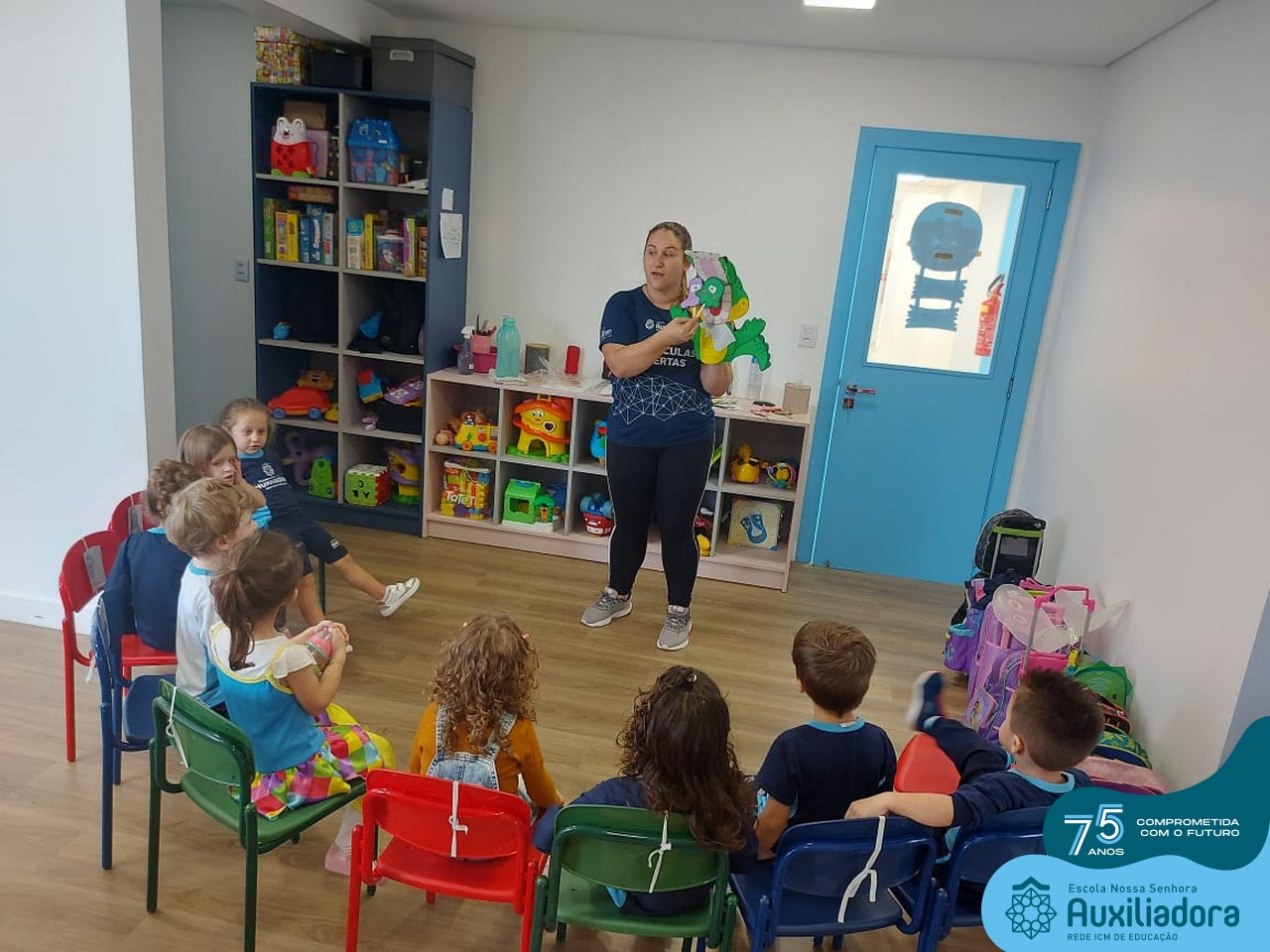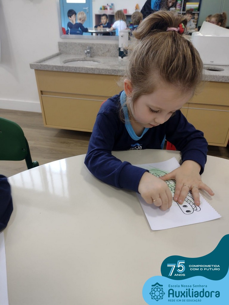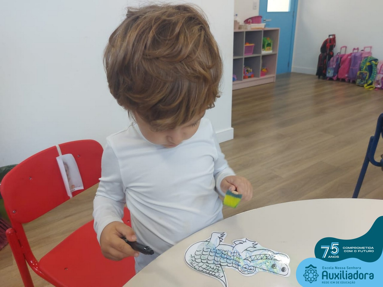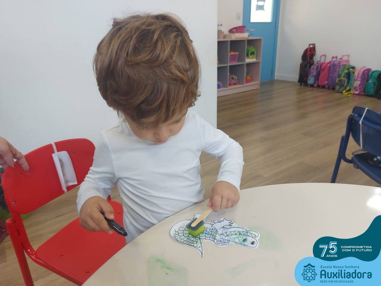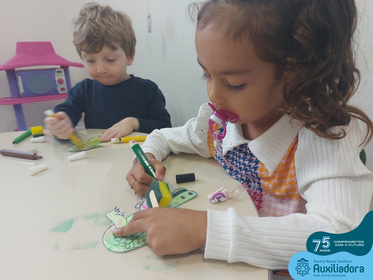 Na semana que passou as turmas do maternal 2 trabalharam sobre a importância de mantermos uma boa higiene do nosso corpo, dando ênfase à higiene bucal a partir da história “Joca, o jacaré com dor de dente”.