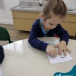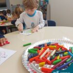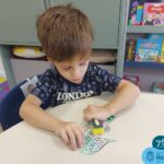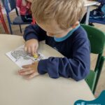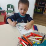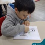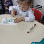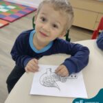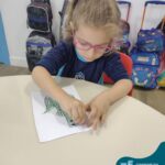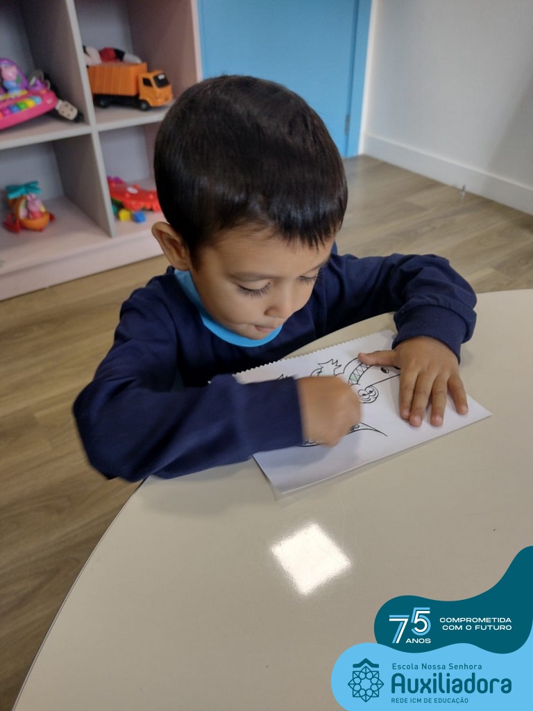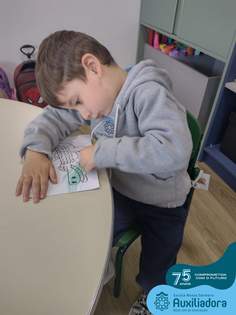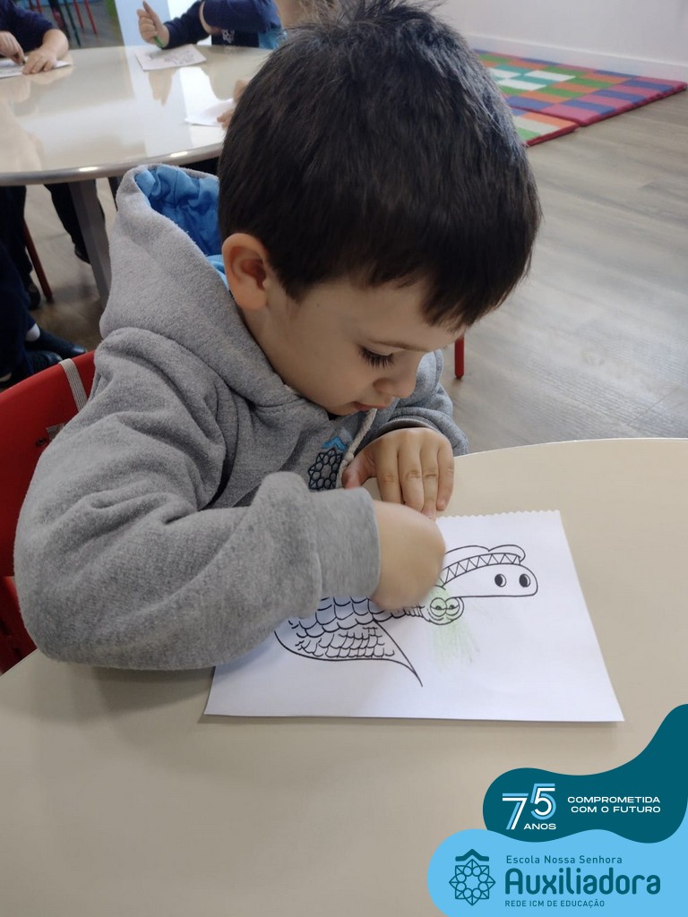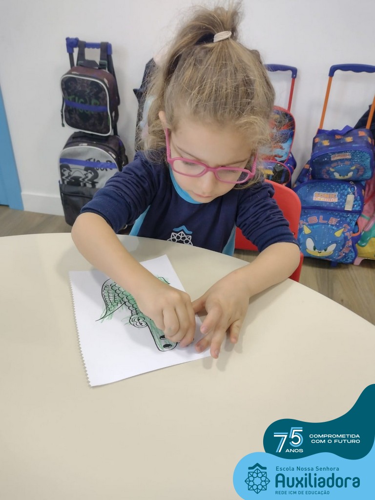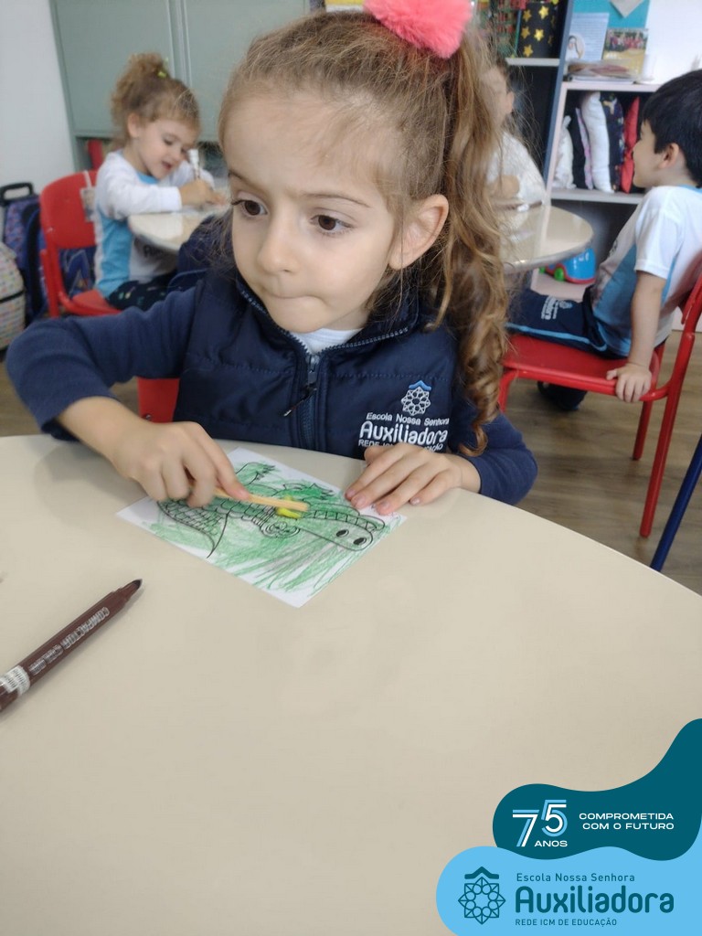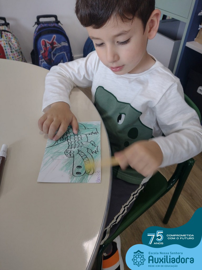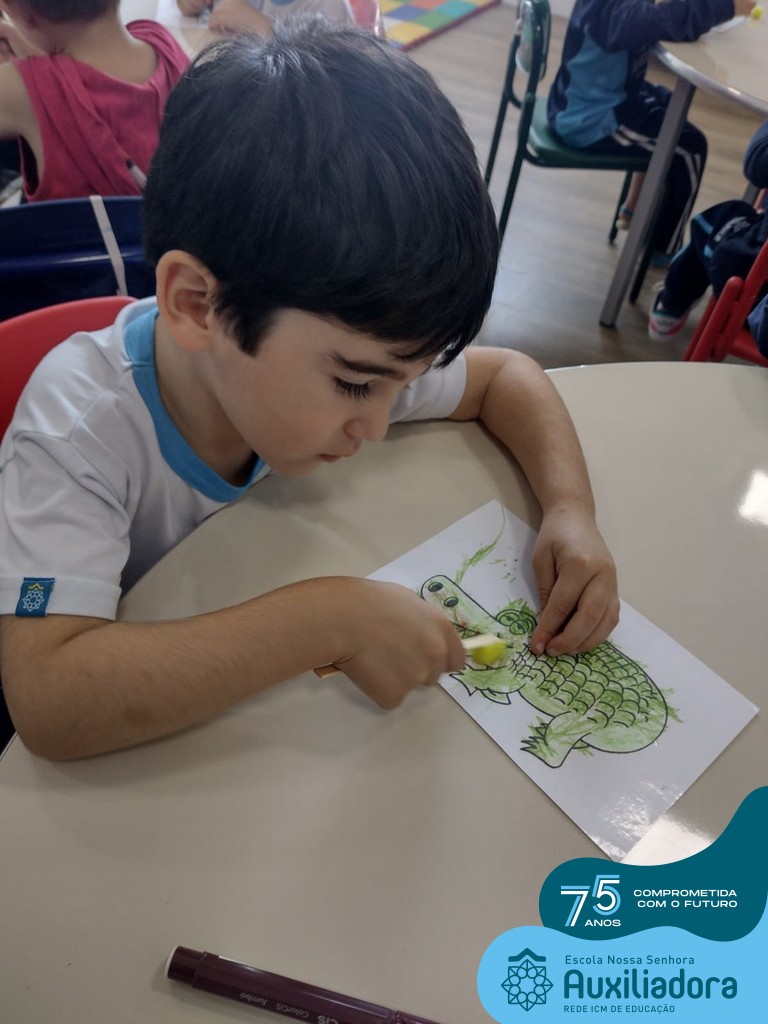 Após ouvir a história, cada aluno pintou o seu jacaré e depois realizou a higiene bucal nele.