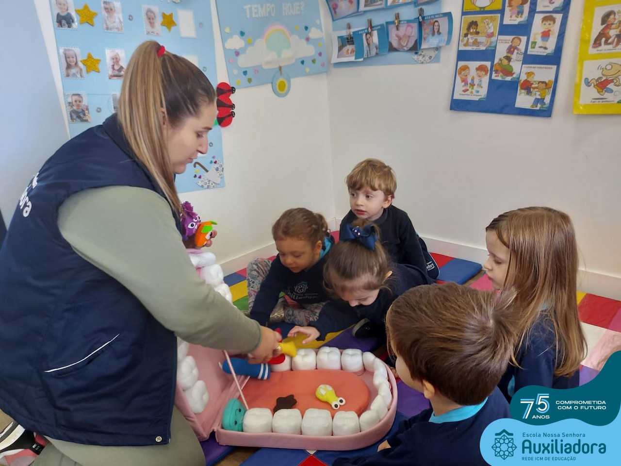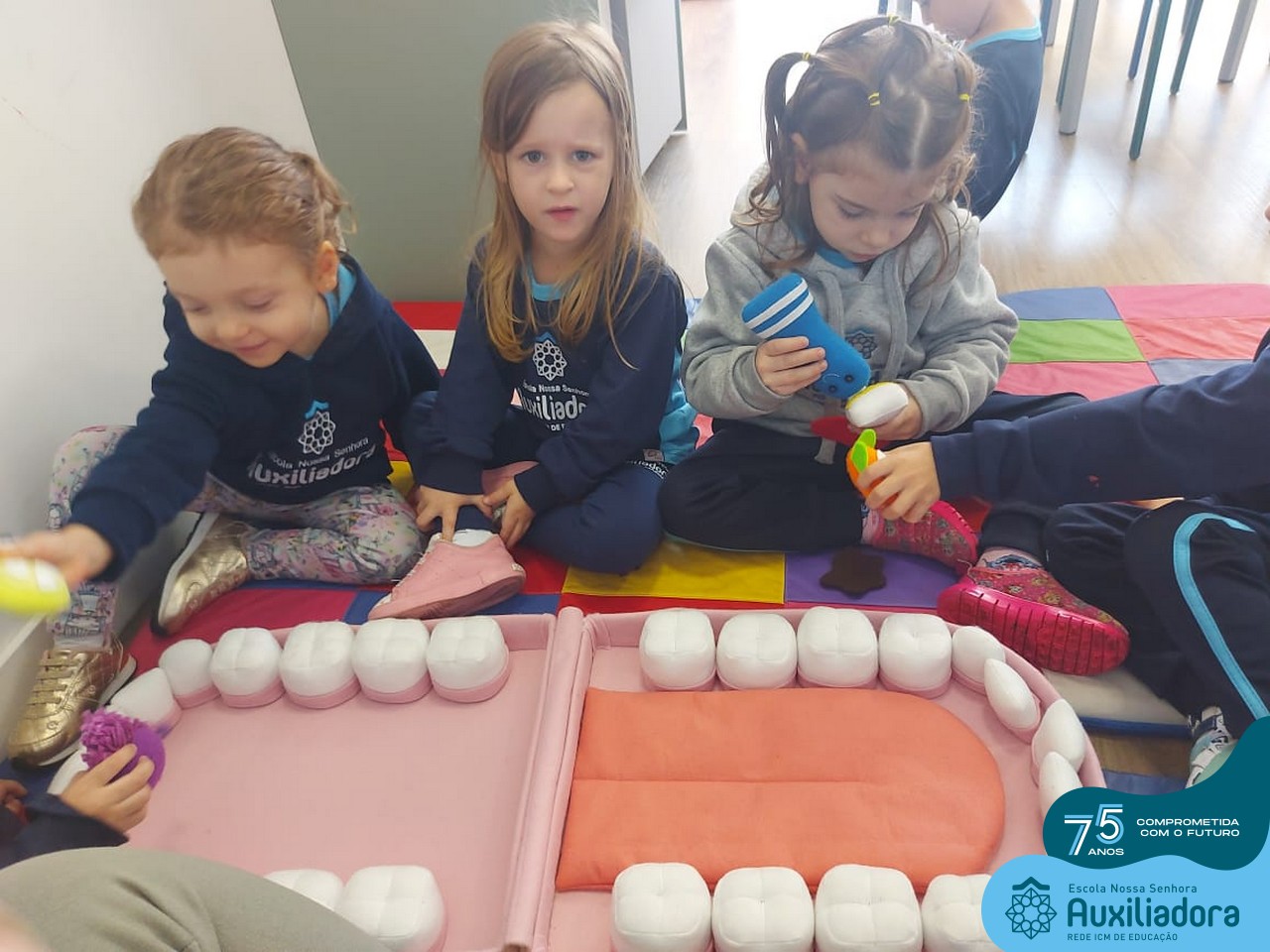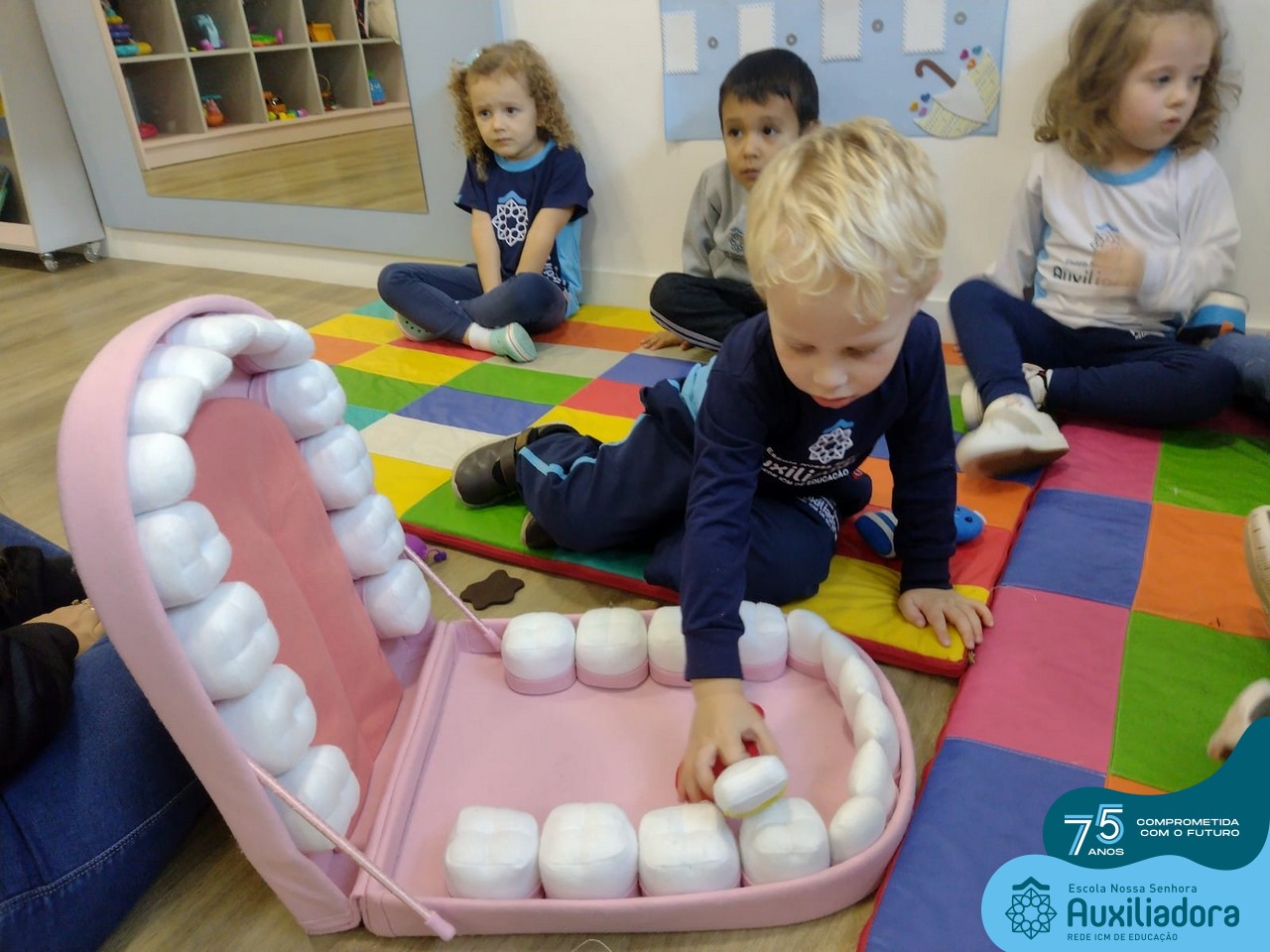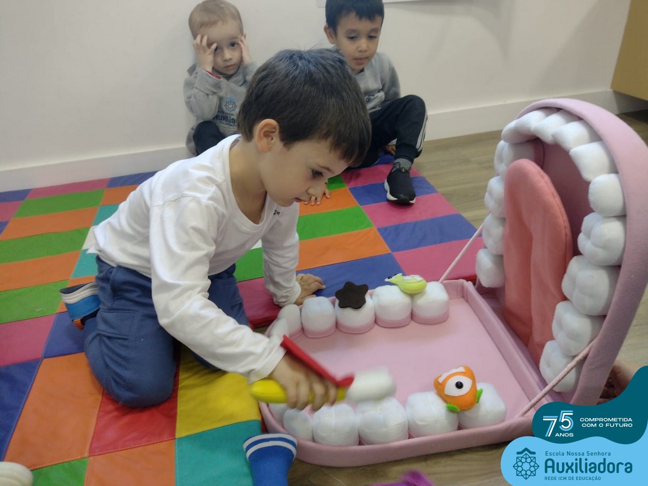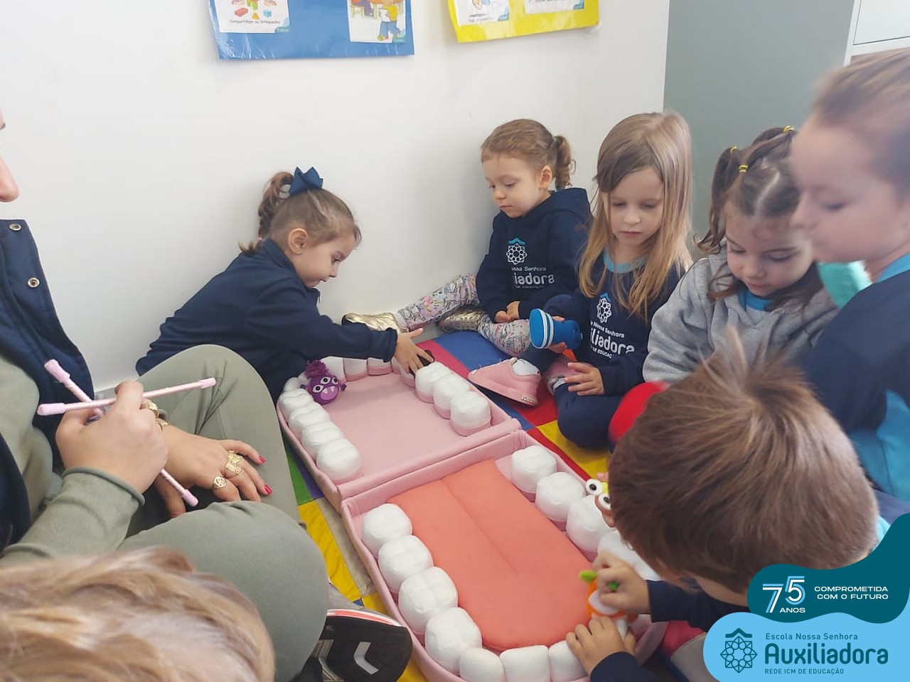 Além de desenvolver a imaginação, trabalhar a coordenação motora e também a importância da higiene bucal no nosso dia a dia, as crianças aprenderam de forma lúdica vivenciando momentos de aprendizagem e explorando