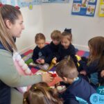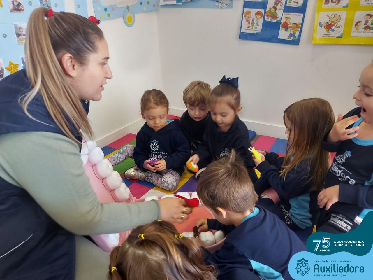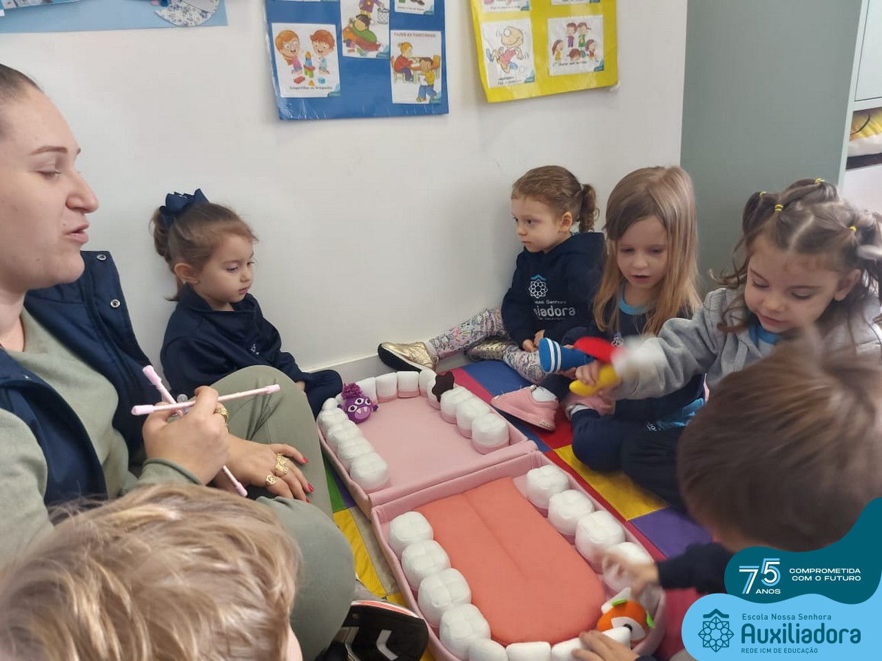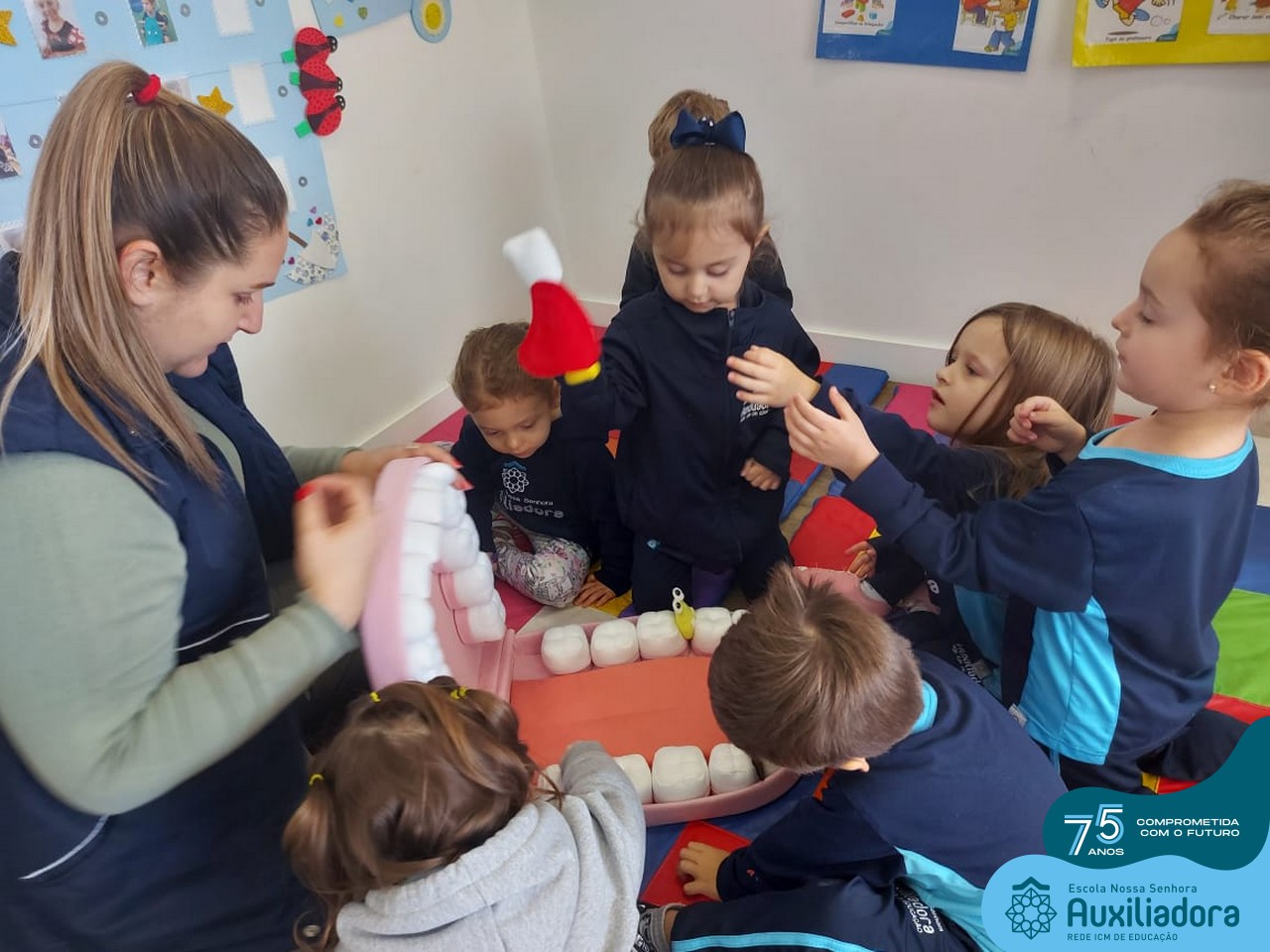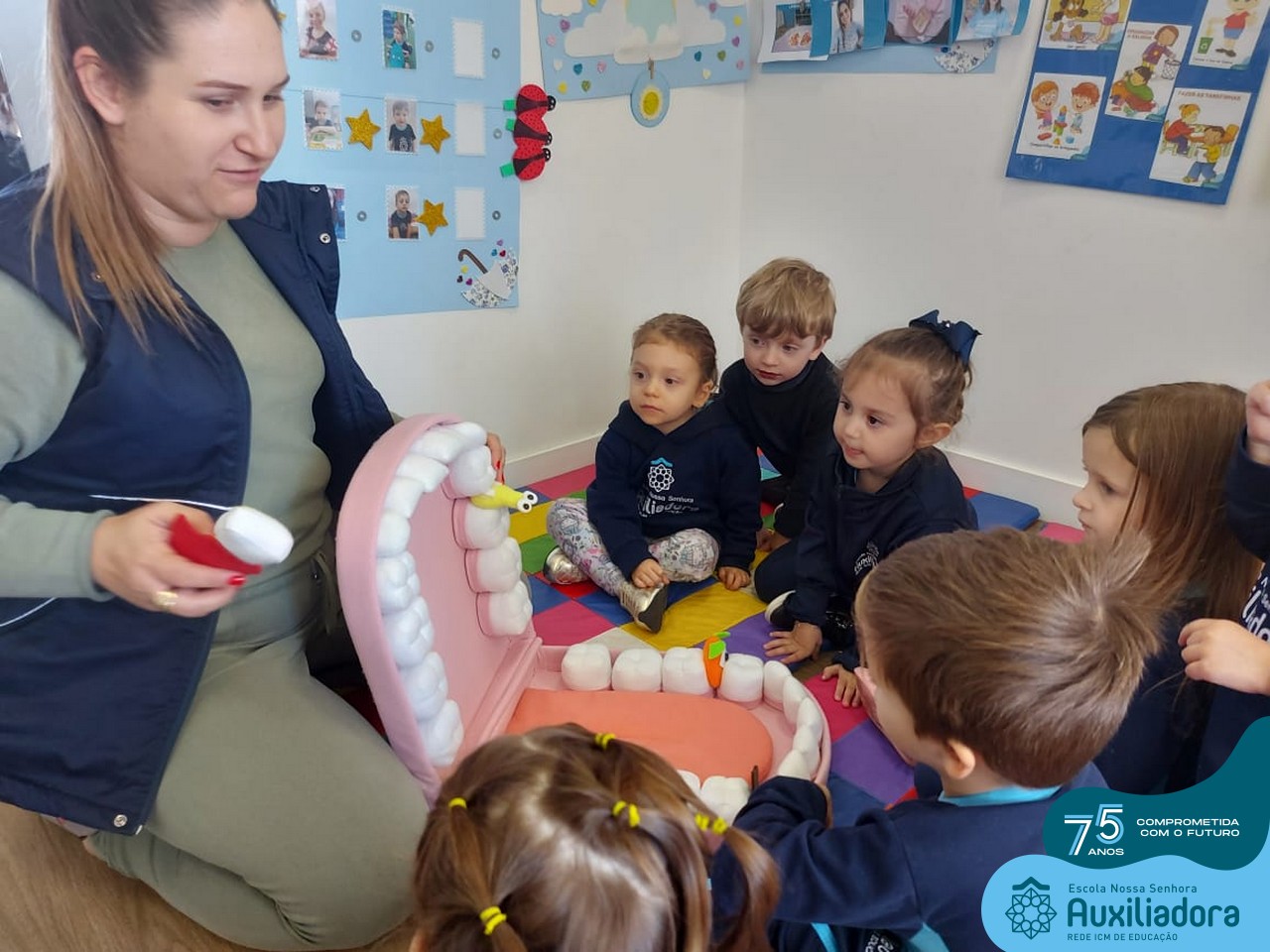 Além de desenvolver a imaginação, trabalhar a coordenação motora e também a importância da higiene bucal no nosso dia a dia, as crianças aprenderam de forma lúdica vivenciando momentos de aprendizagem e explorando