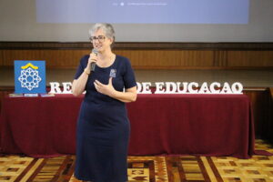 “O objetivo do nosso seminário é refletir as demandas os desafios que a inclusão nos traz para trabalharmos de forma colaborativa entre professores, equipes administrativas e também somáramos na direção de fazer da escola um espaço acolhedor e inclusivo em todas as unidades, e com todos os que se dirigem a nós. É acolher e ao mesmo em que se acolhe, educar.”, disse.