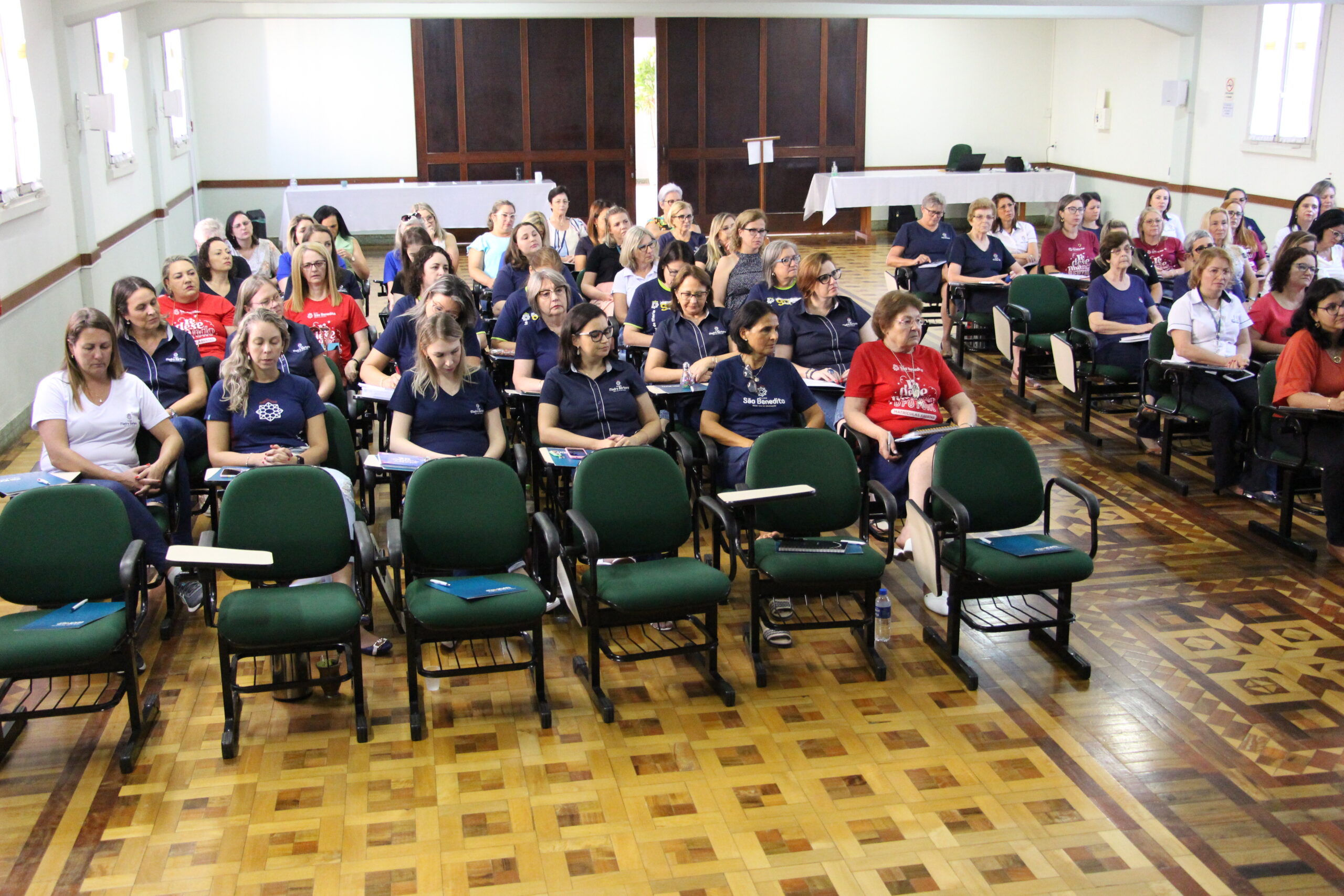 Mais de 70 participantes, entre Irmãs e colaboradores que atuam como Diretoras, Vice-diretoras, Serviço de Orientação Educacional (SOE), Serviço de Psicologia (SPE), Educador Especial (AEE) e o Comitê de Educação, participam do encontro.