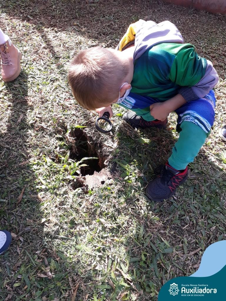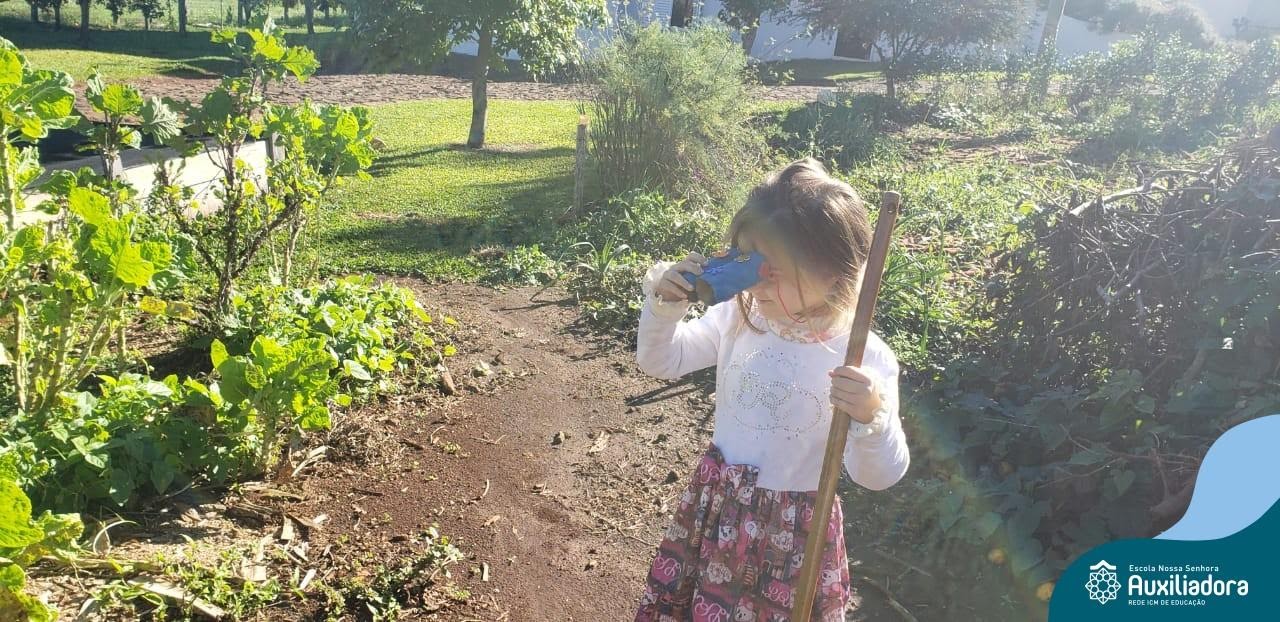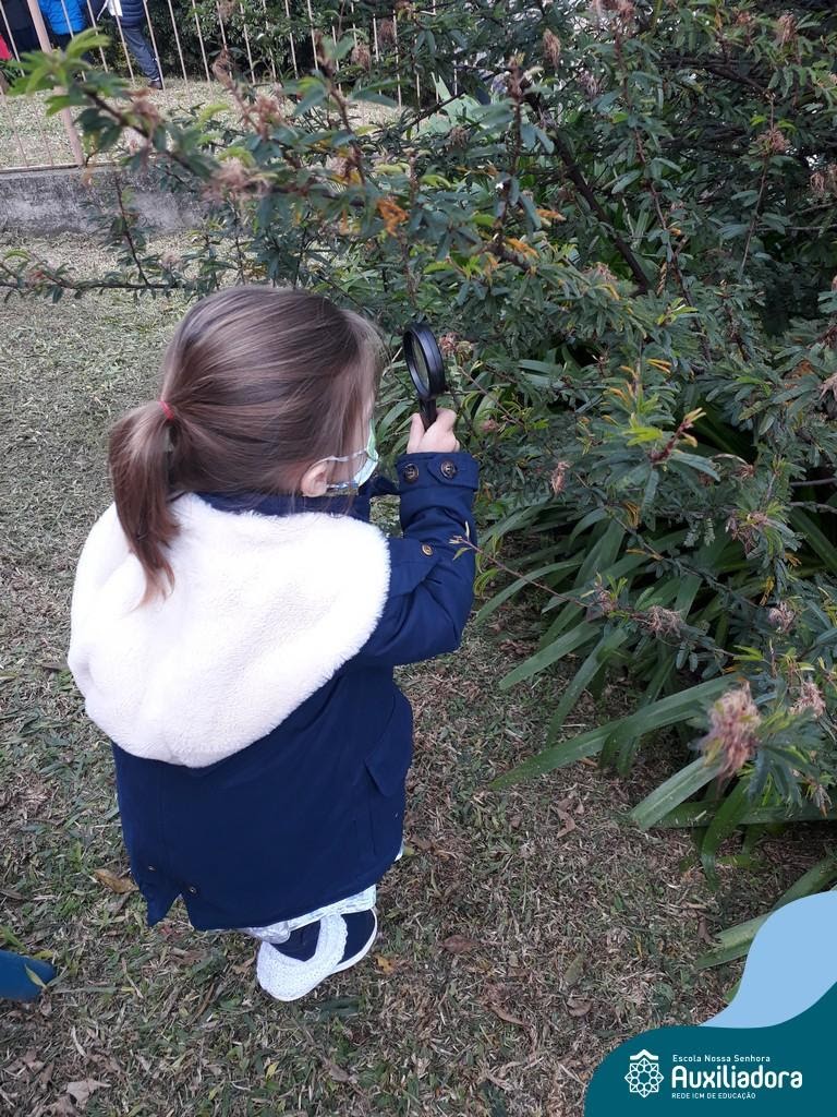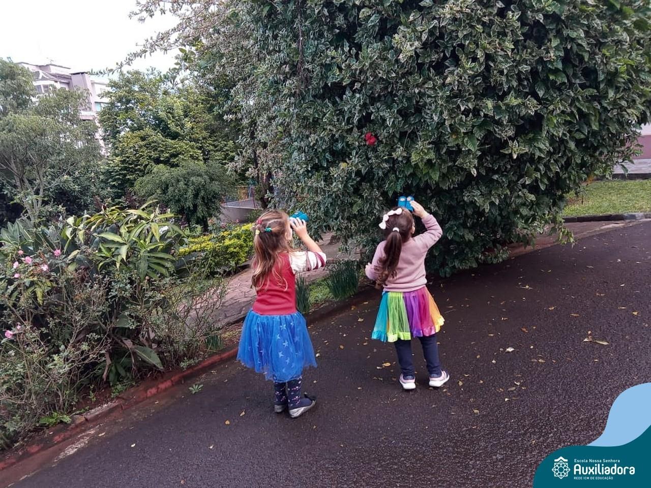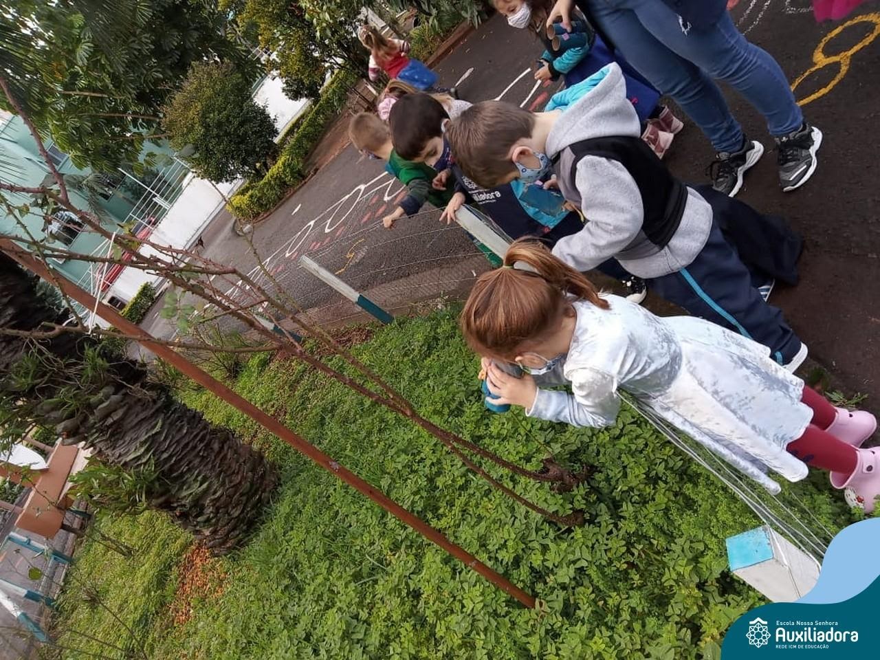 *Passeio de observação com o intuito de encontrar bichinhos de jardim, após a construção do binóculos;