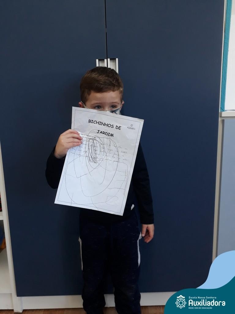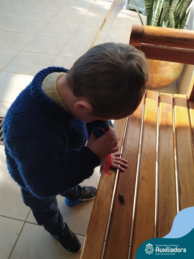 *Registro fotográfico da pesquisa investigativa realizada em casa com o intuito de encontrar bichinhos de jardim e após desenhar os bichinhos encontrados;