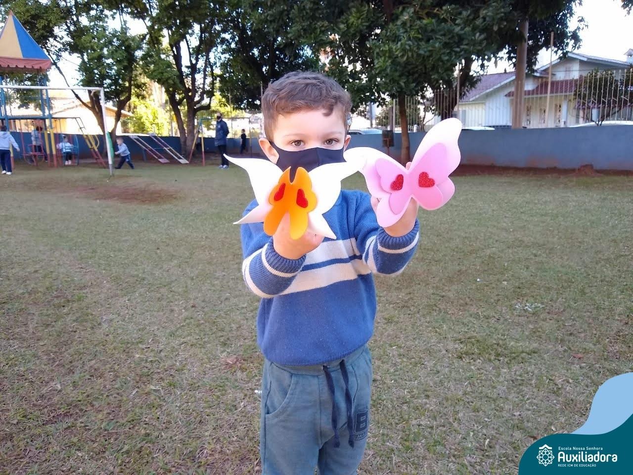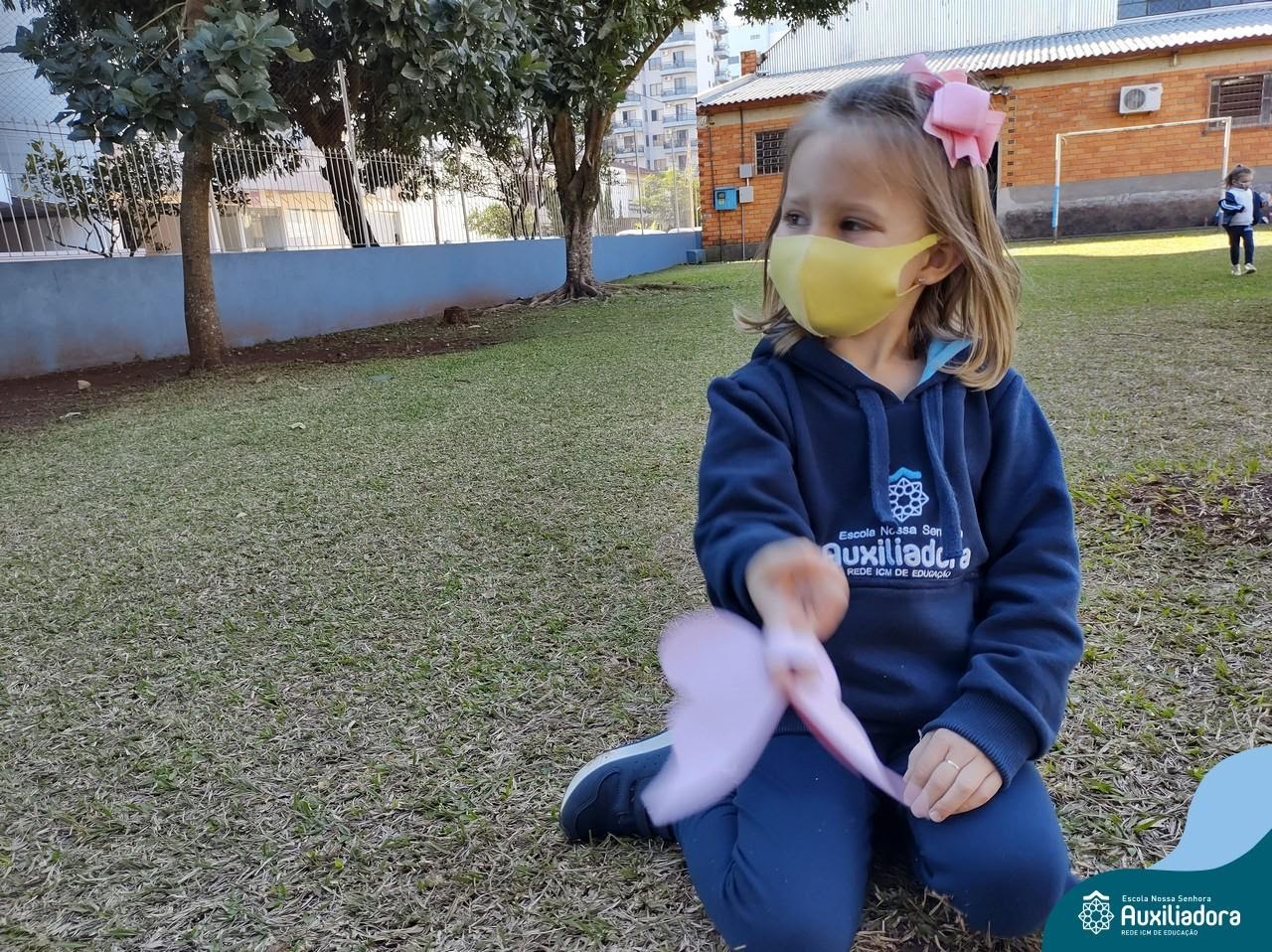 E empolgados com as descobertas feitas sobre as mesmas, os alunos do Maternal 2 foram ao pátio tentar reproduzir o movimento das asas das mesmas, “Como conseguem voar tão alto?” Foram momentos lindos de pura alegria e diversão!