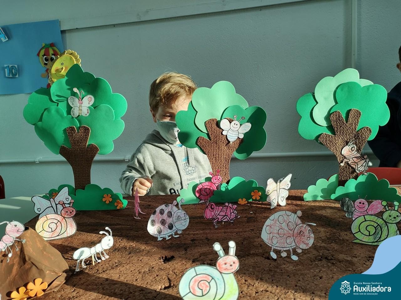 Todos participaram da construção, pintando, colando e dispondo os bichinhos pelo jardim. Foram lindos momentos de troca, escuta e construção!