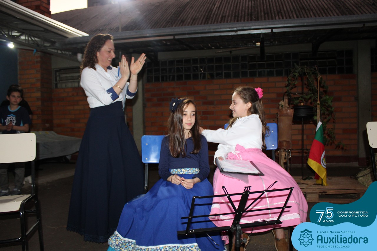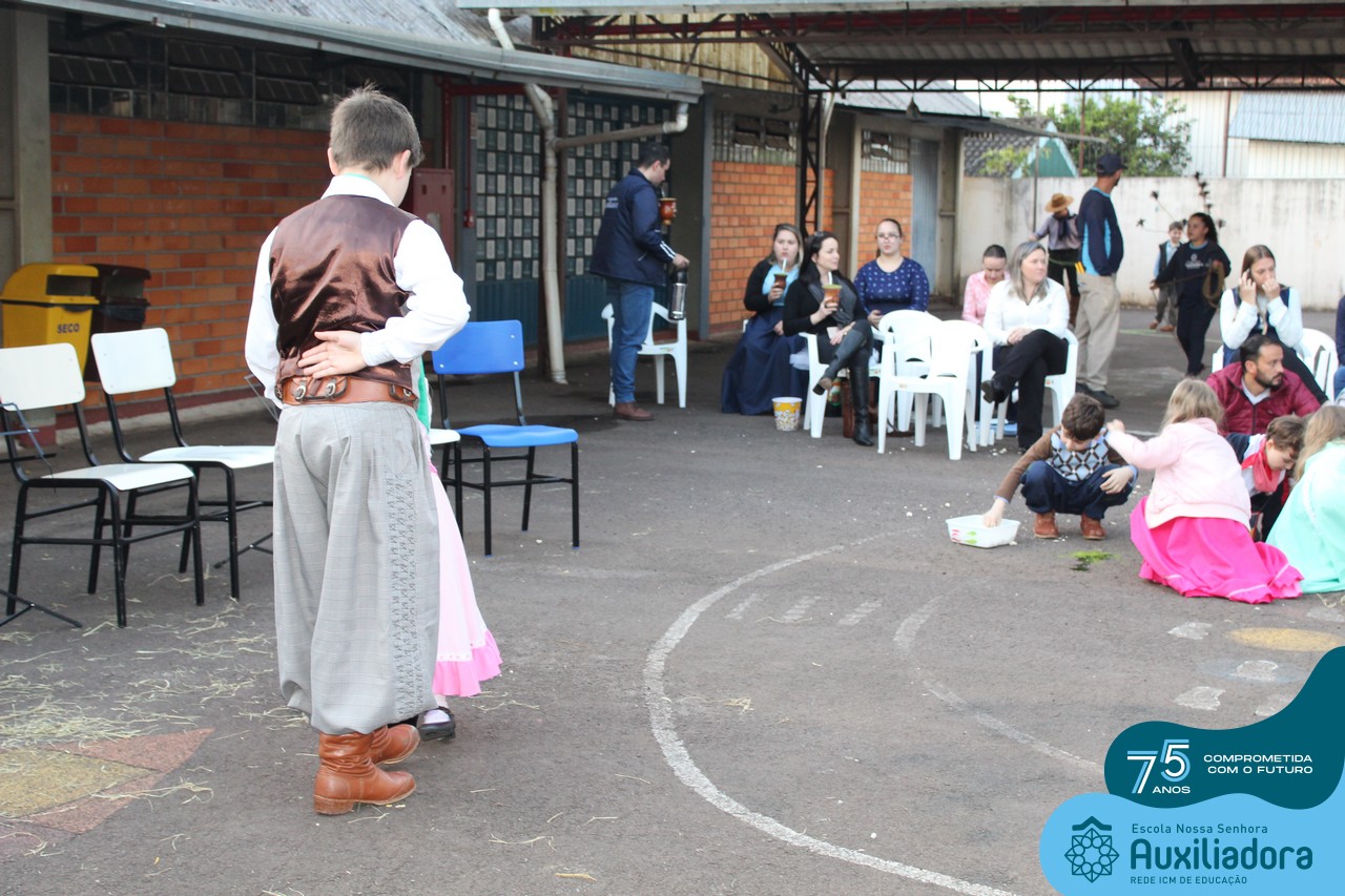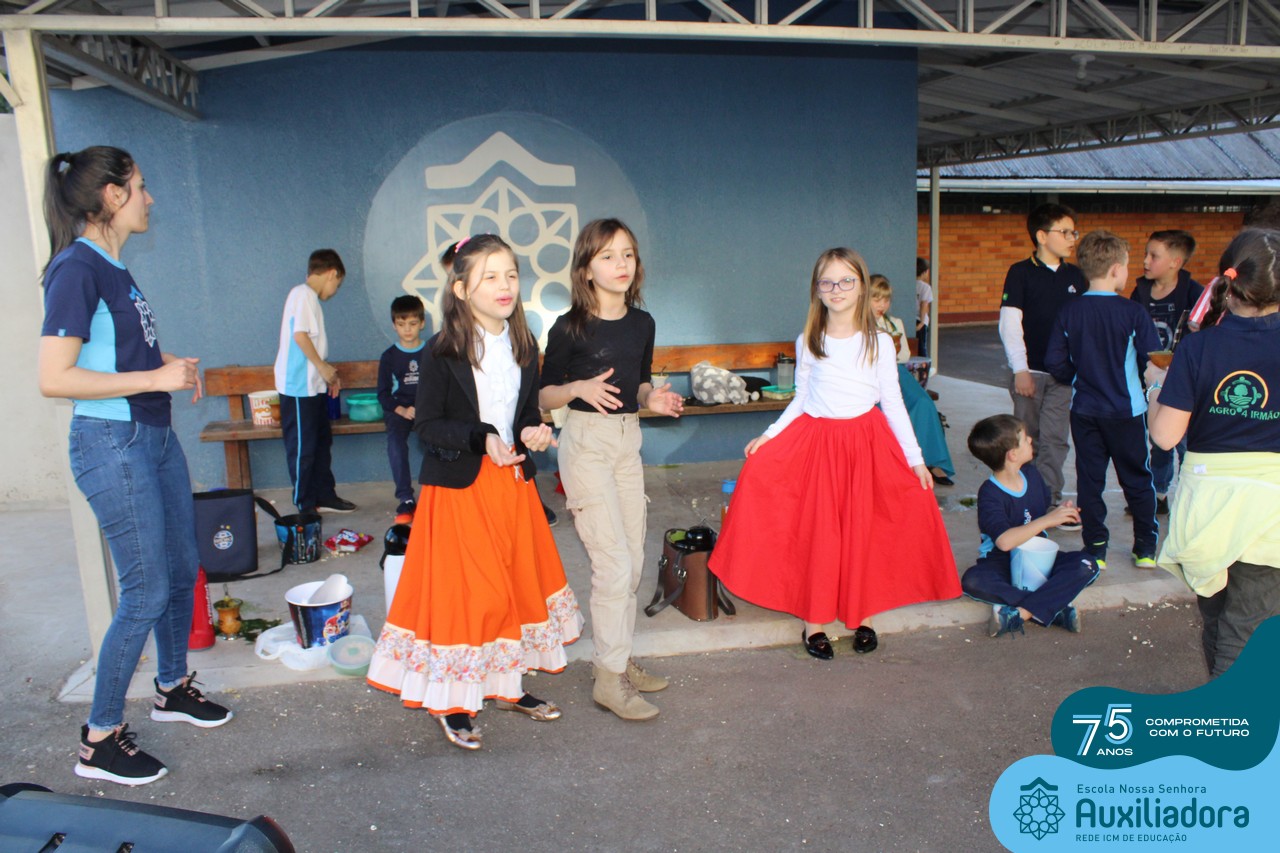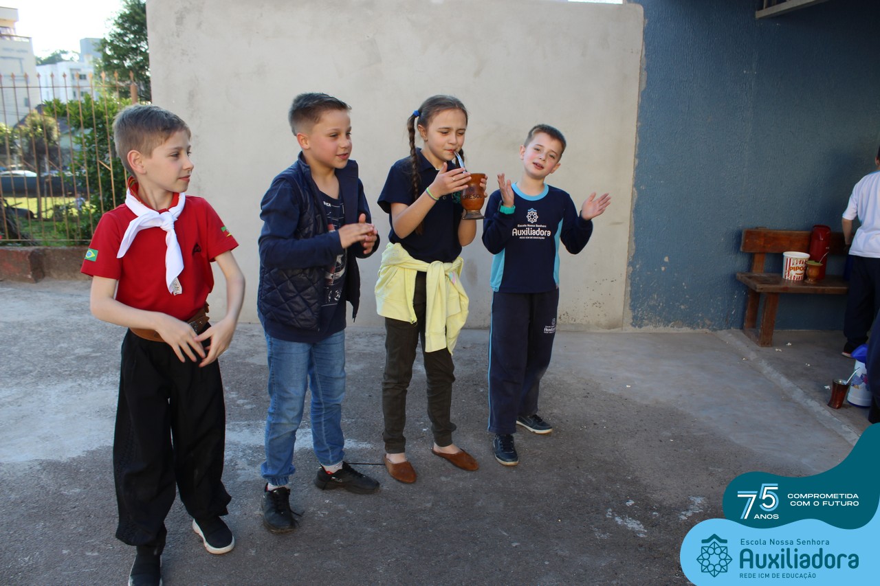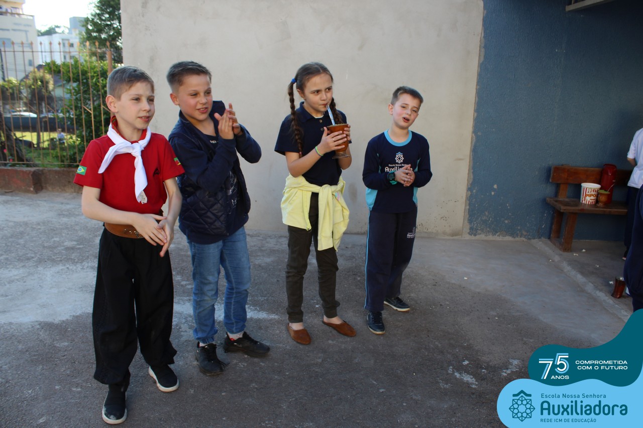 Muito chimarrão, diversão, conversa com amigos e também lindas apresentações dos alunos da escola.