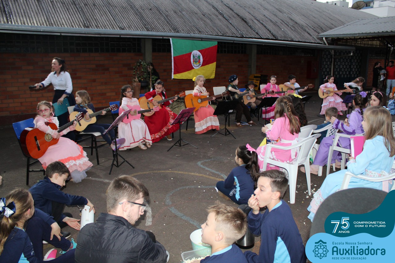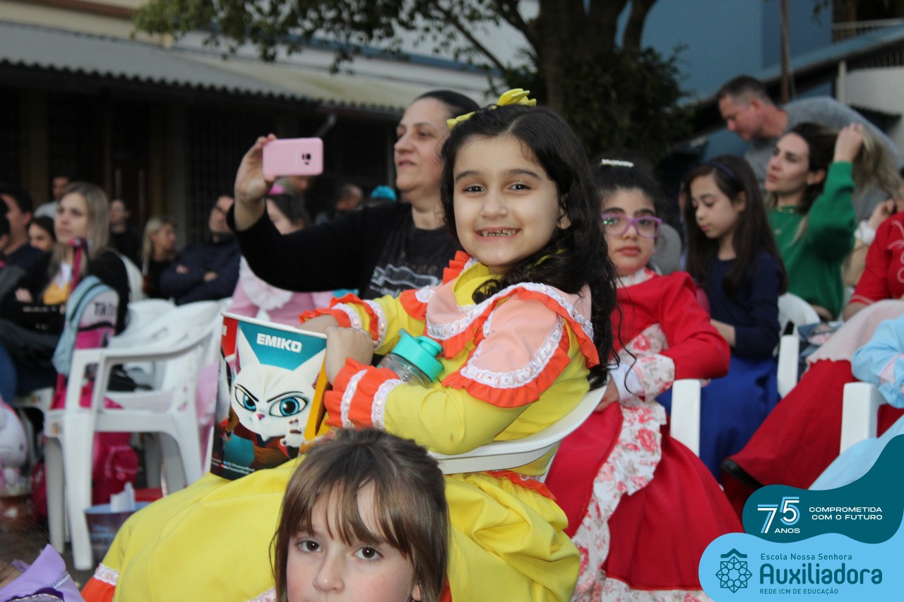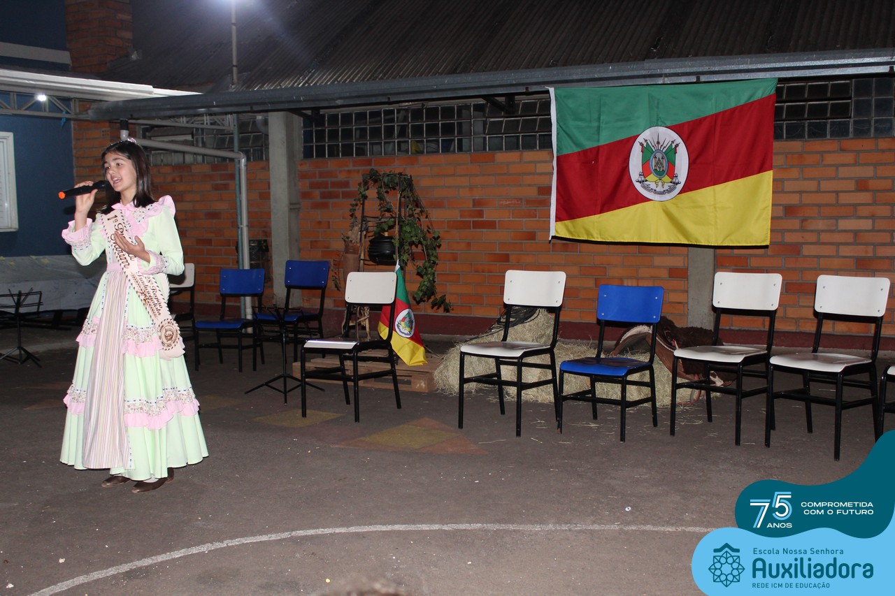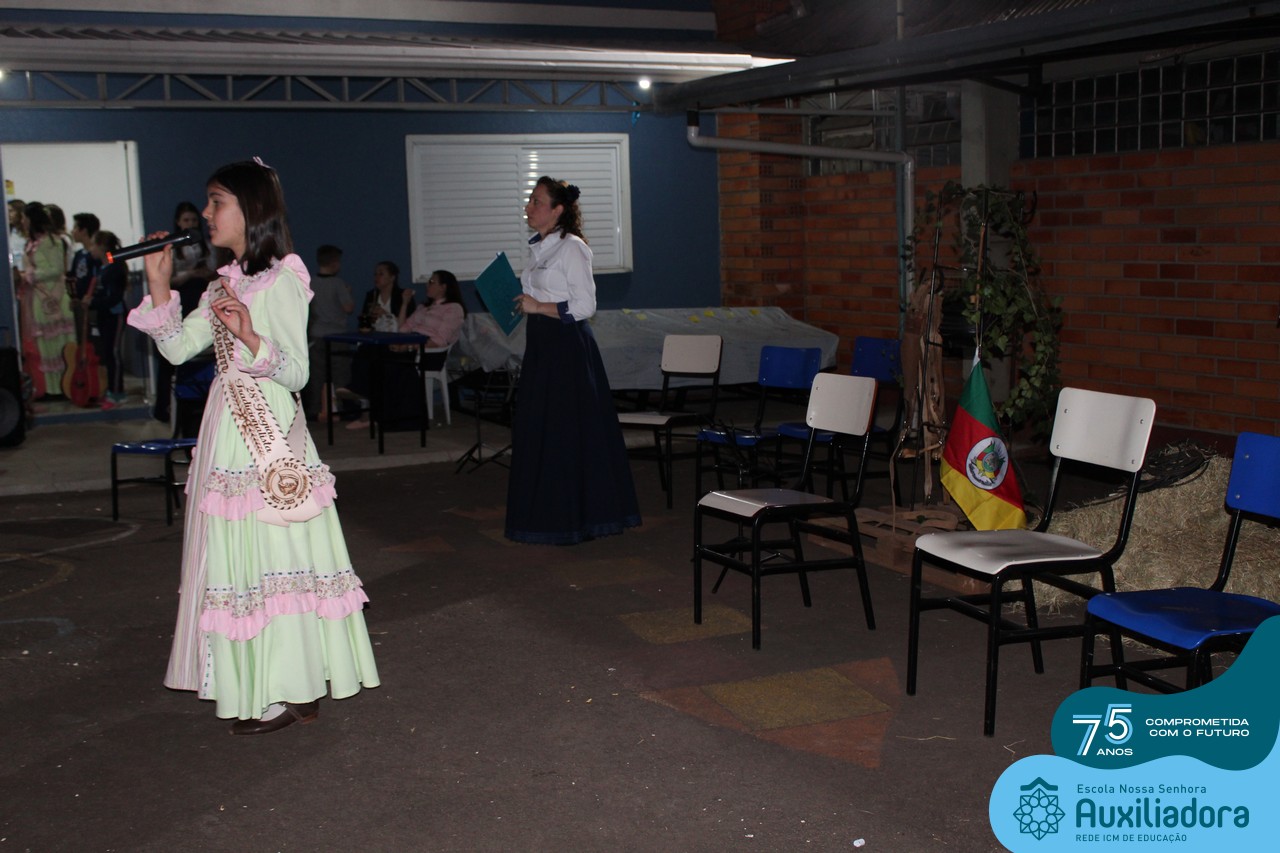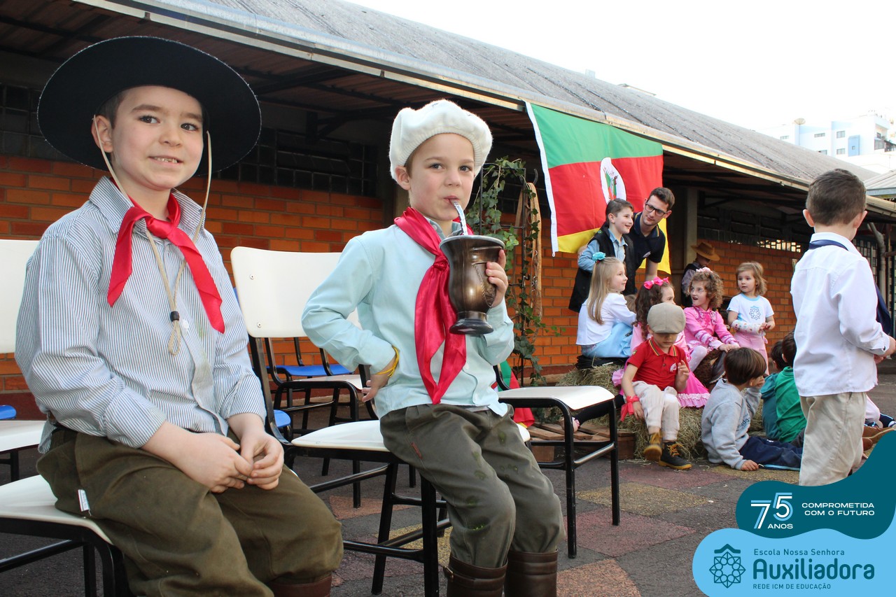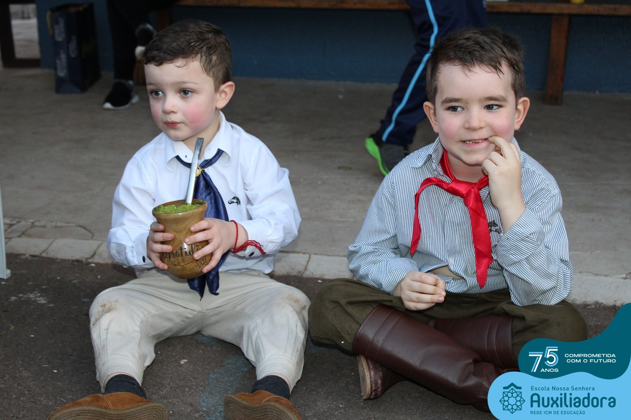 Muito chimarrão, diversão, conversa com amigos e também lindas apresentações dos alunos da escola.