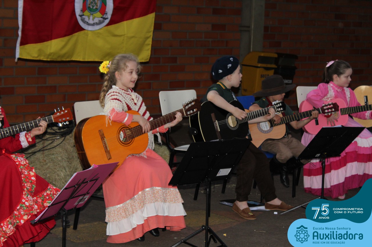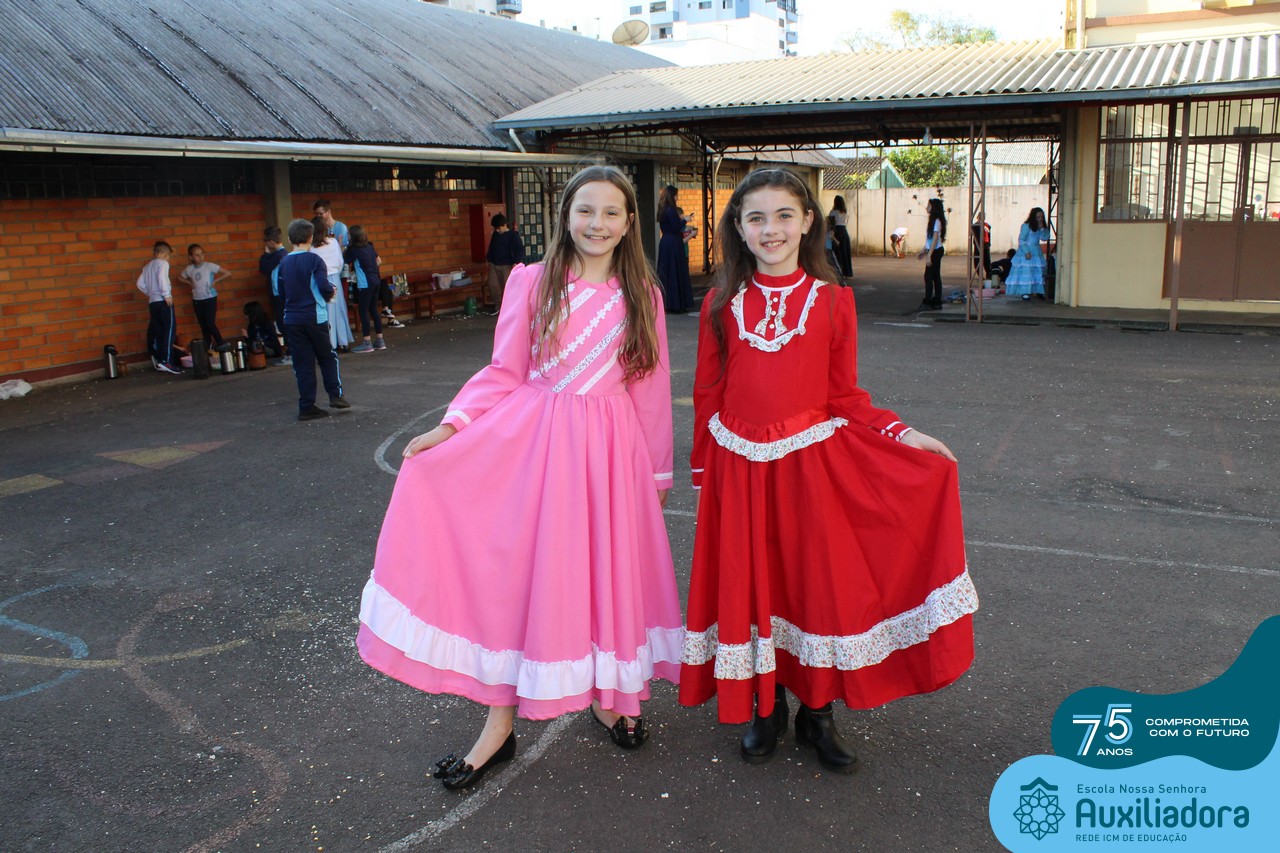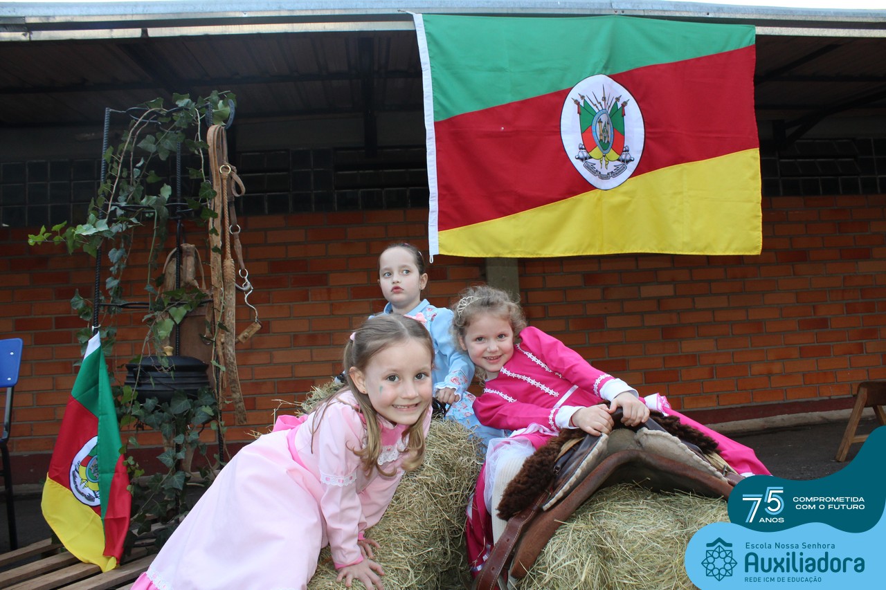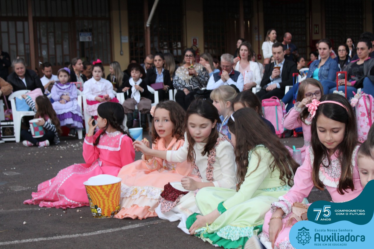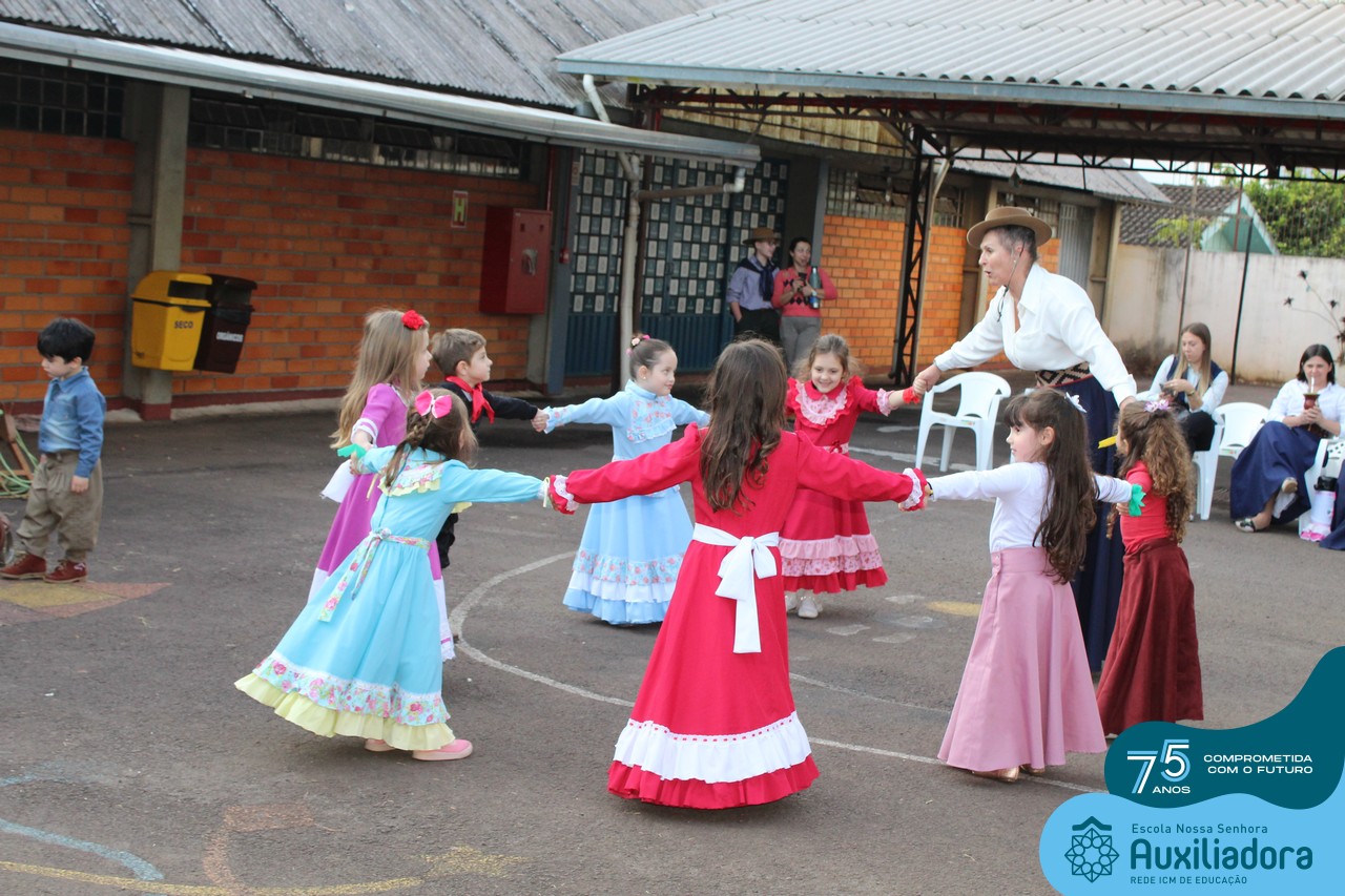 Muito chimarrão, diversão, conversa com amigos e também lindas apresentações dos alunos da escola.