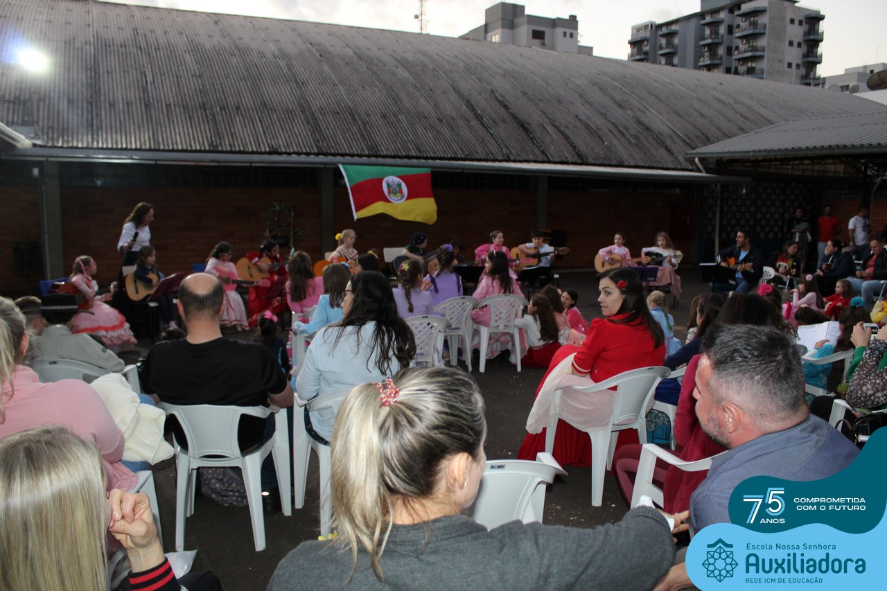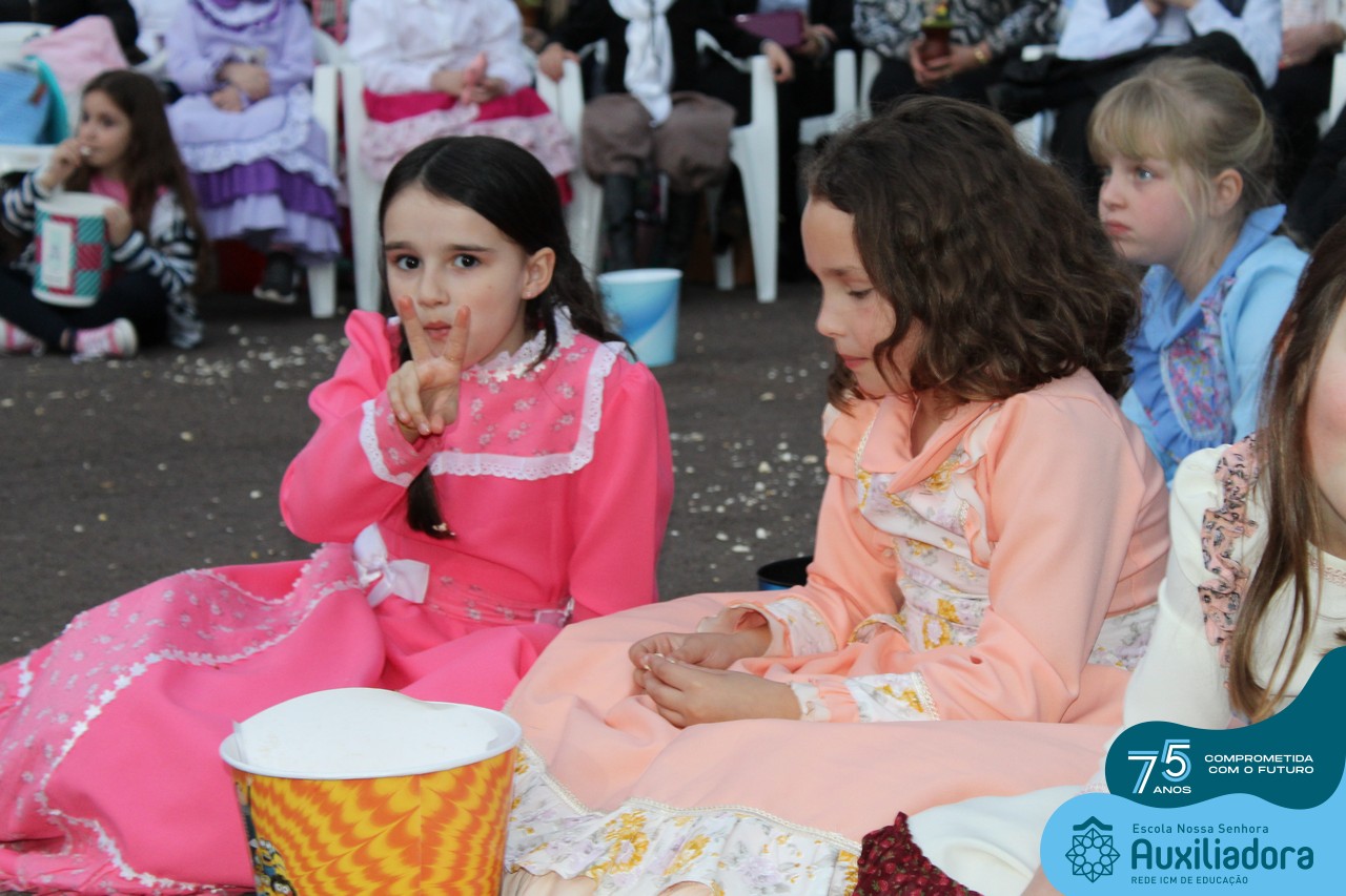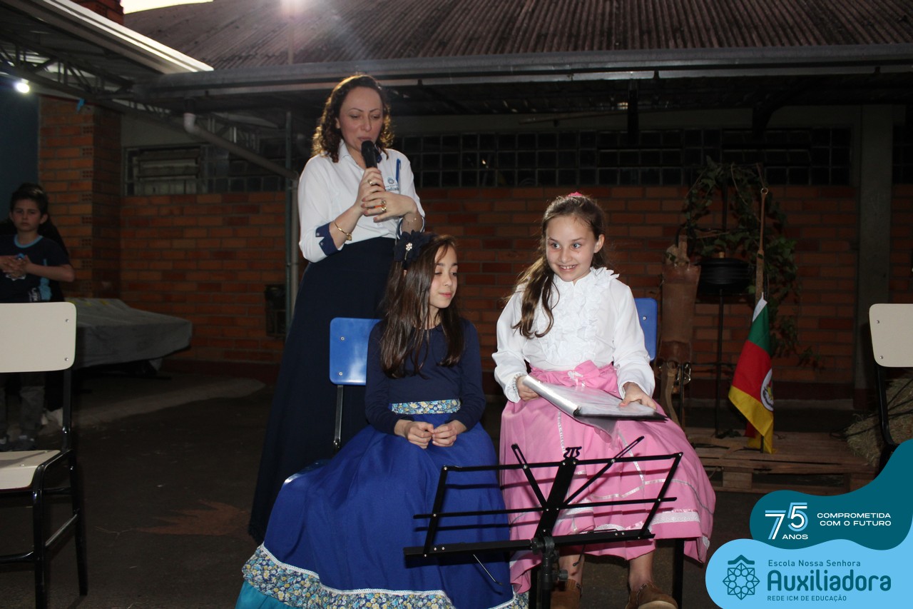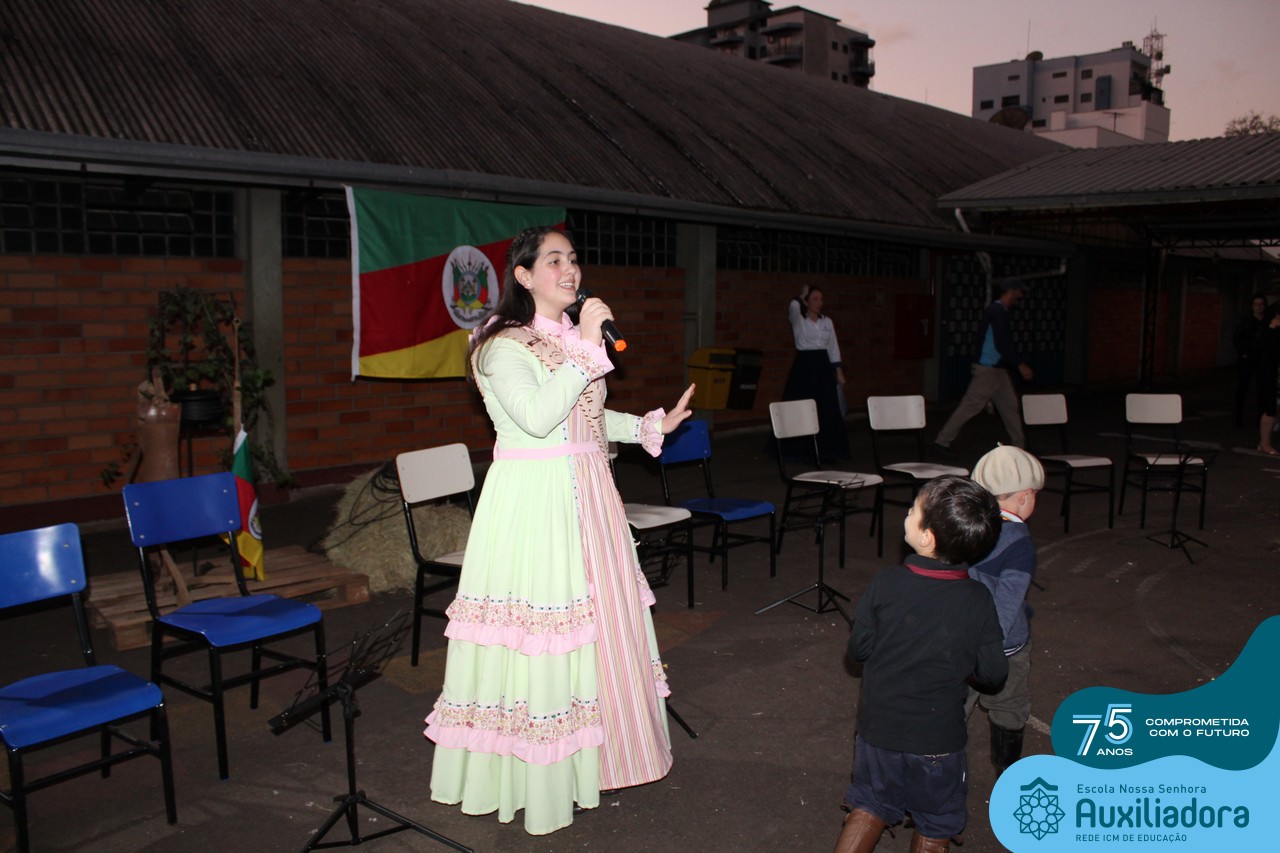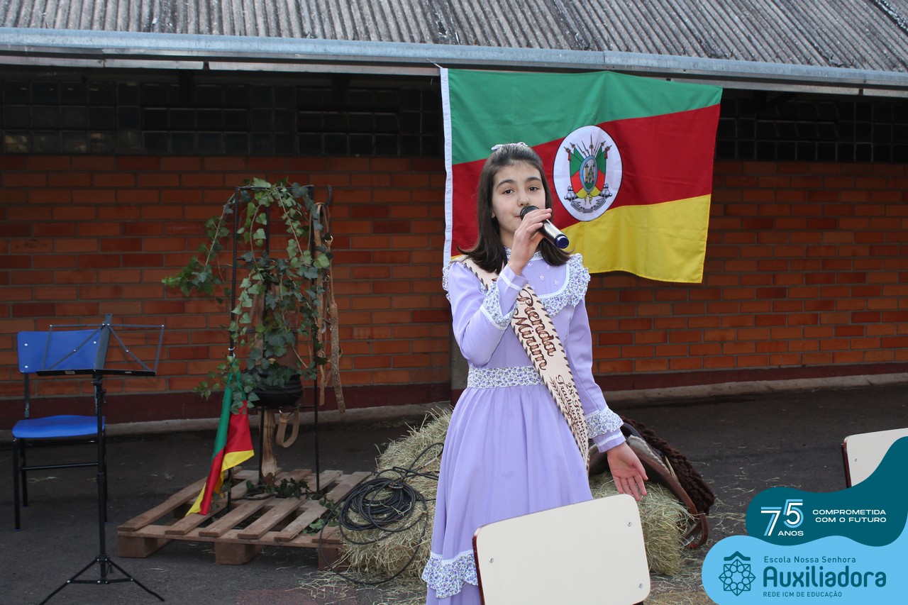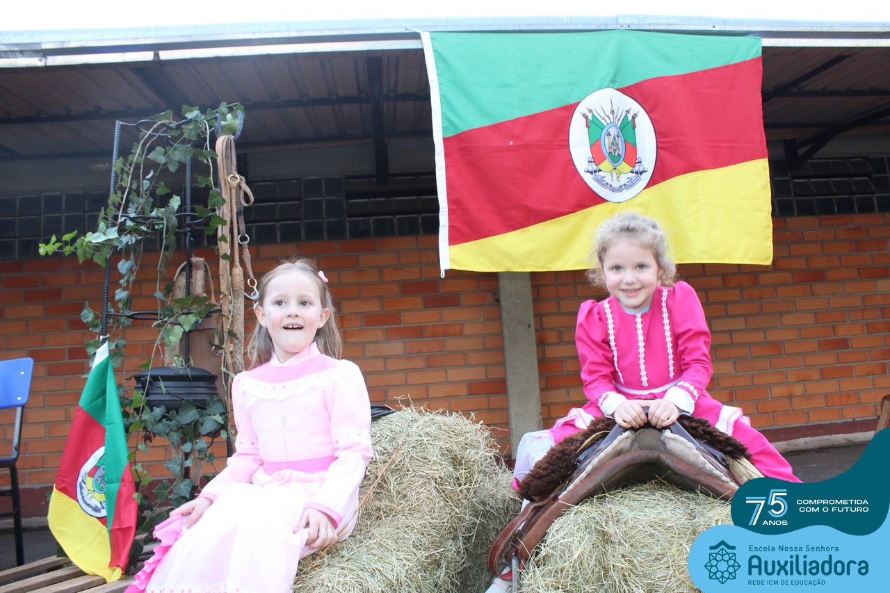 Muito chimarrão, diversão, conversa com amigos e também lindas apresentações dos alunos da escola.