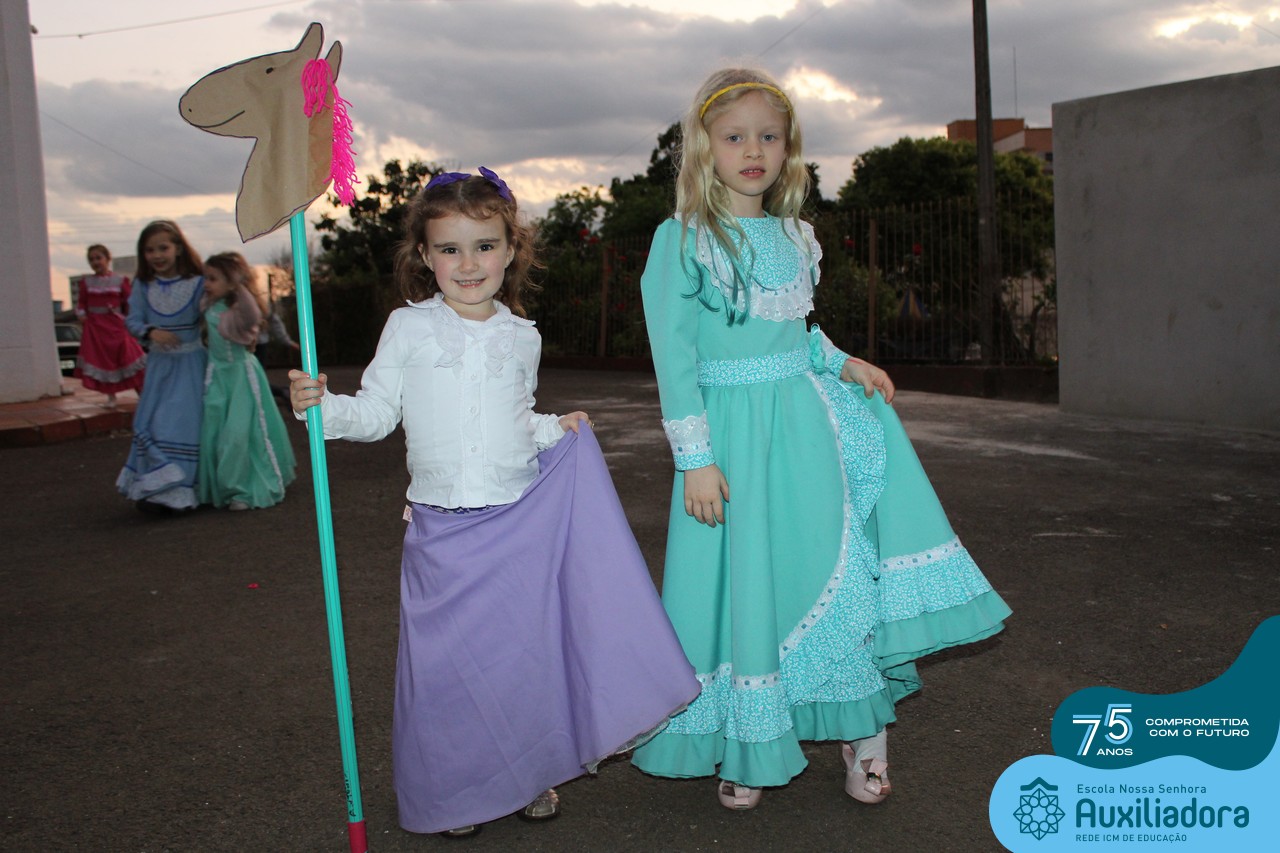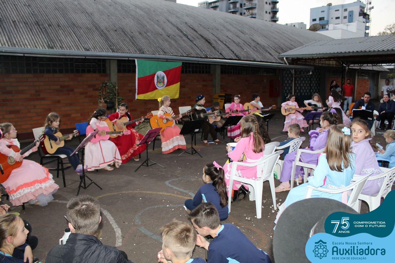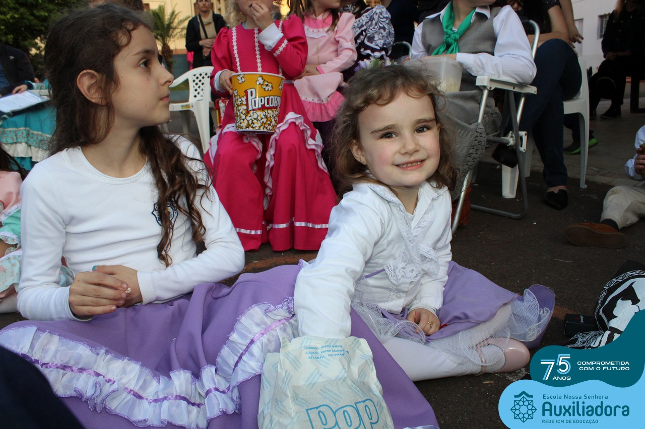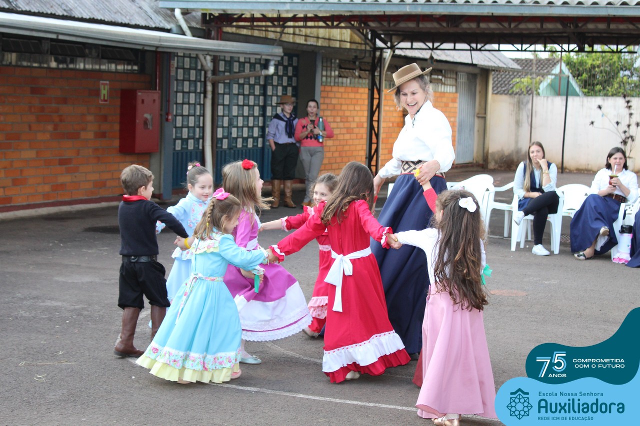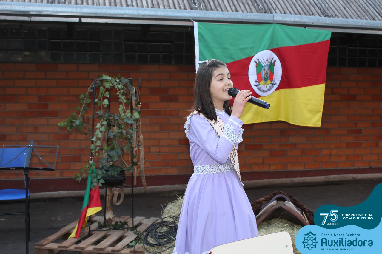 Muito chimarrão, diversão, conversa com amigos e também lindas apresentações dos alunos da escola.