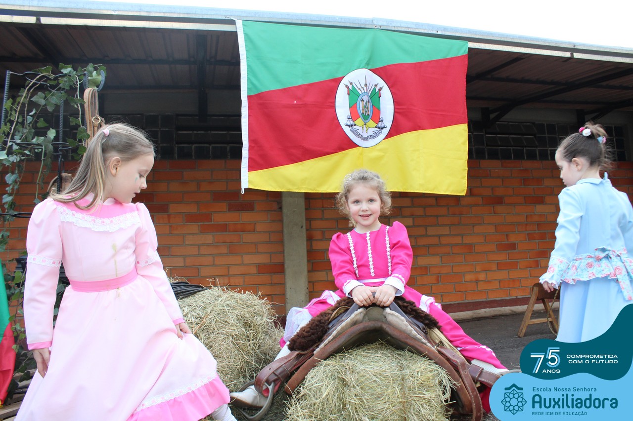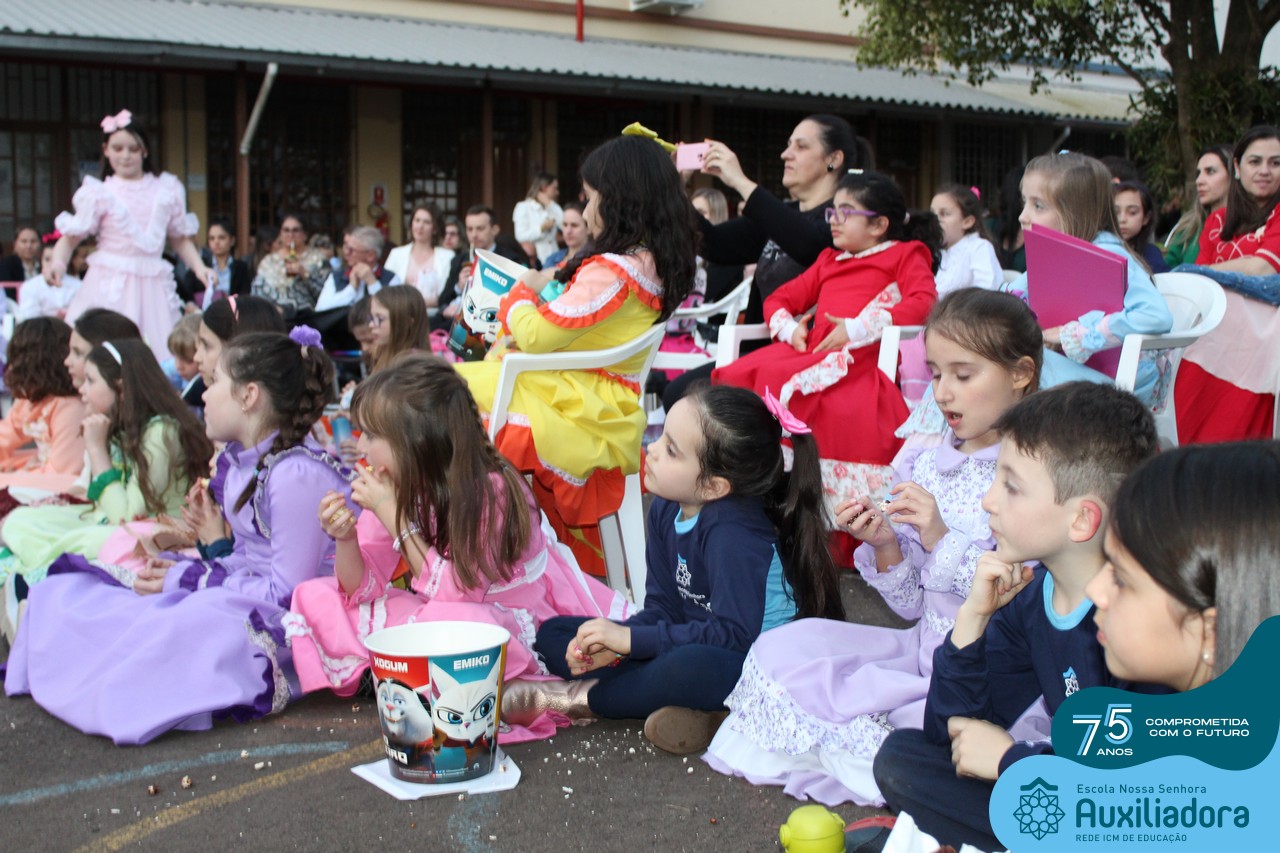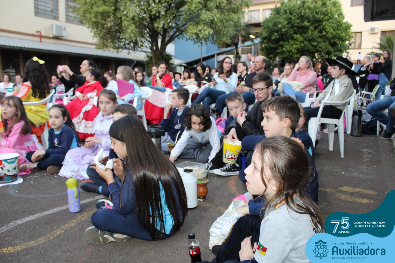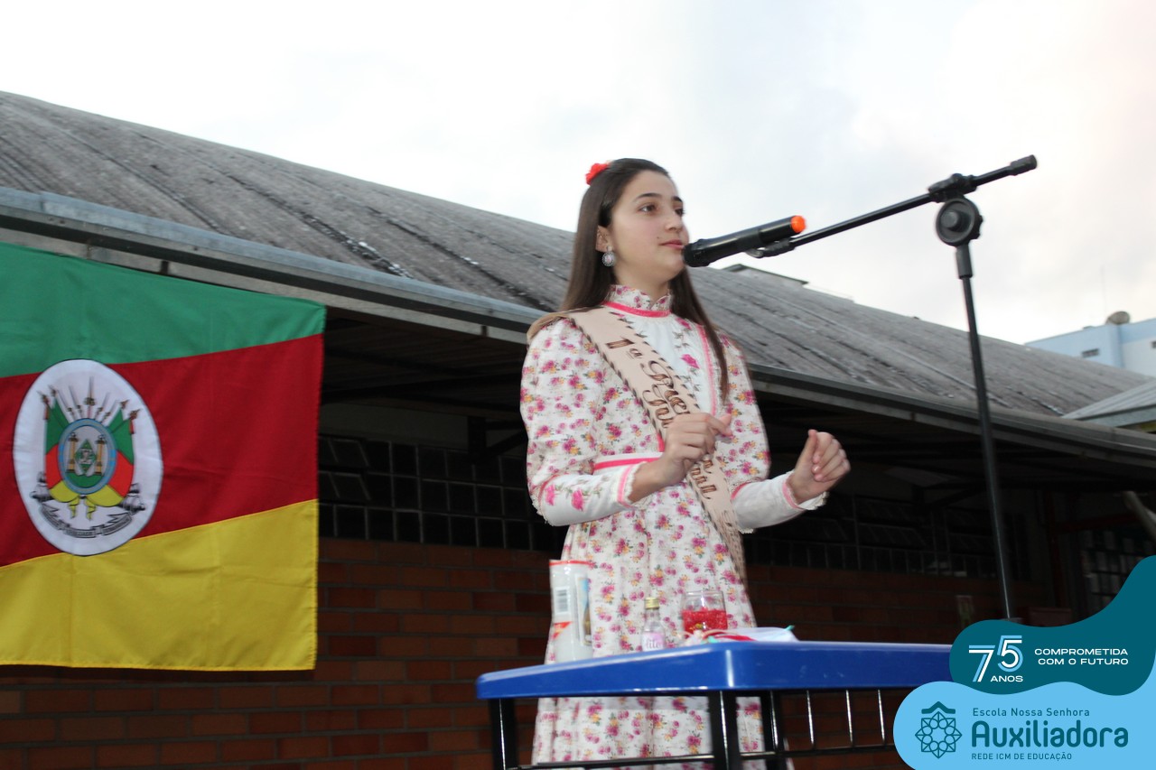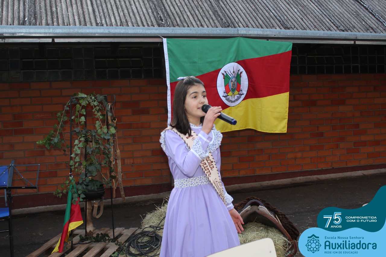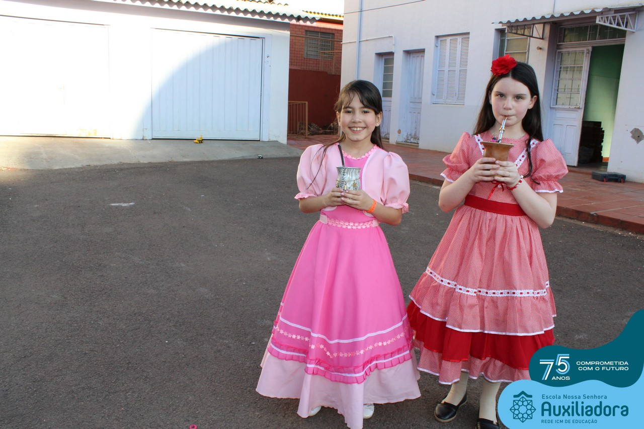 Muito chimarrão, diversão, conversa com amigos e também lindas apresentações dos alunos da escola.