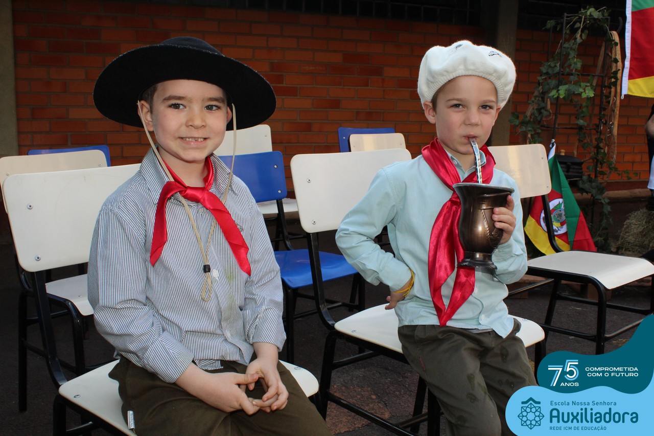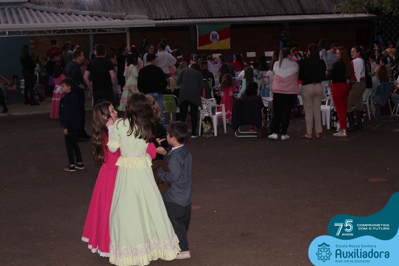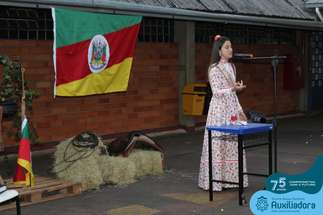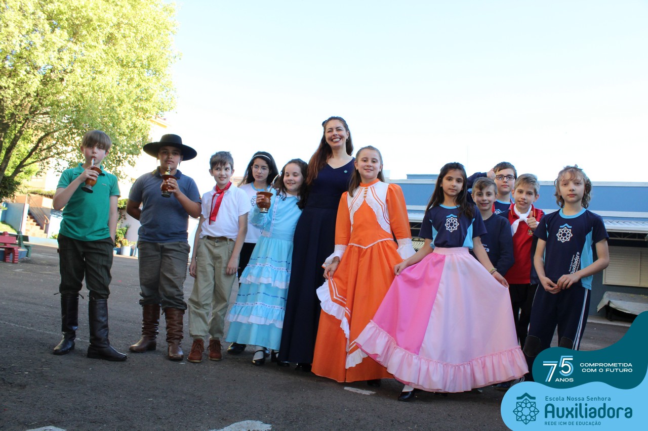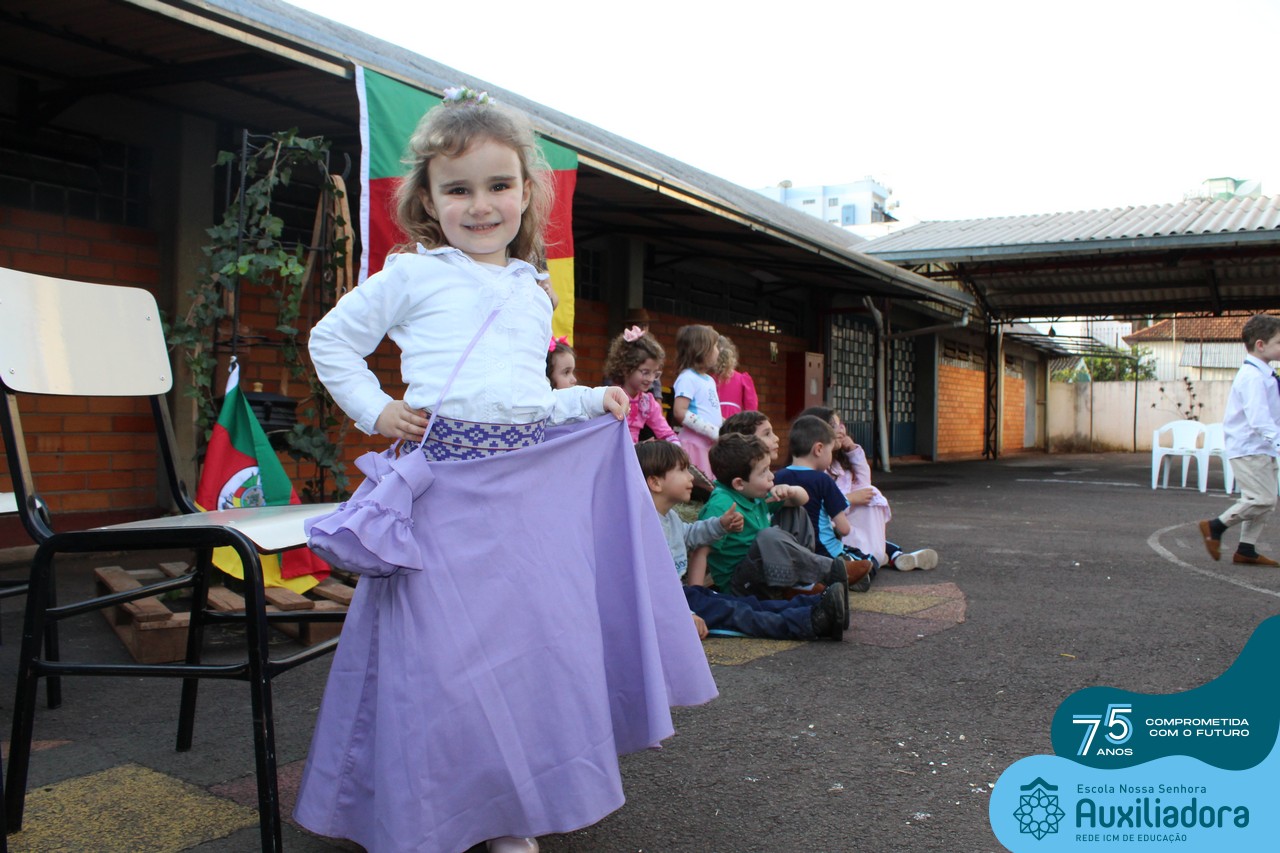 Muito chimarrão, diversão, conversa com amigos e também lindas apresentações dos alunos da escola.