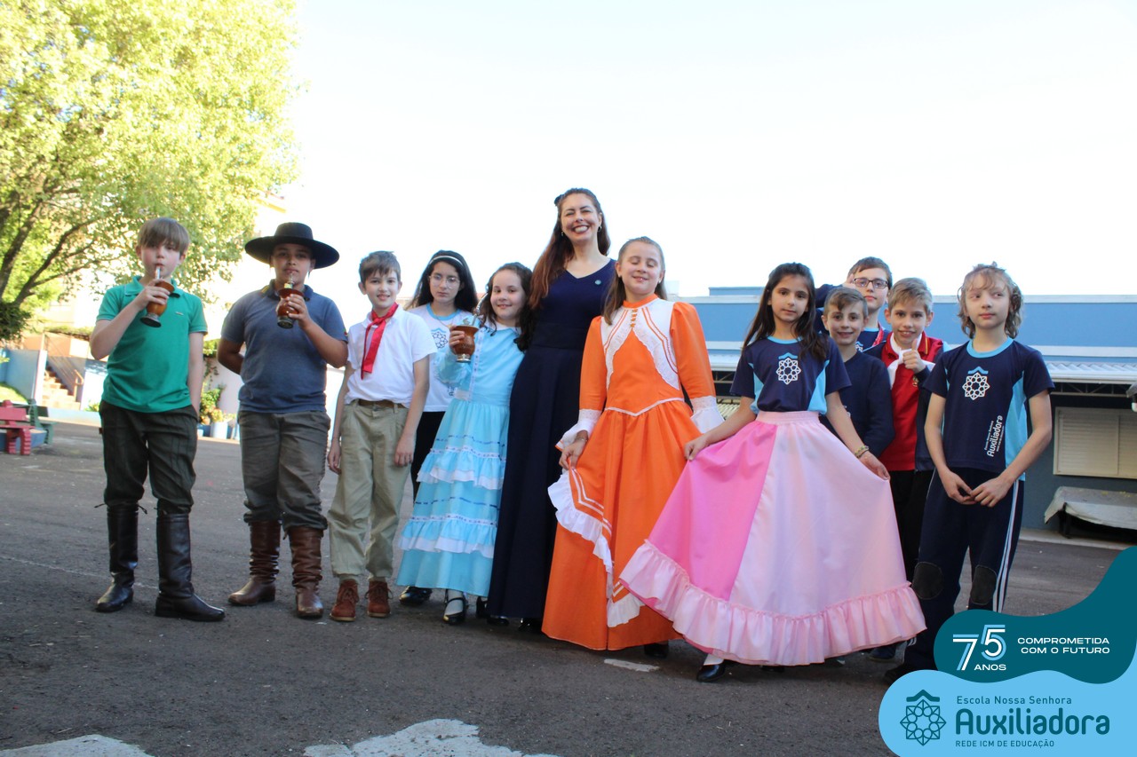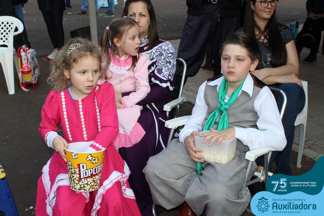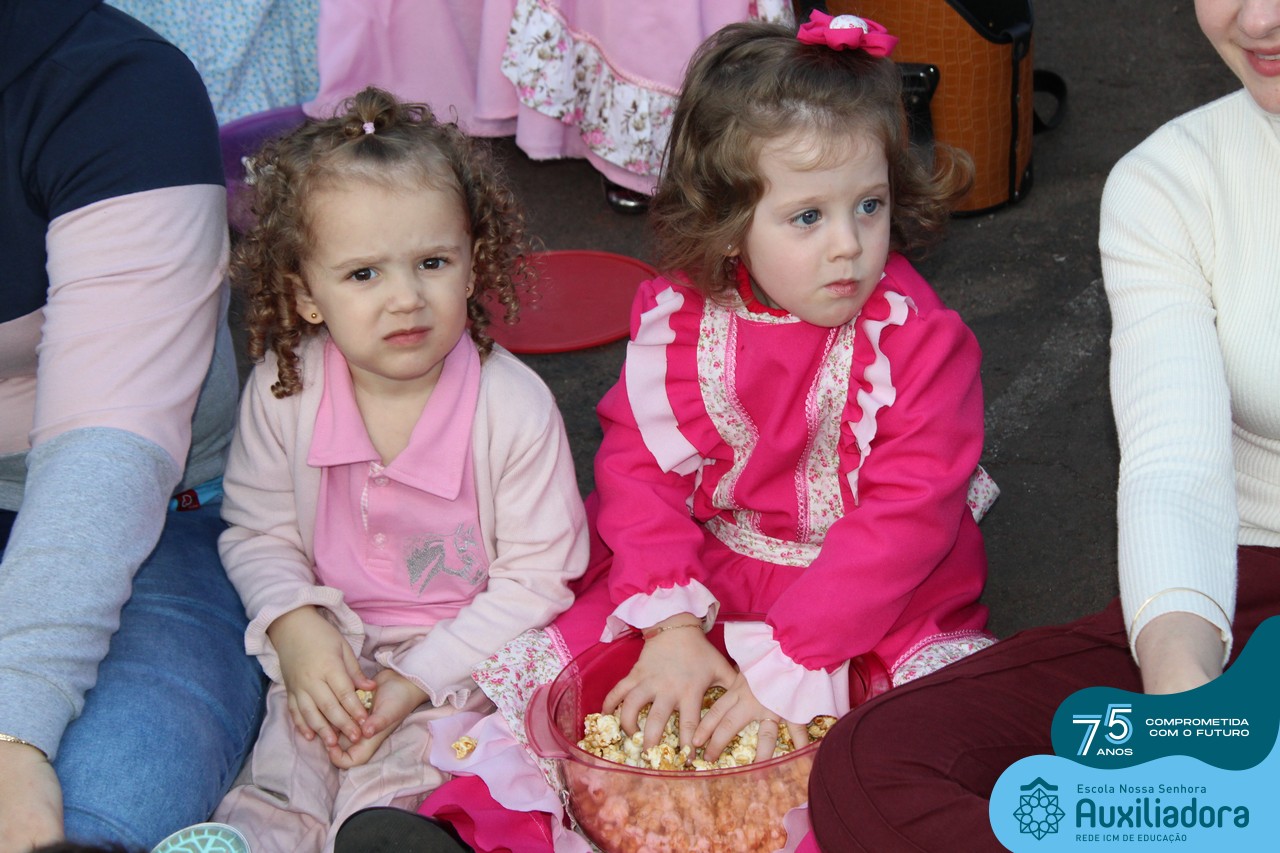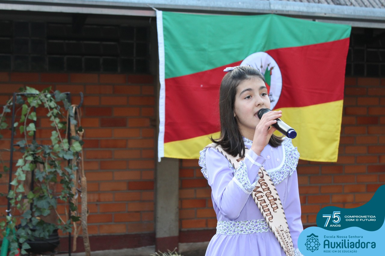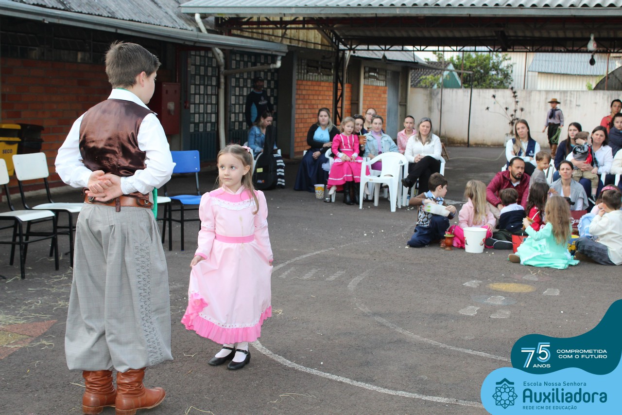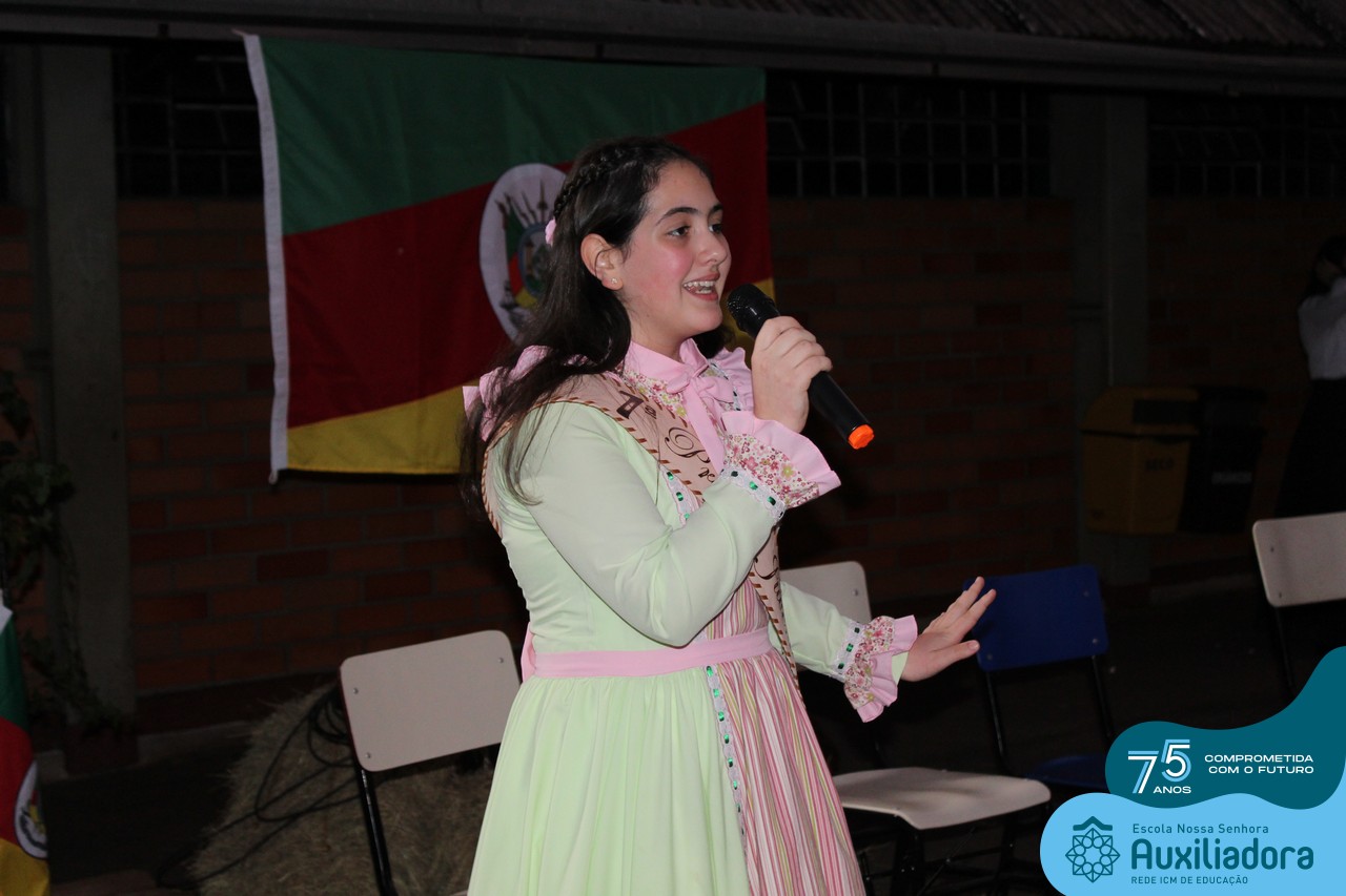 Muito chimarrão, diversão, conversa com amigos e também lindas apresentações dos alunos da escola.