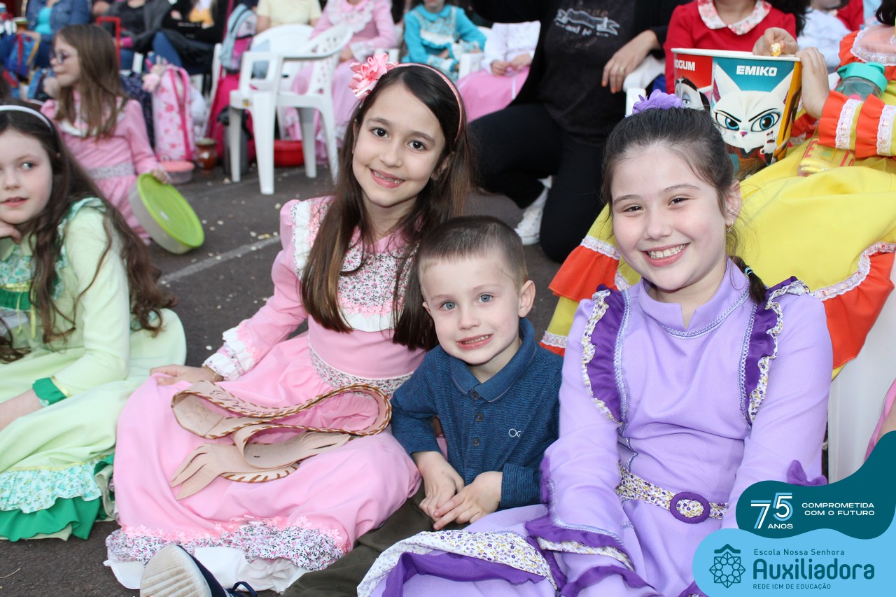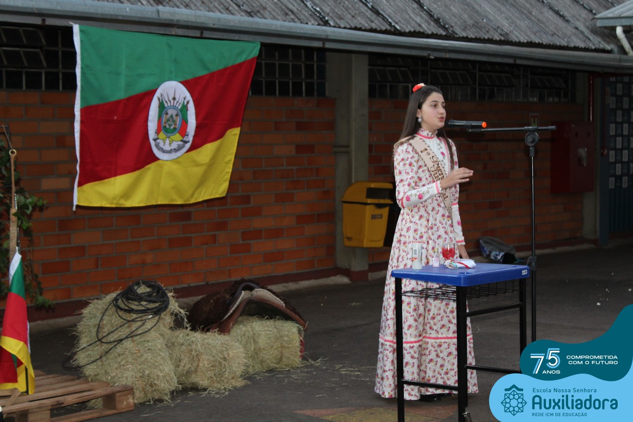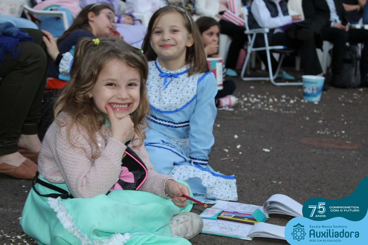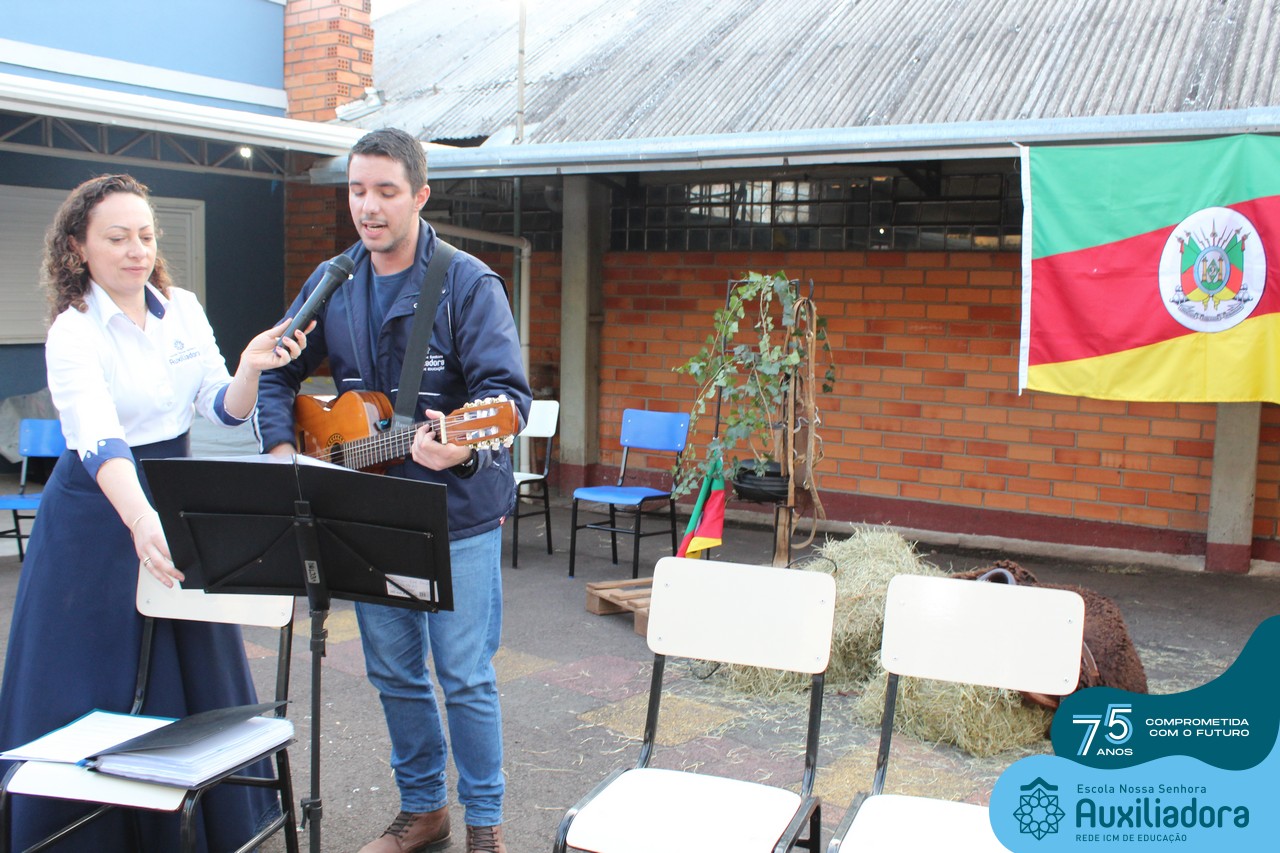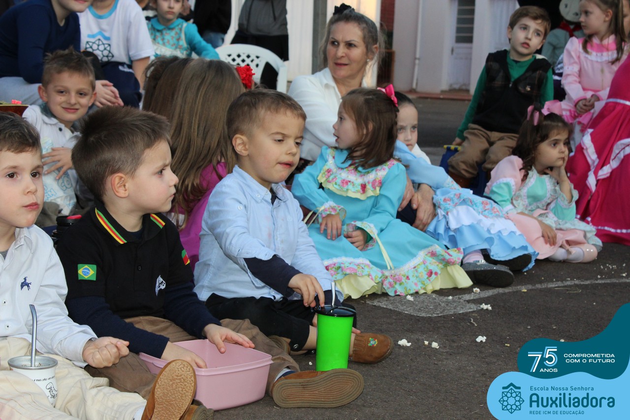 Muito chimarrão, diversão, conversa com amigos e também lindas apresentações dos alunos da escola.