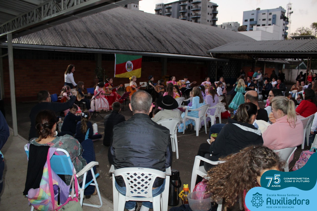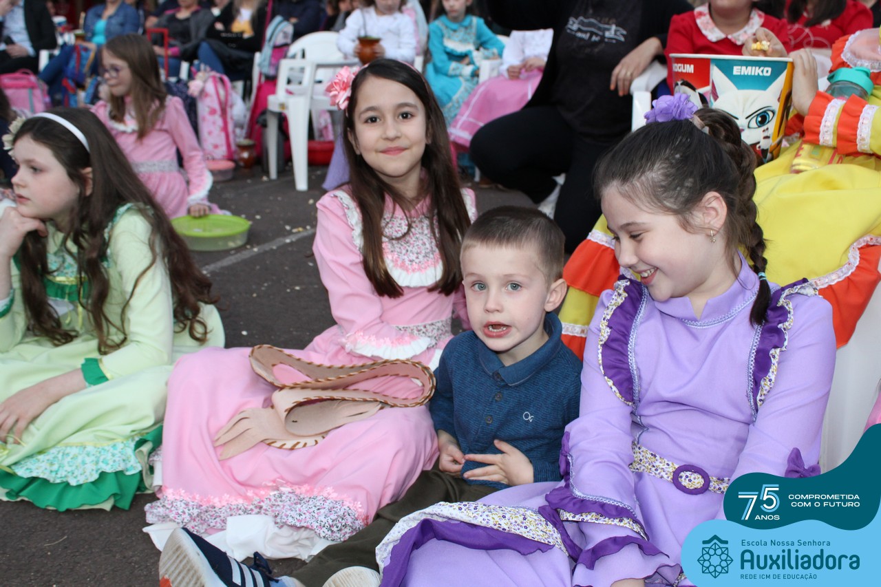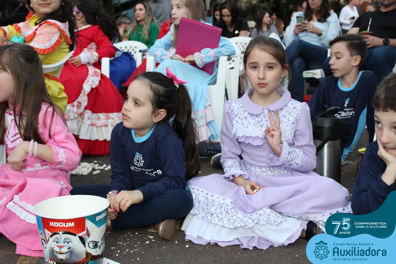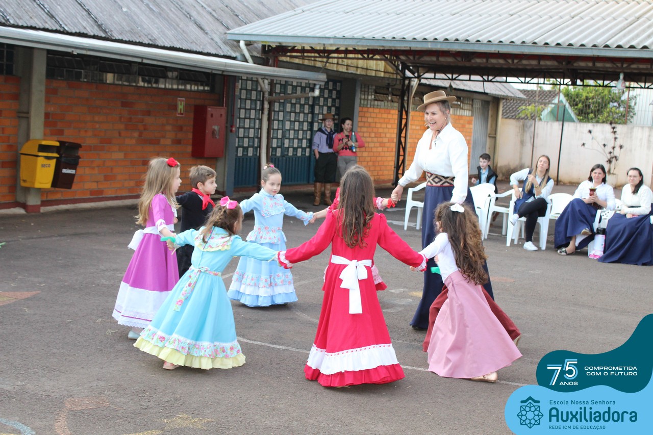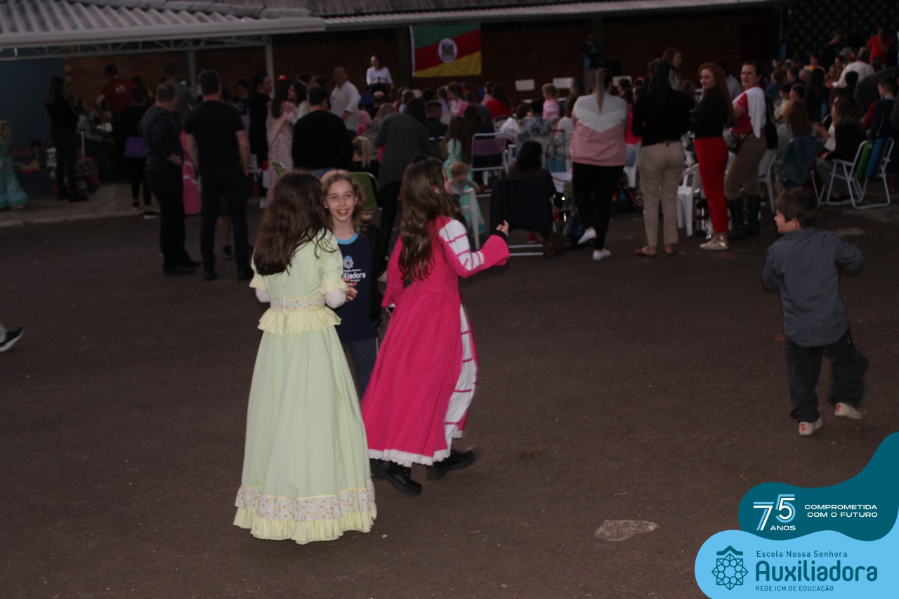 Muito chimarrão, diversão, conversa com amigos e também lindas apresentações dos alunos da escola.