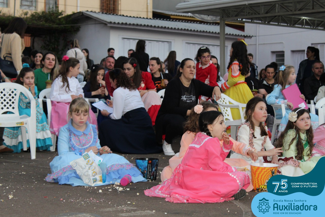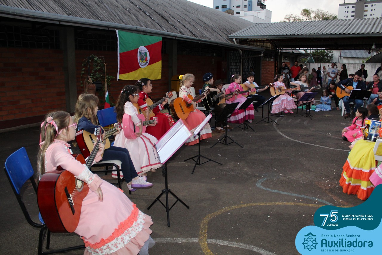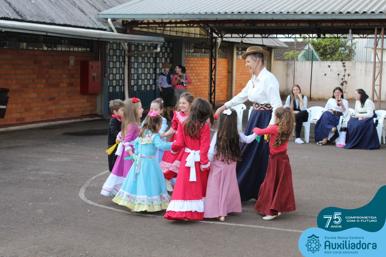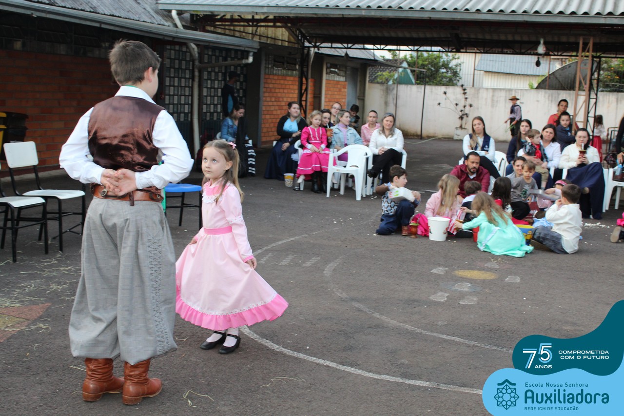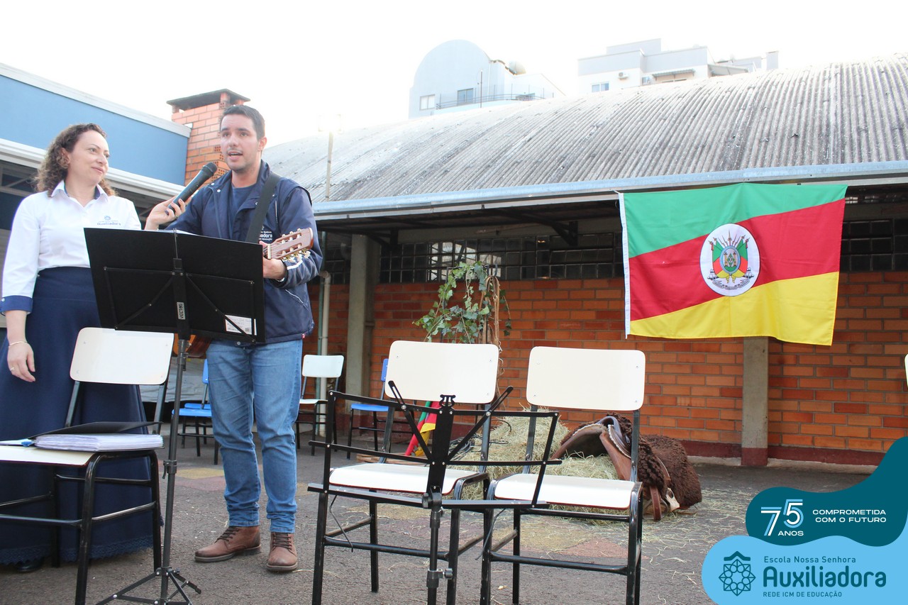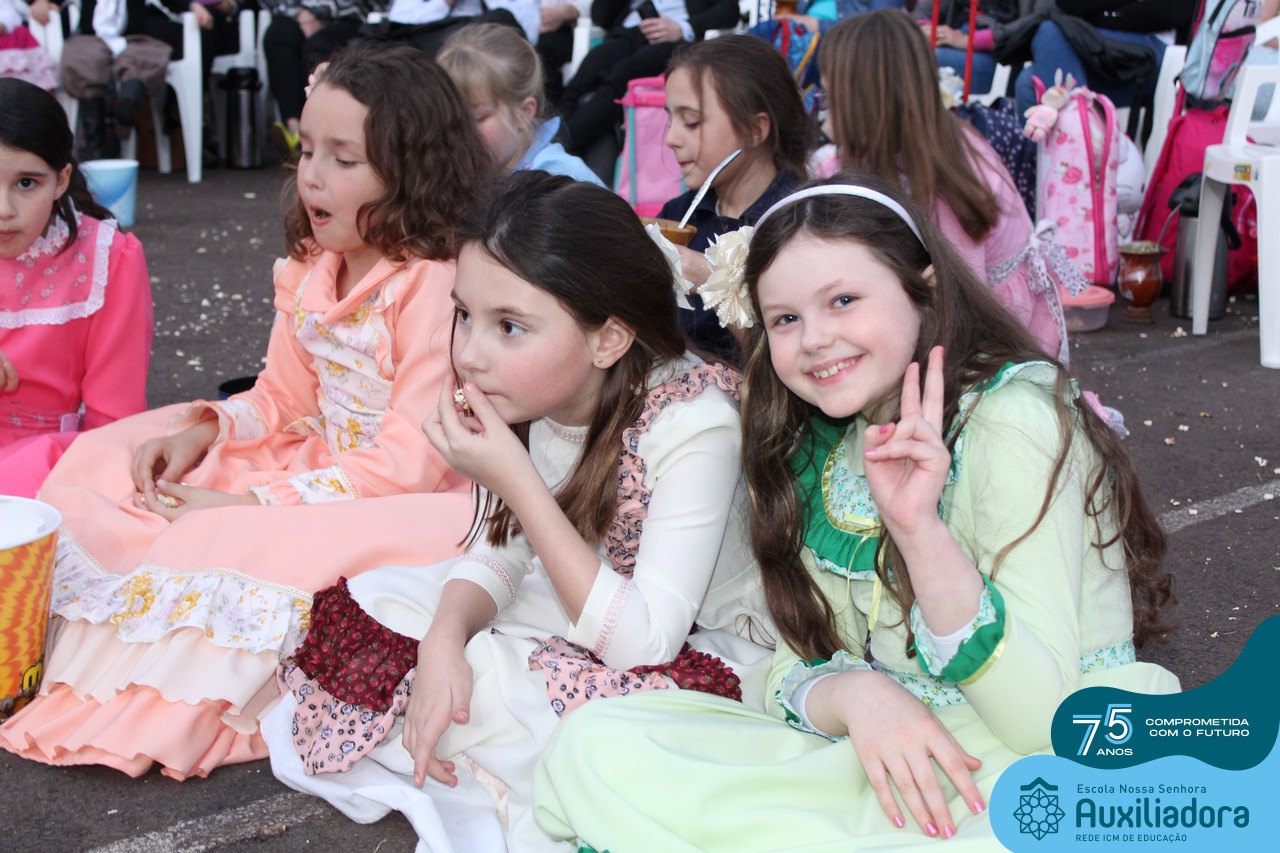 Muito chimarrão, diversão, conversa com amigos e também lindas apresentações dos alunos da escola.