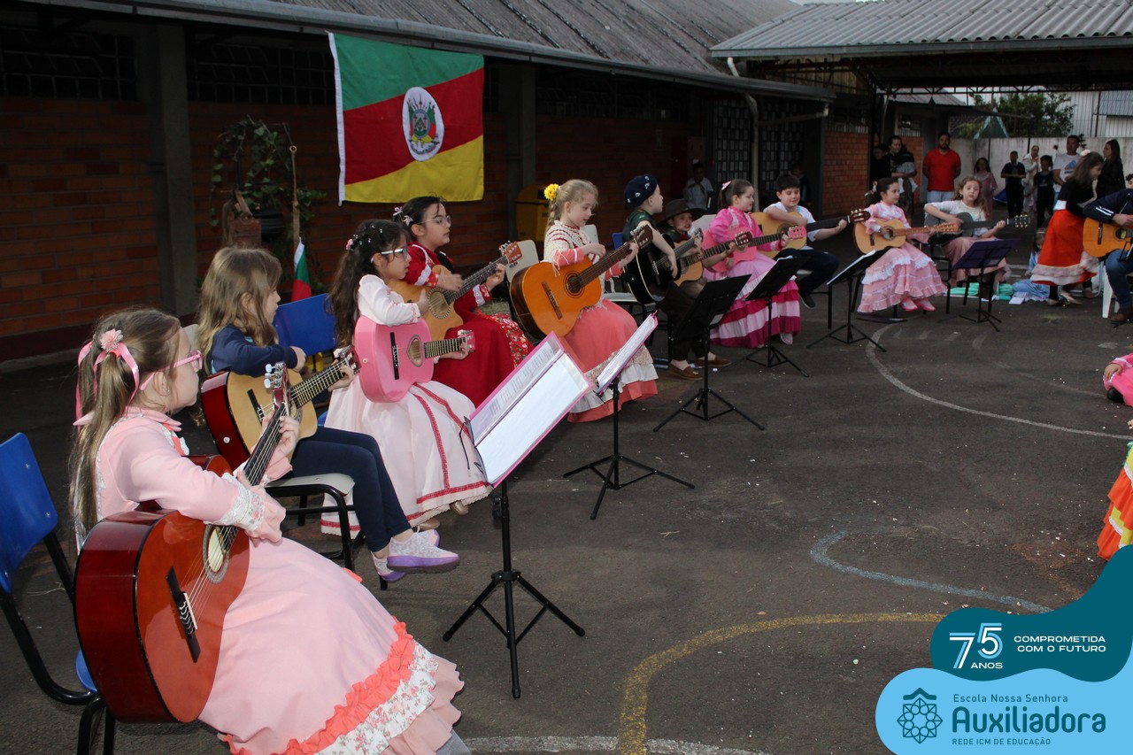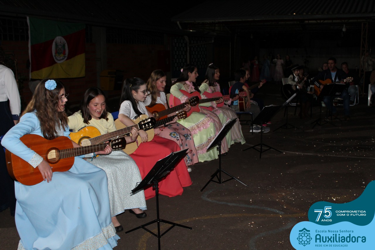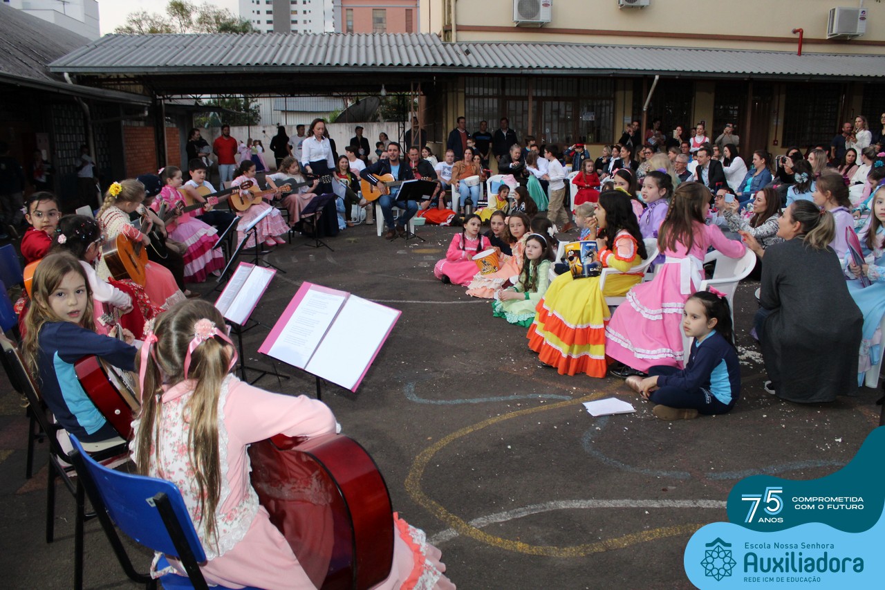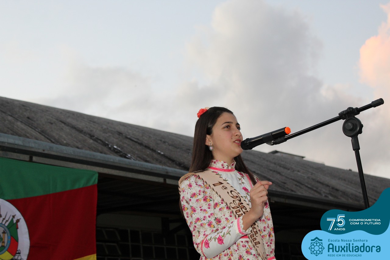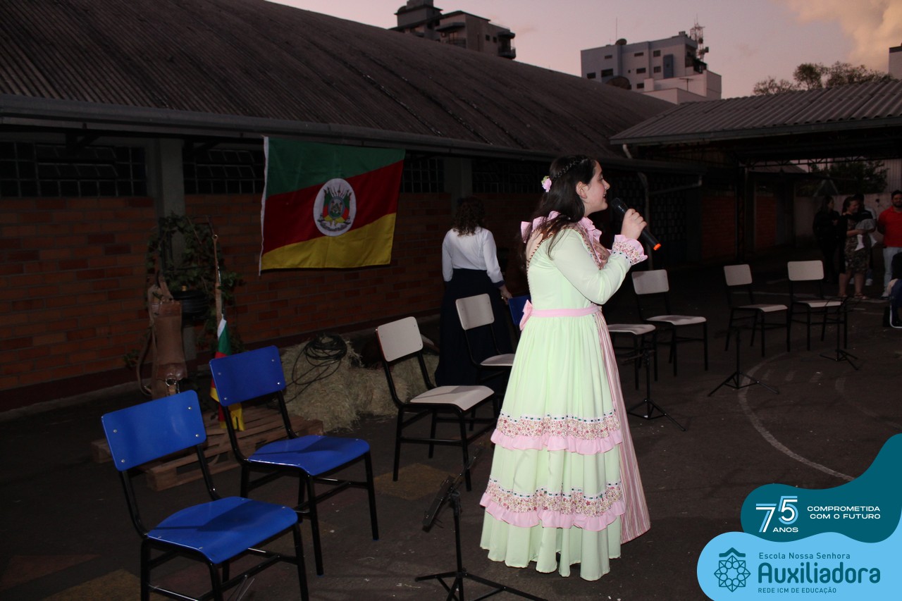 Muito chimarrão, diversão, conversa com amigos e também lindas apresentações dos alunos da escola.