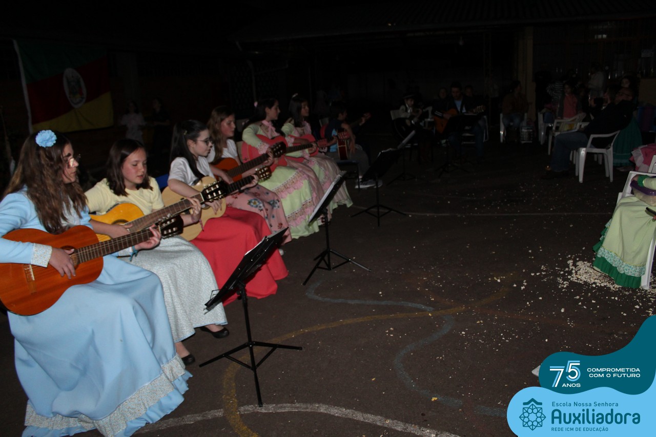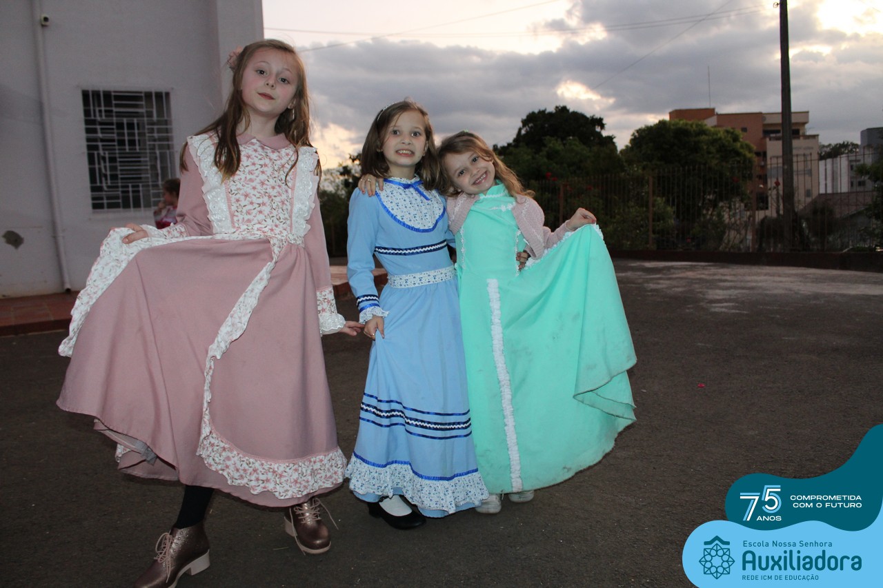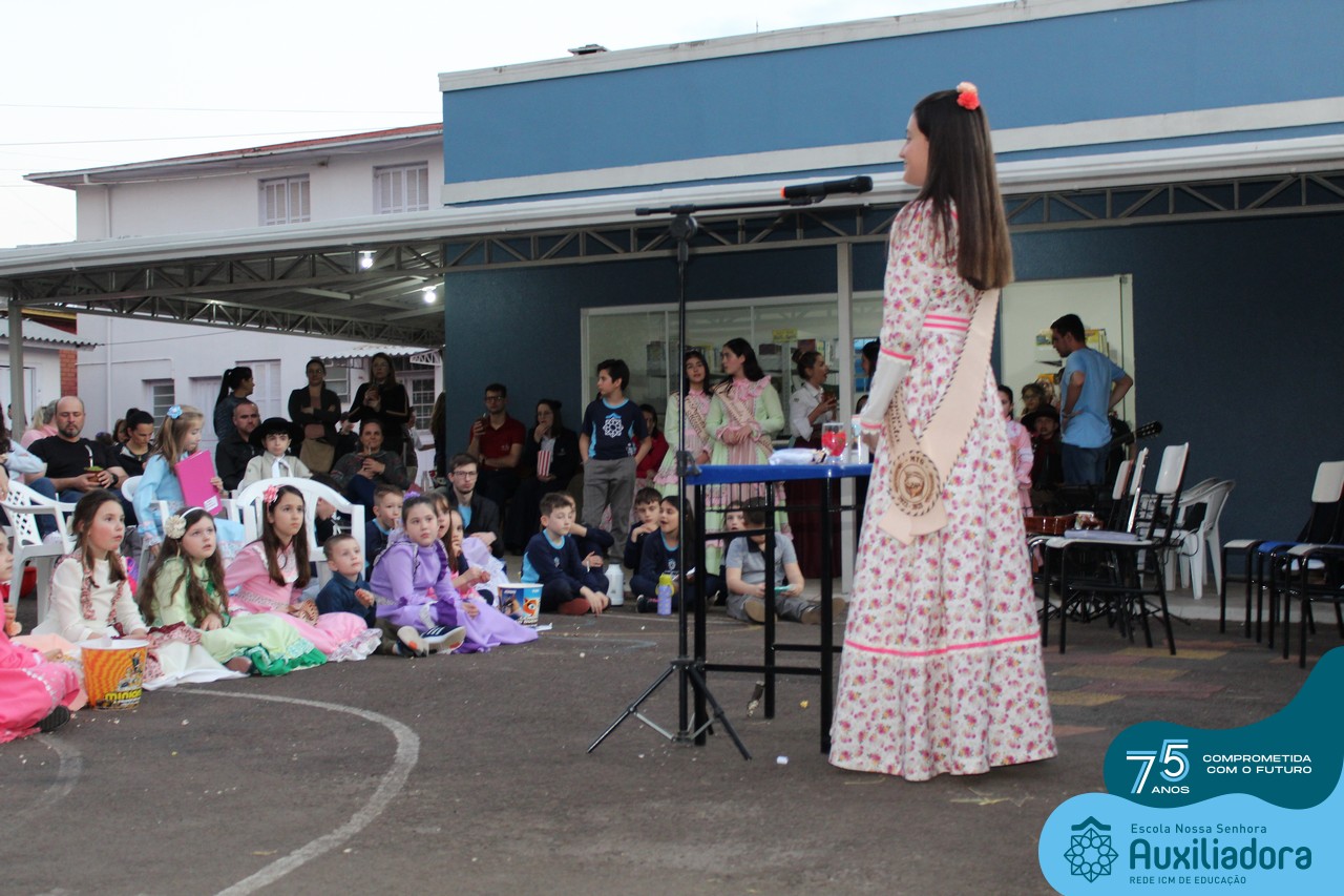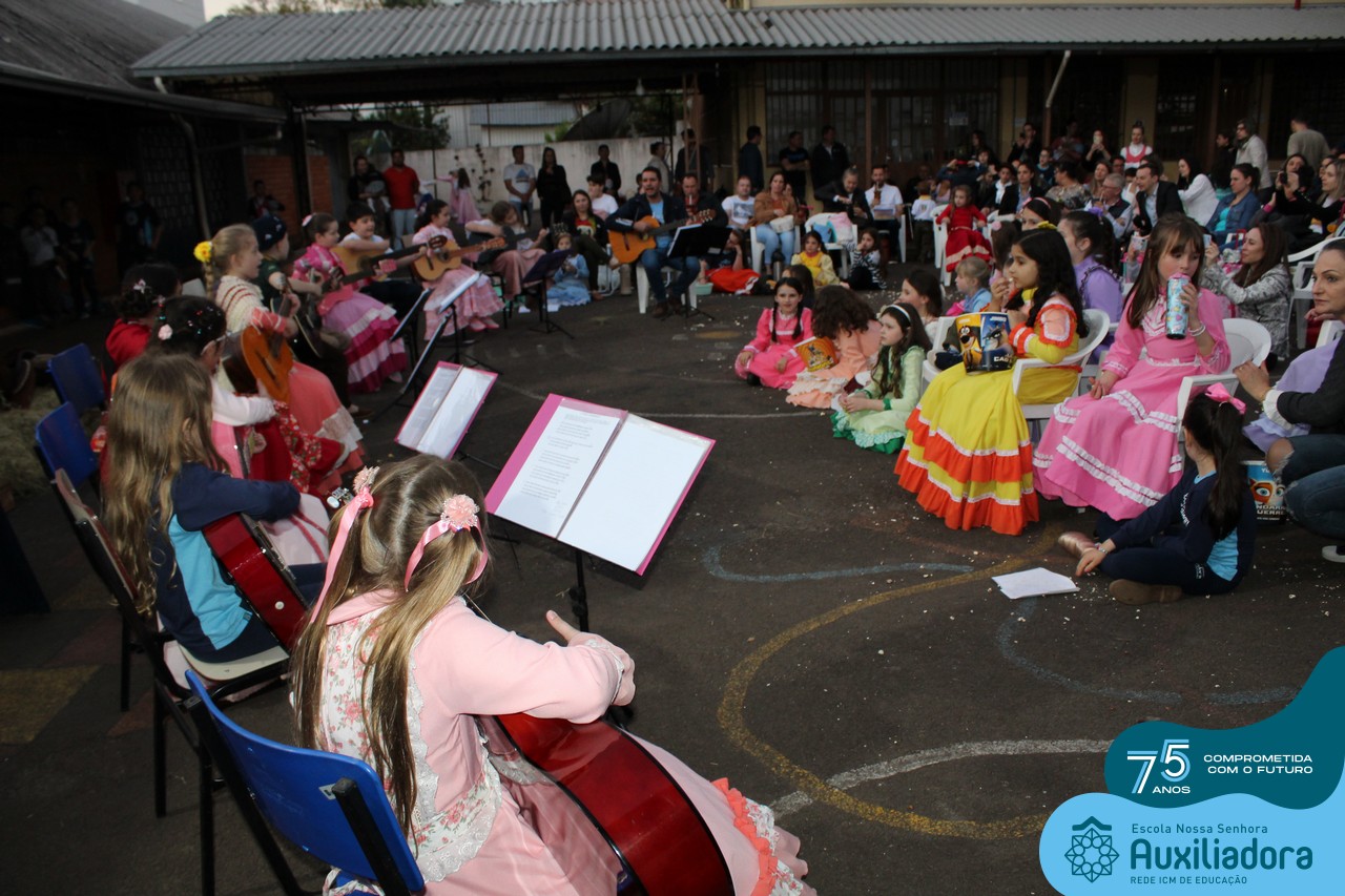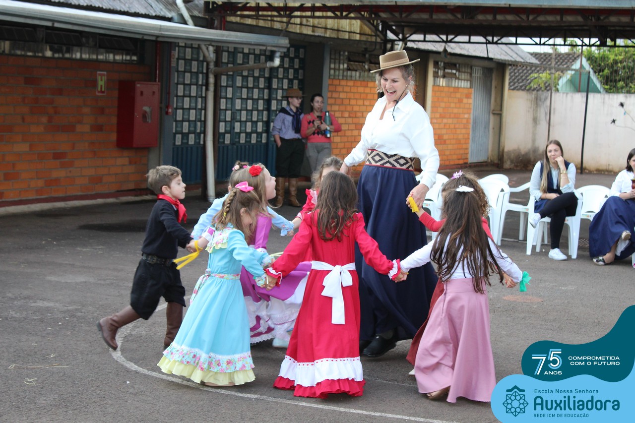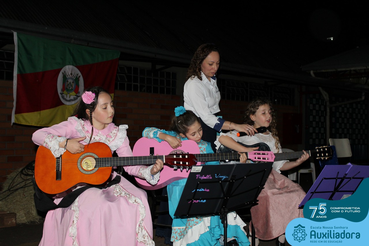Muito chimarrão, diversão, conversa com amigos e também lindas apresentações dos alunos da escola.