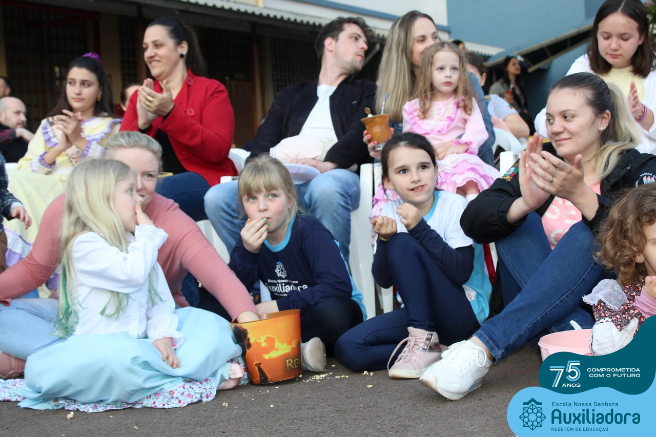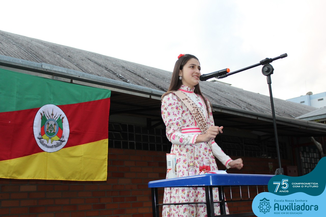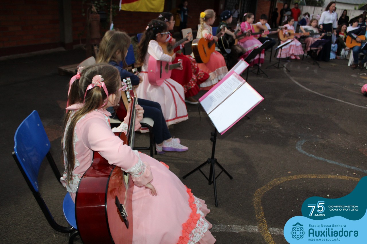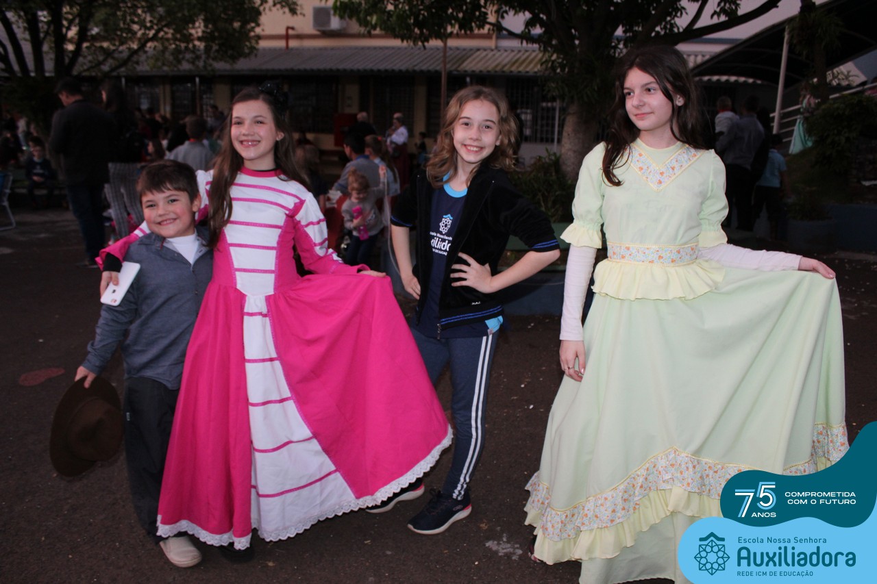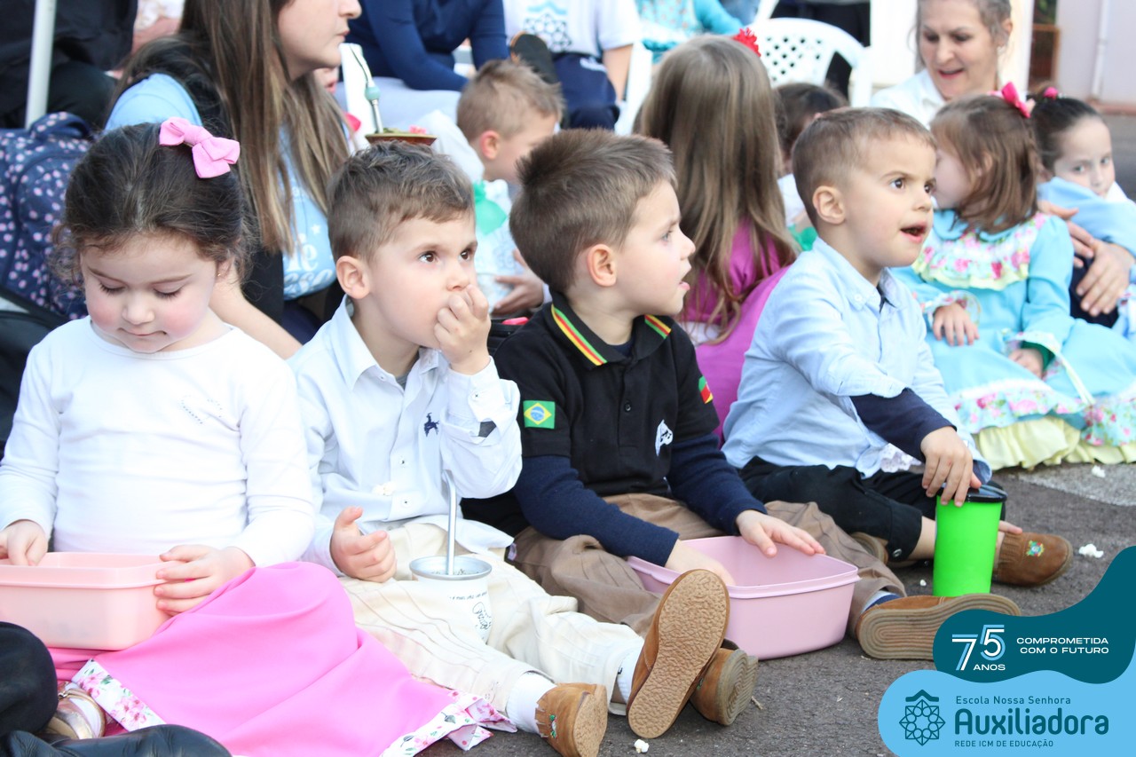 Muito chimarrão, diversão, conversa com amigos e também lindas apresentações dos alunos da escola.