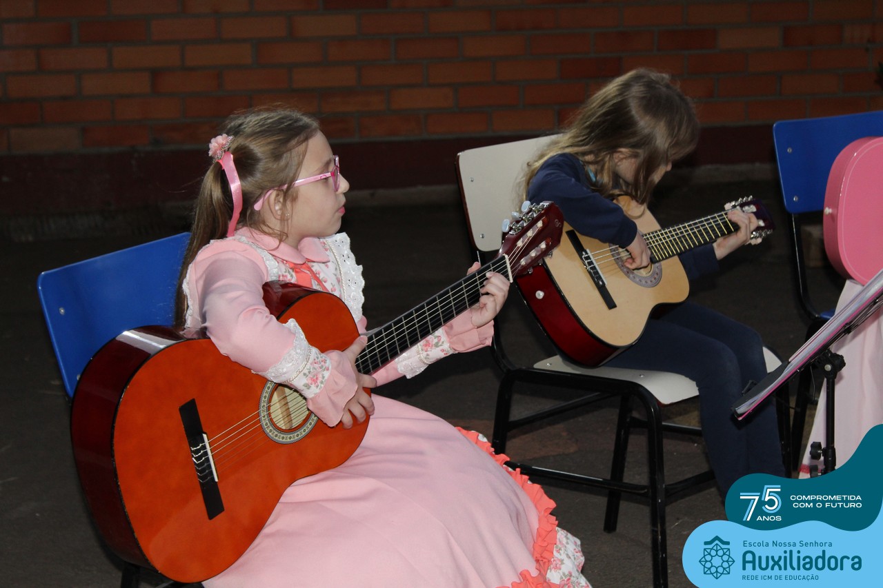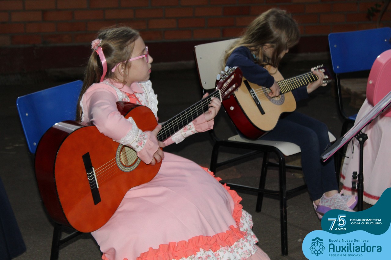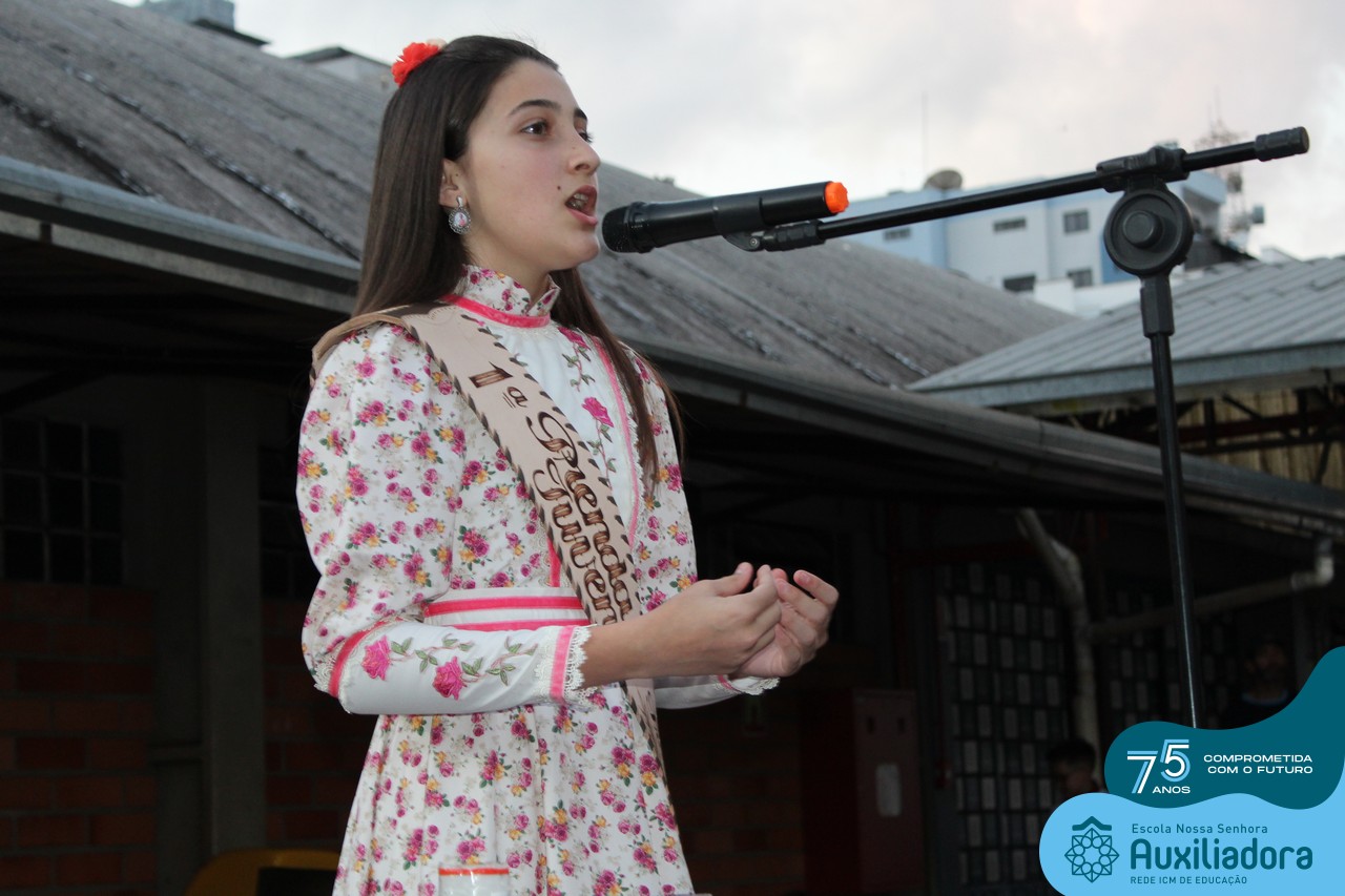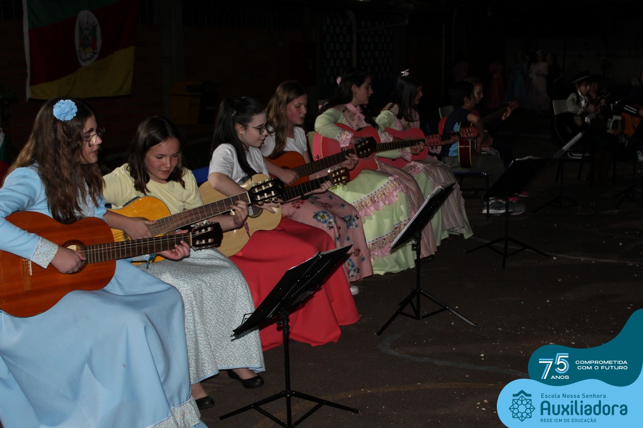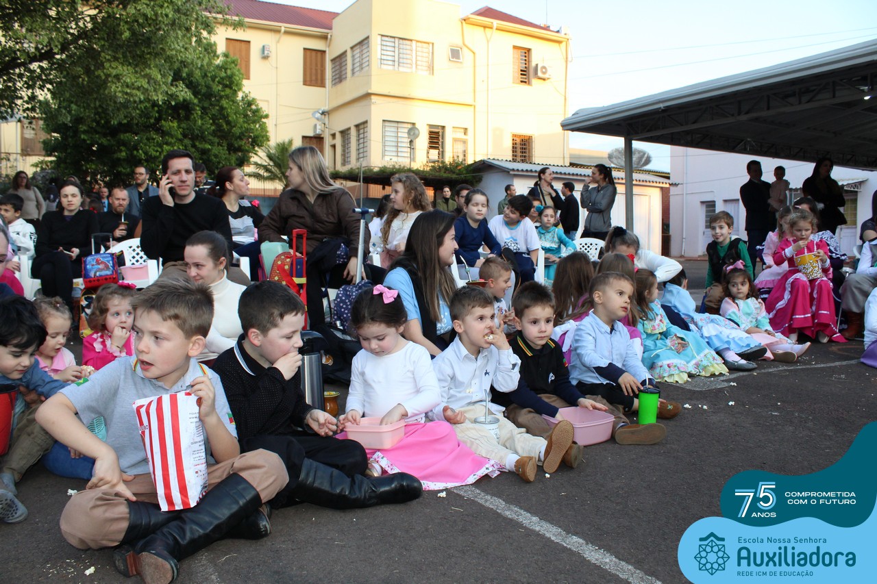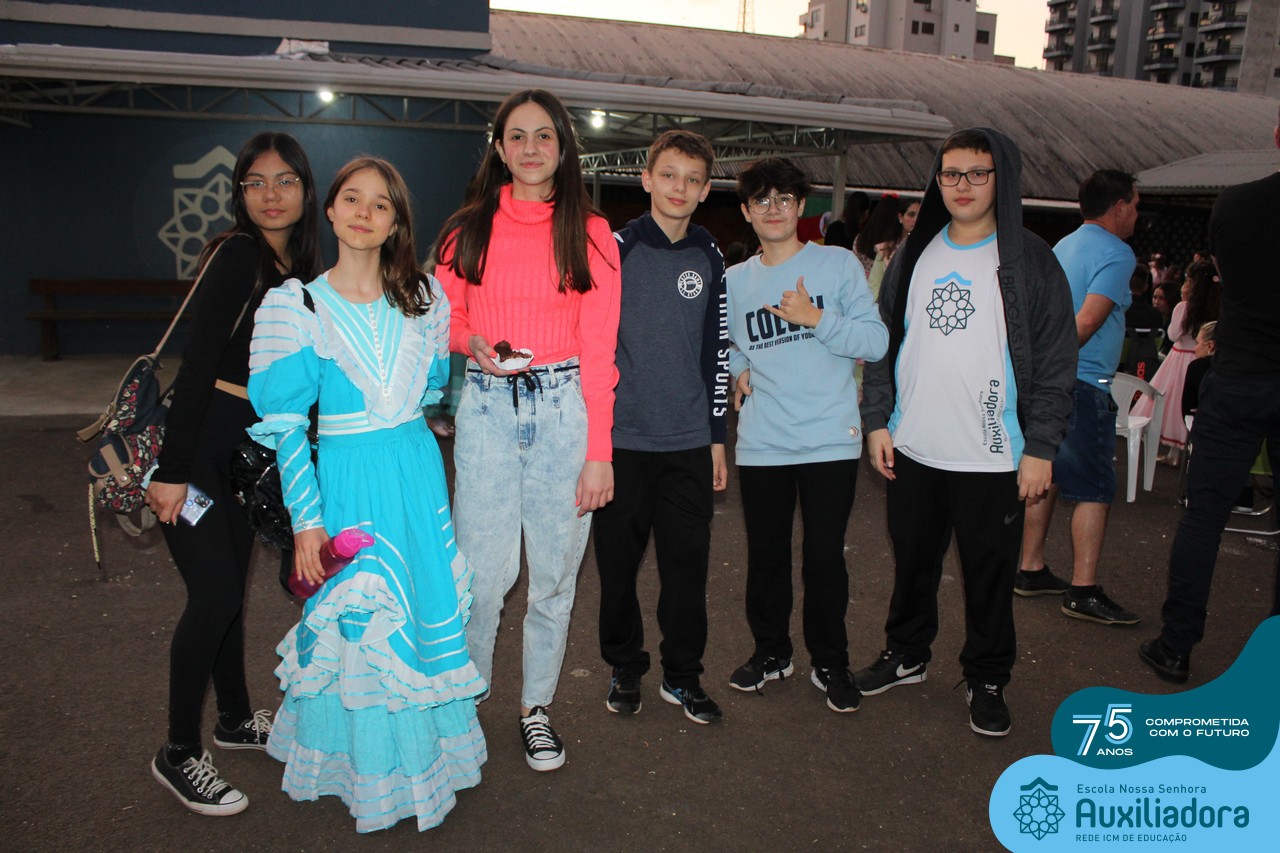Muito chimarrão, diversão, conversa com amigos e também lindas apresentações dos alunos da escola.