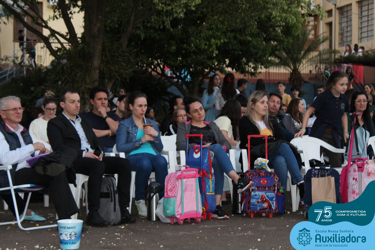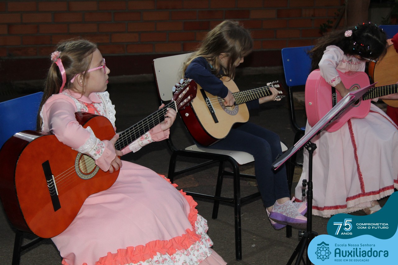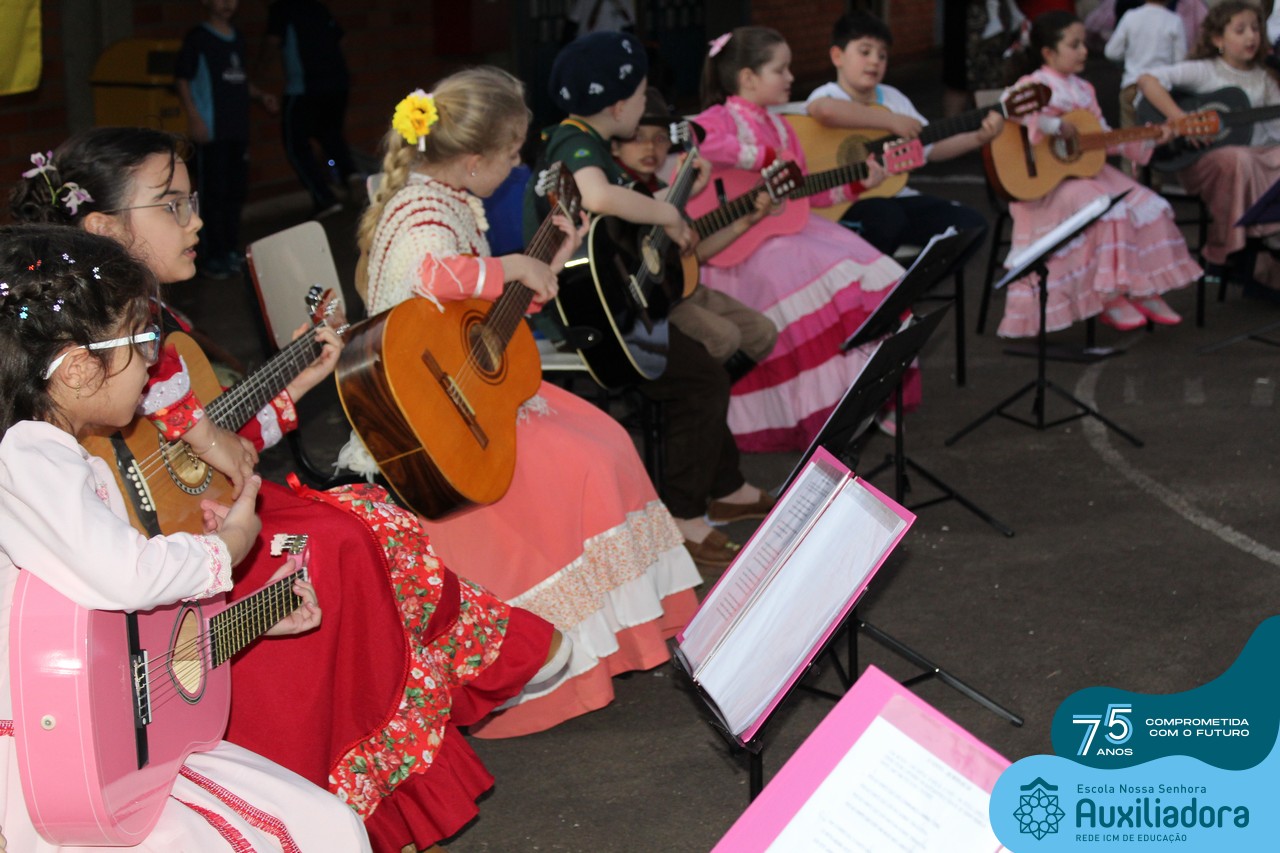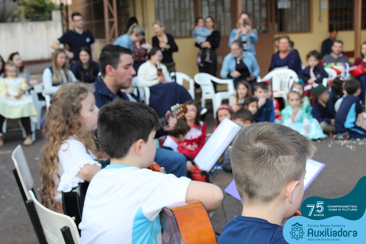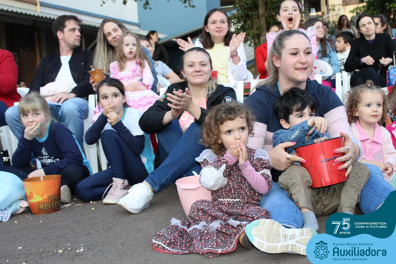 Muito chimarrão, diversão, conversa com amigos e também lindas apresentações dos alunos da escola.