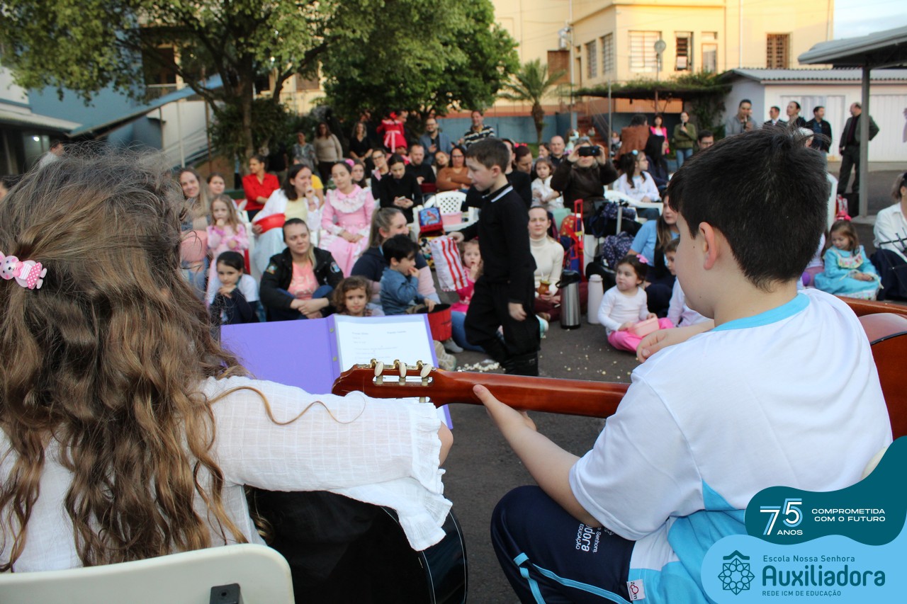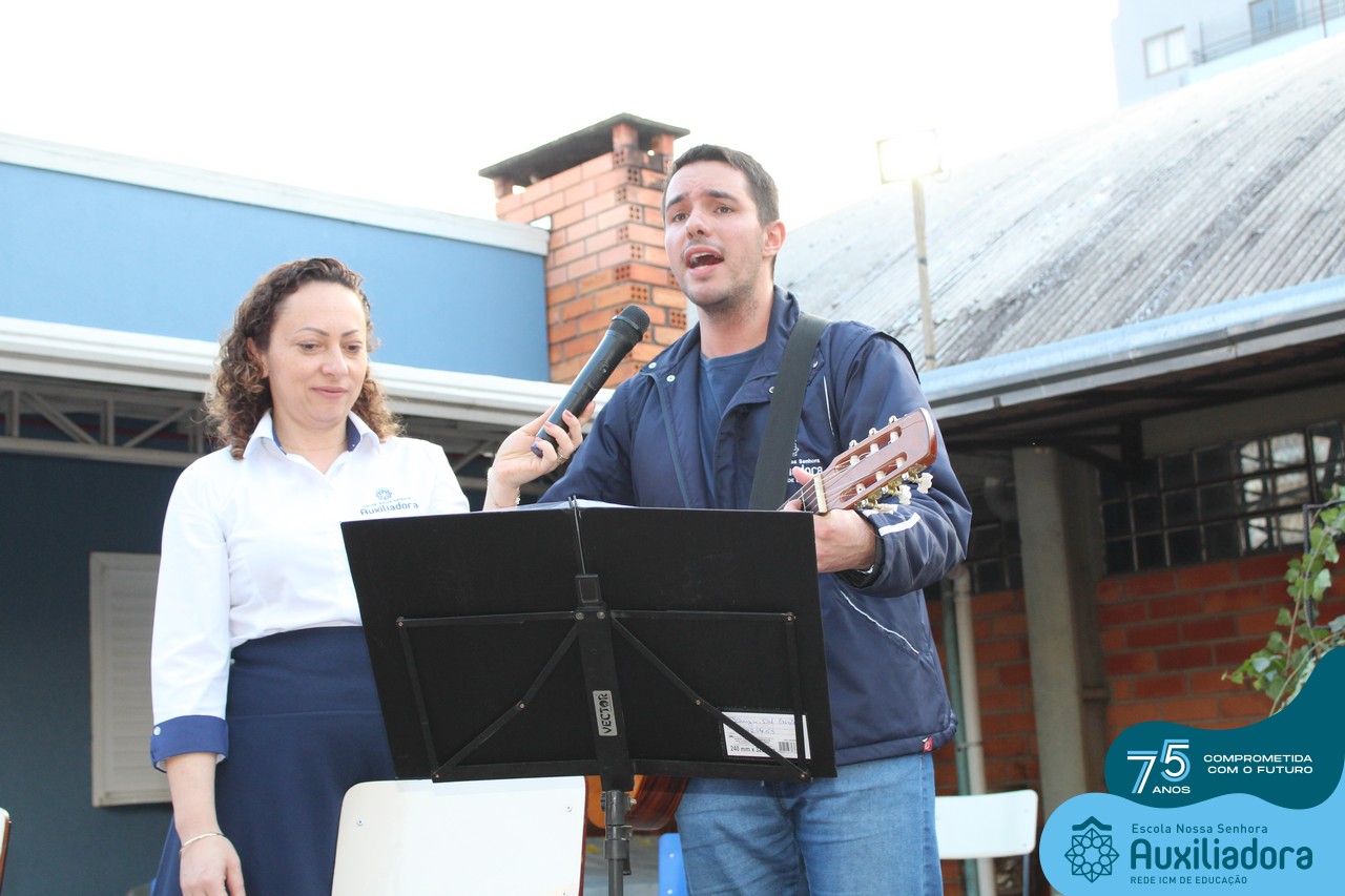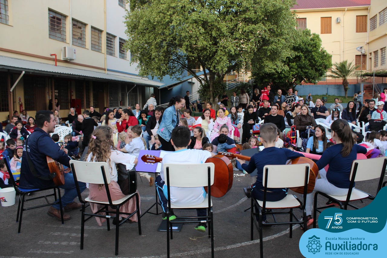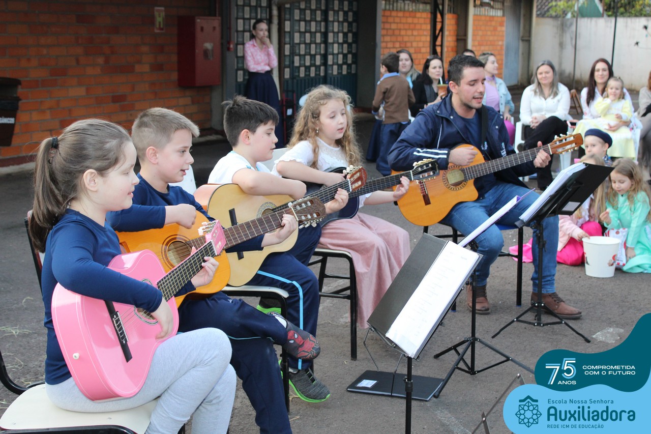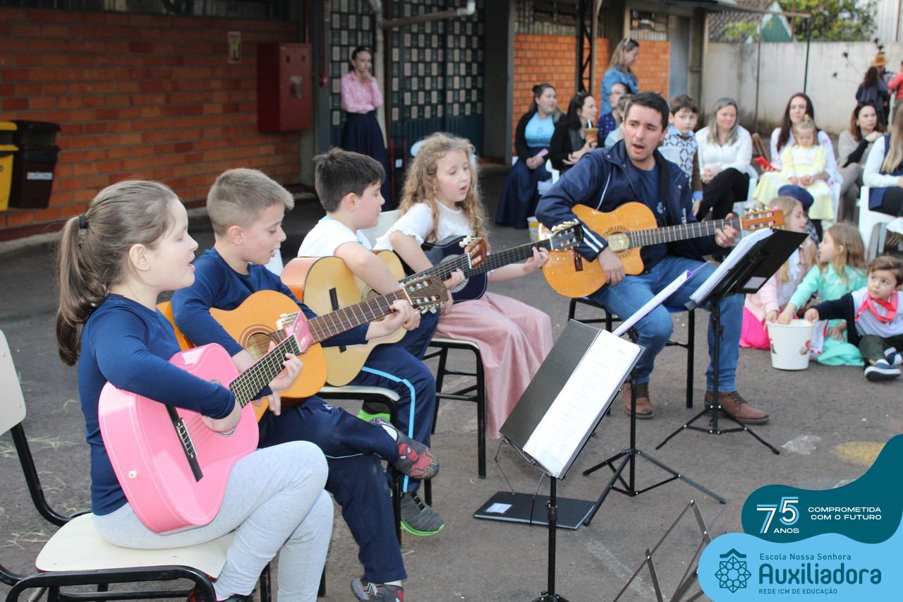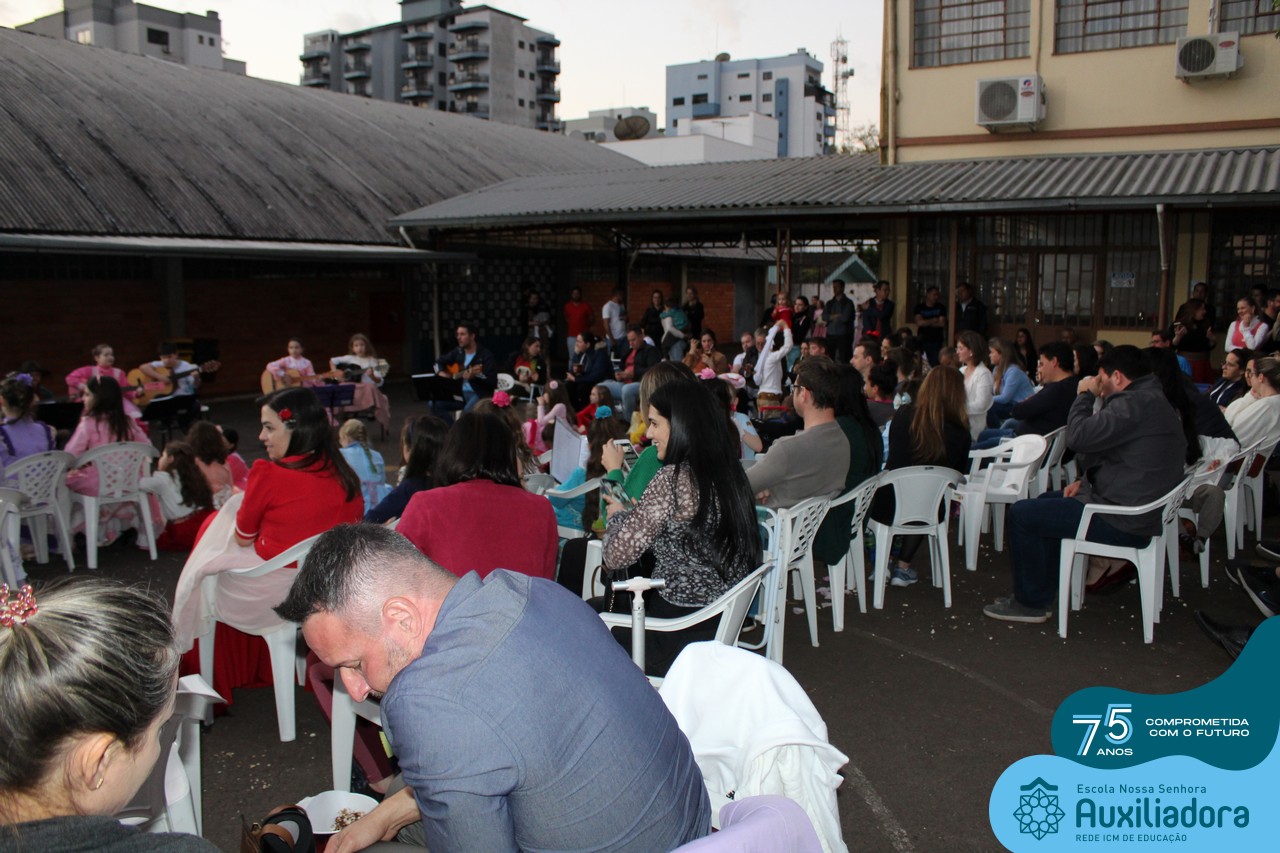 Muito chimarrão, diversão, conversa com amigos e também lindas apresentações dos alunos da escola.