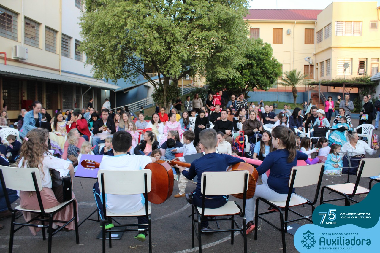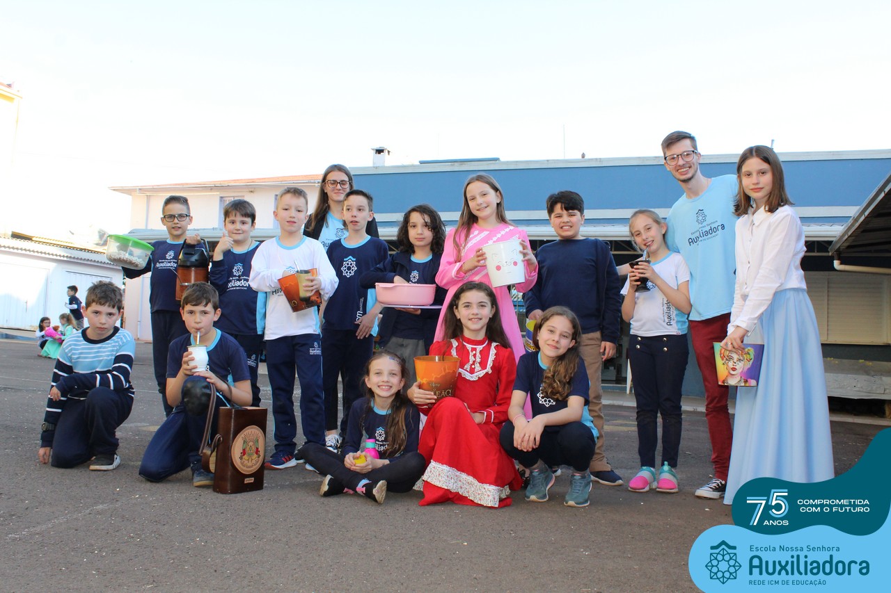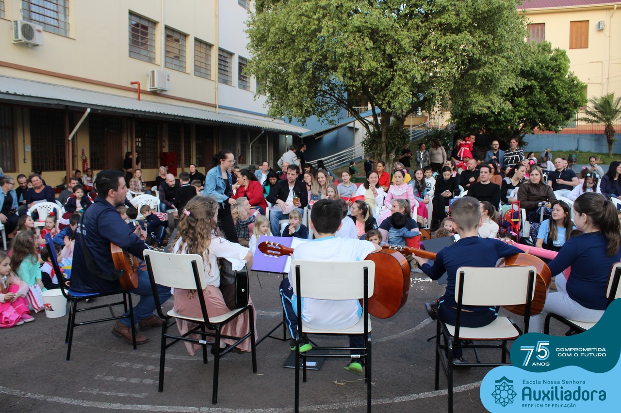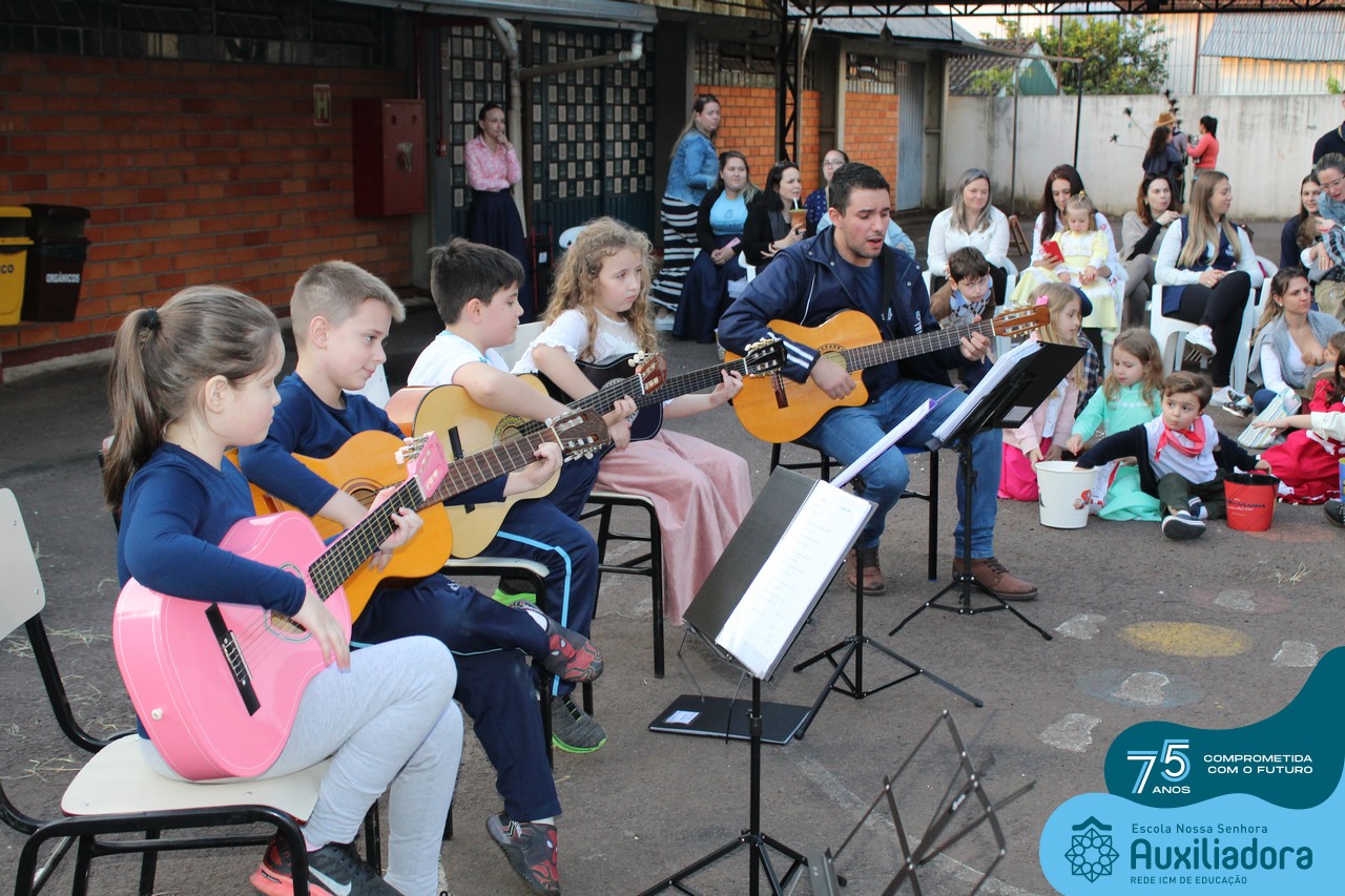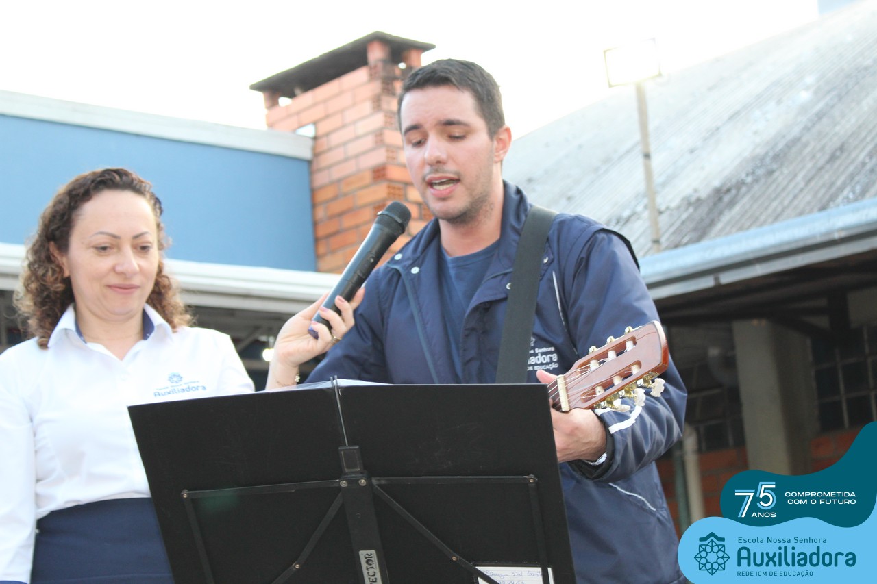 Muito chimarrão, diversão, conversa com amigos e também lindas apresentações dos alunos da escola.