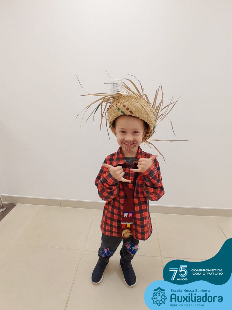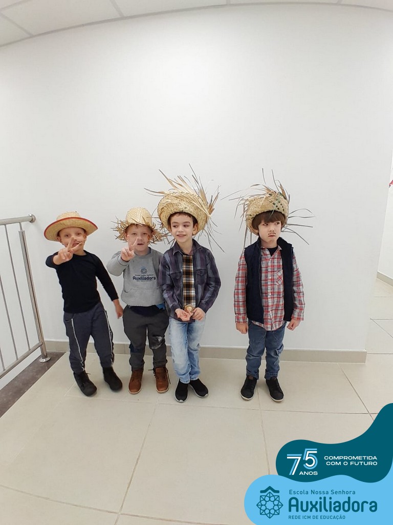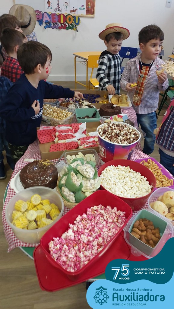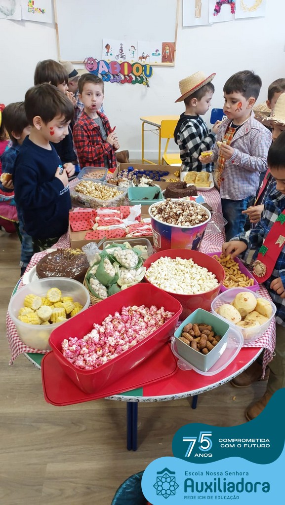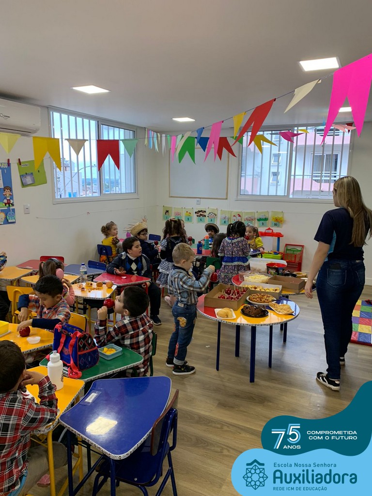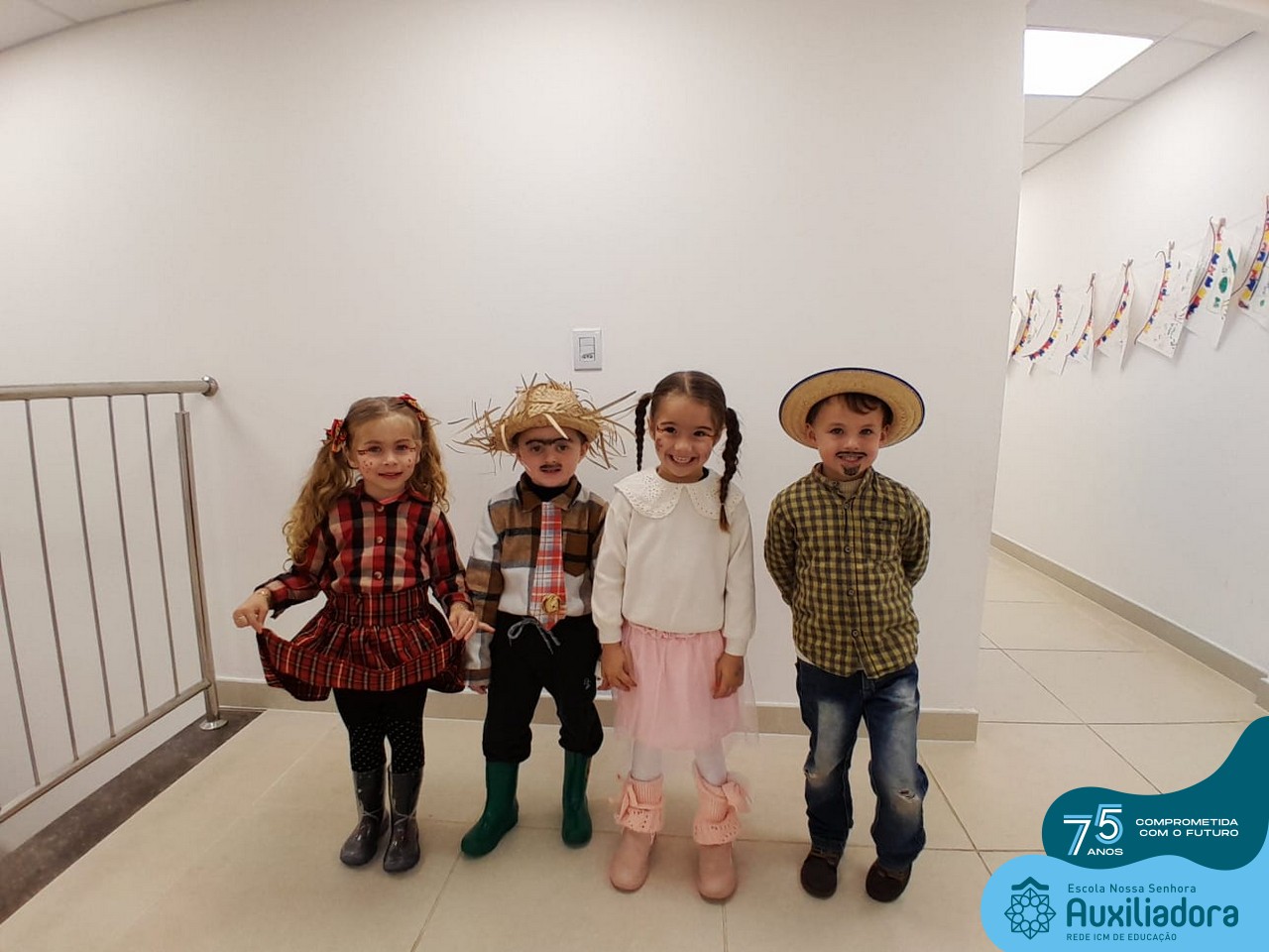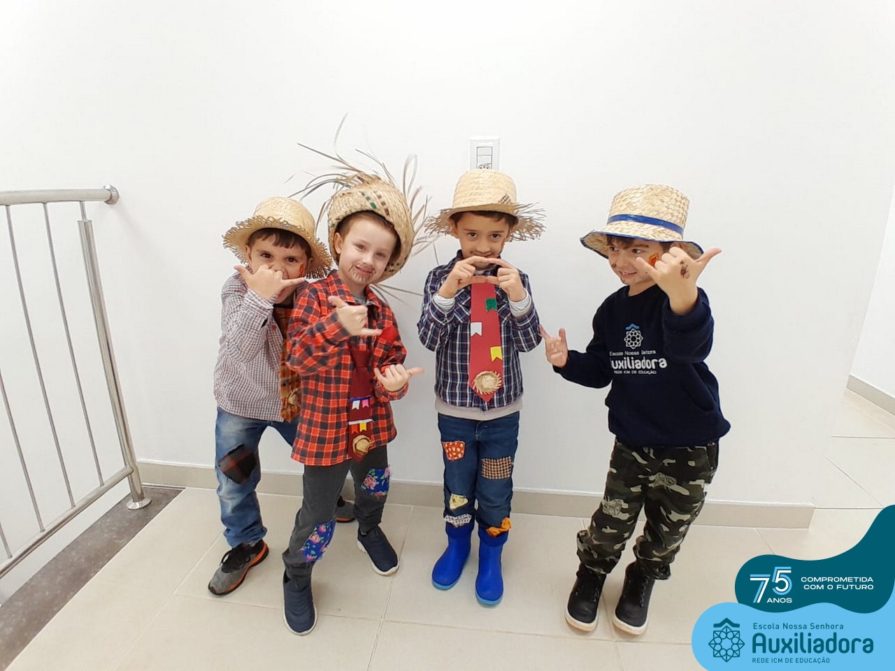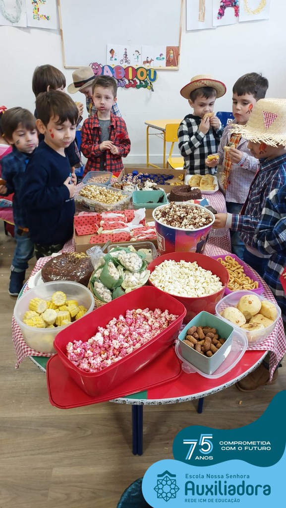 Com o intuito de aprender mais sobre o folclore junino, as crianças realizaram a apresentação das comidas típicas, vestimentas, brincadeiras e músicas. Após este momento, realizamos a confraternização junina na sala de aula e pudemos experimentar as comidas, dançar e brincar com os colegas.
