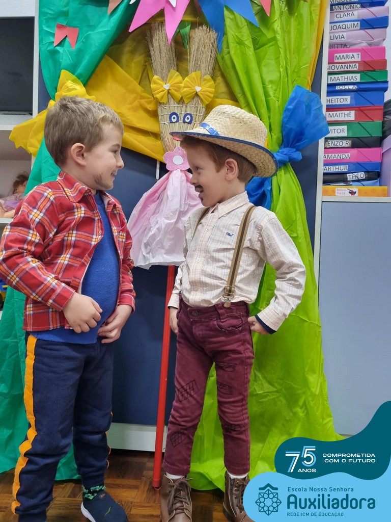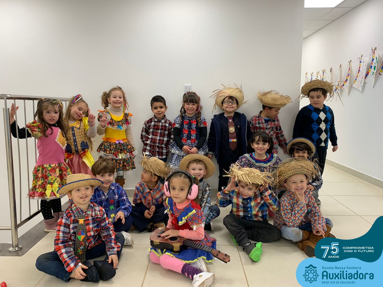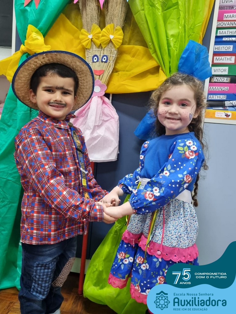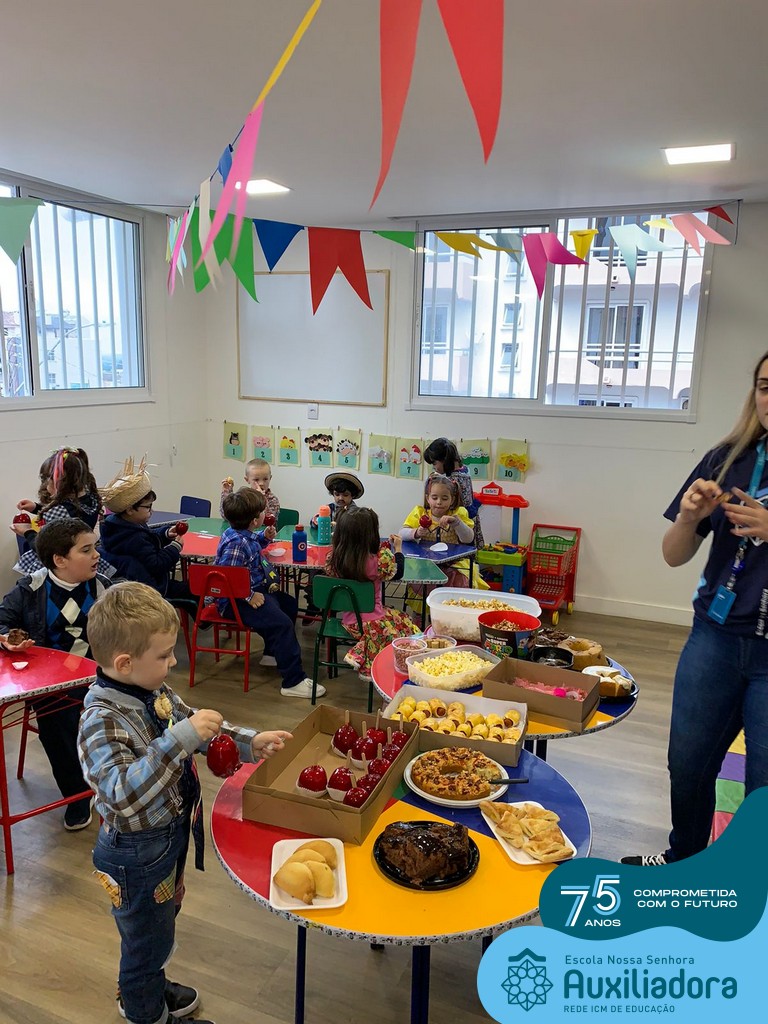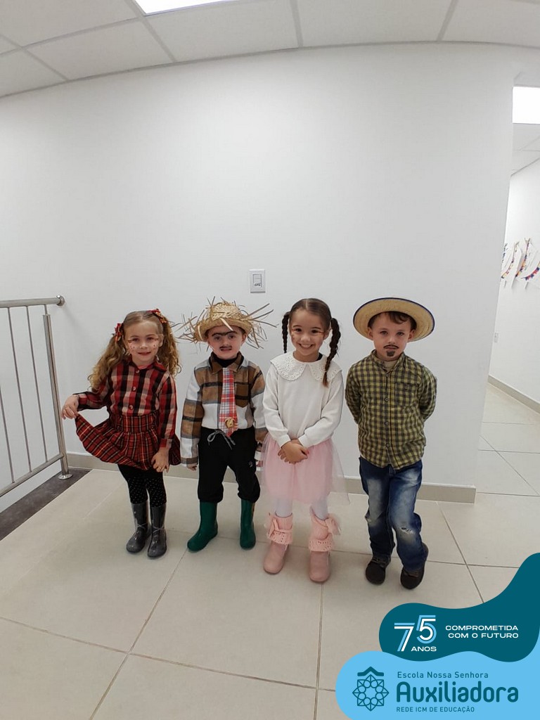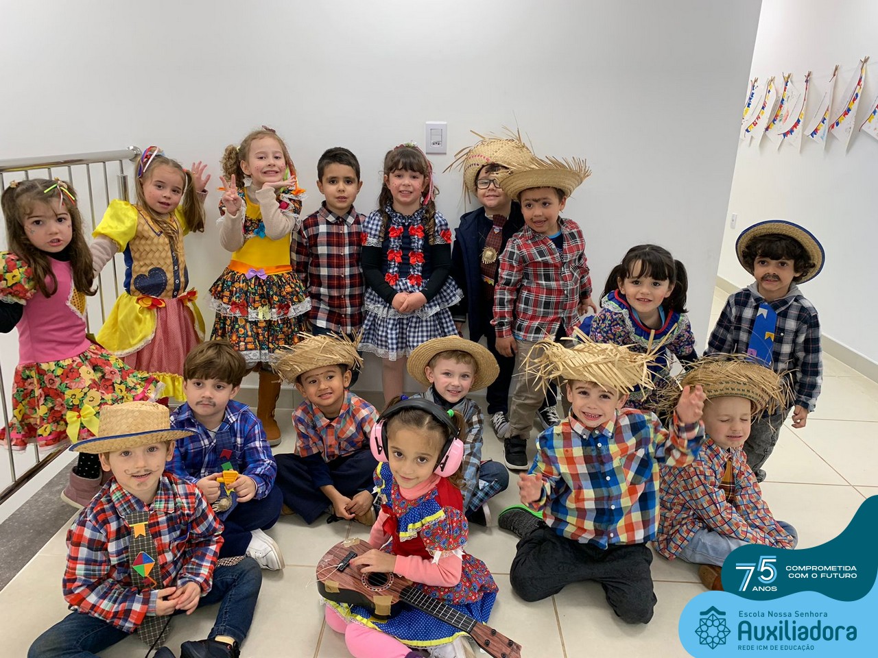 Com o intuito de aprender mais sobre o folclore junino, as crianças realizaram a apresentação das comidas típicas, vestimentas, brincadeiras e músicas. Após este momento, realizamos a confraternização junina na sala de aula e pudemos experimentar as comidas, dançar e brincar com os colegas.