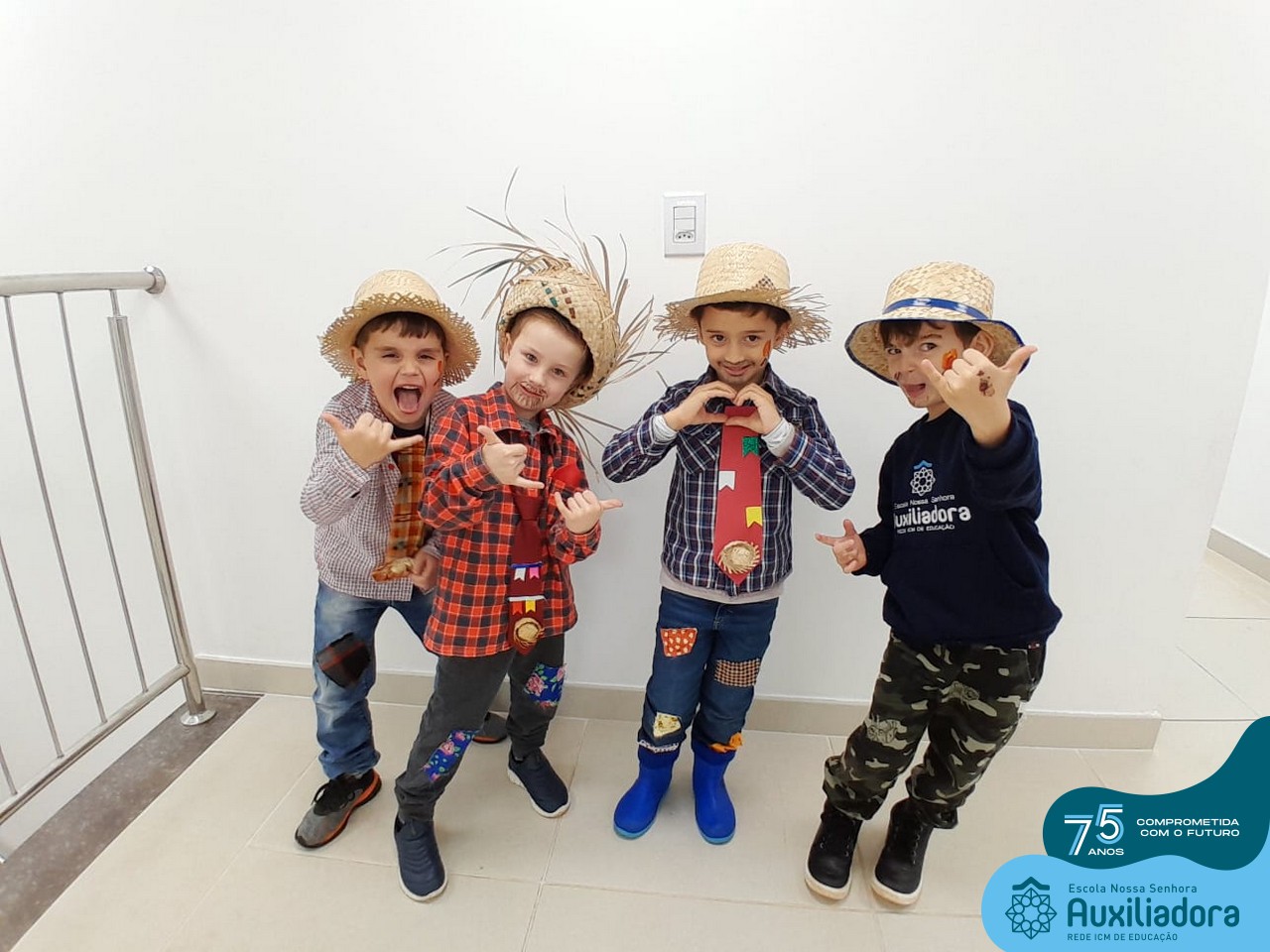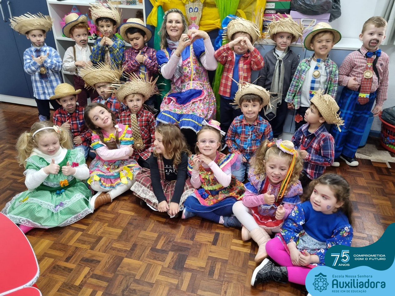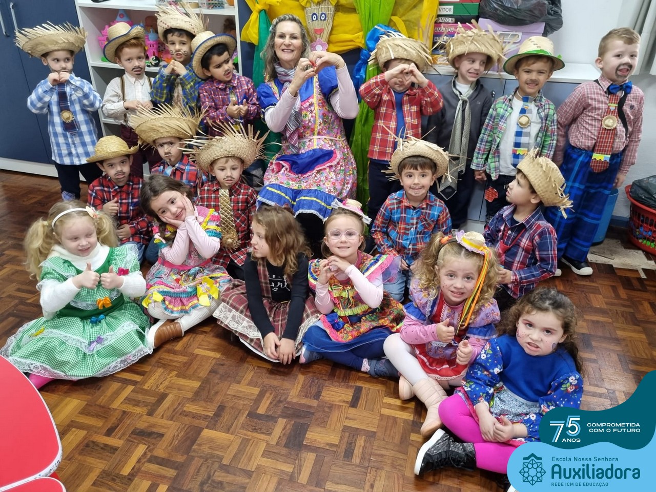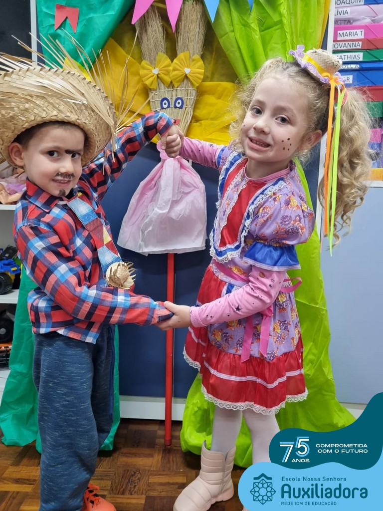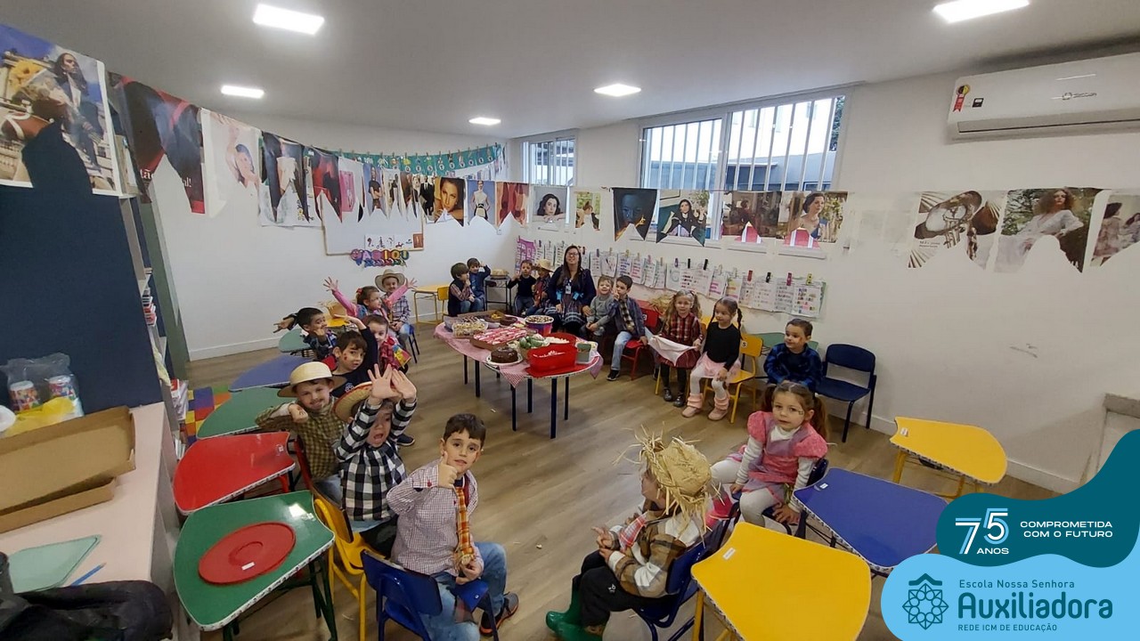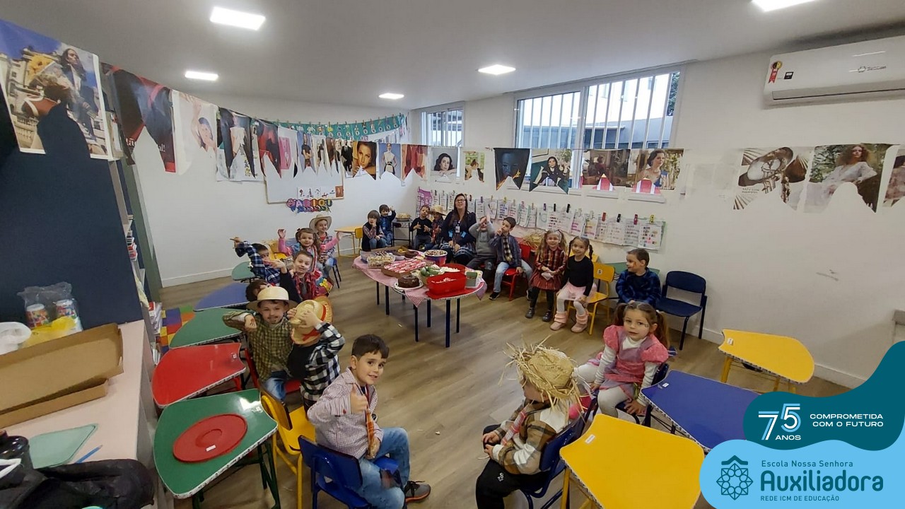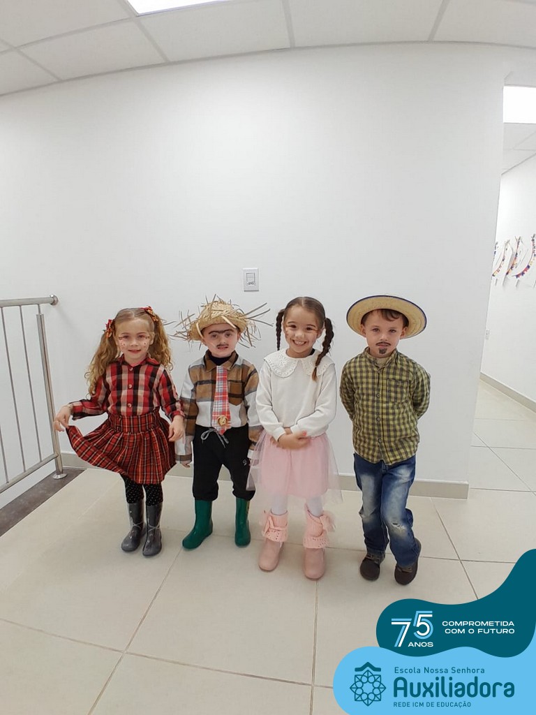 Com o intuito de aprender mais sobre o folclore junino, as crianças realizaram a apresentação das comidas típicas, vestimentas, brincadeiras e músicas. Após este momento, realizamos a confraternização junina na sala de aula e pudemos experimentar as comidas, dançar e brincar com os colegas.