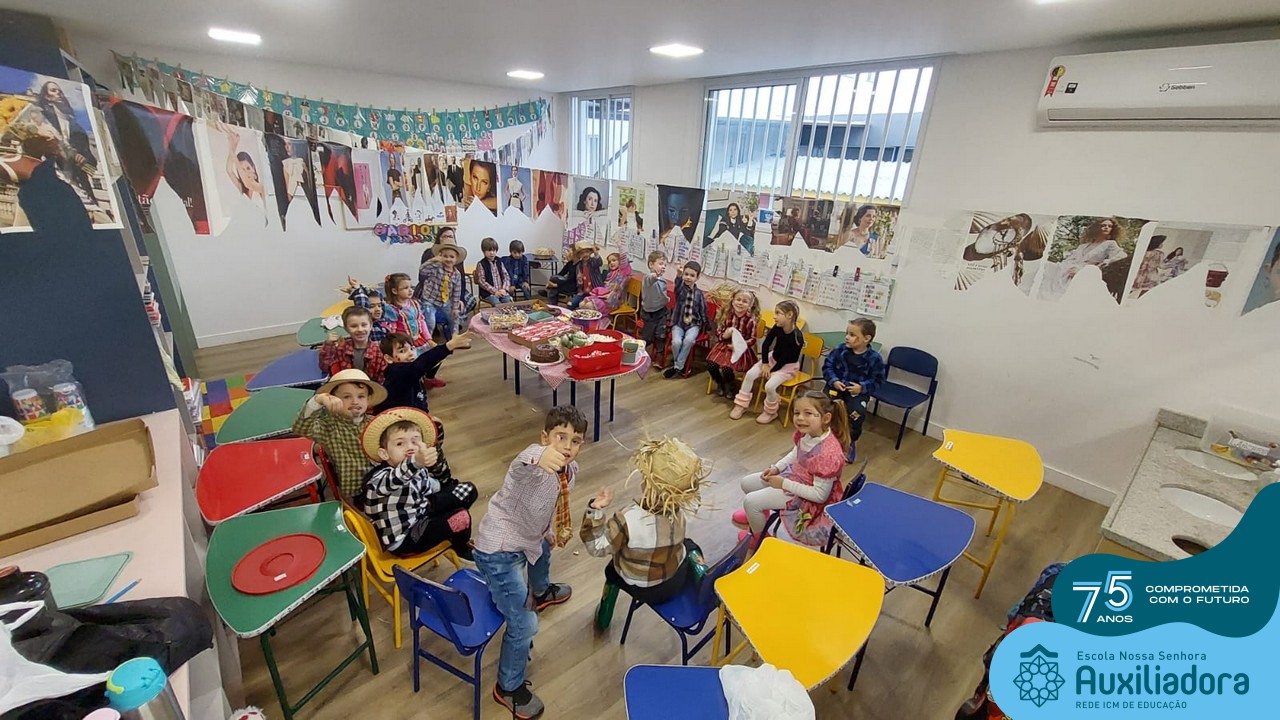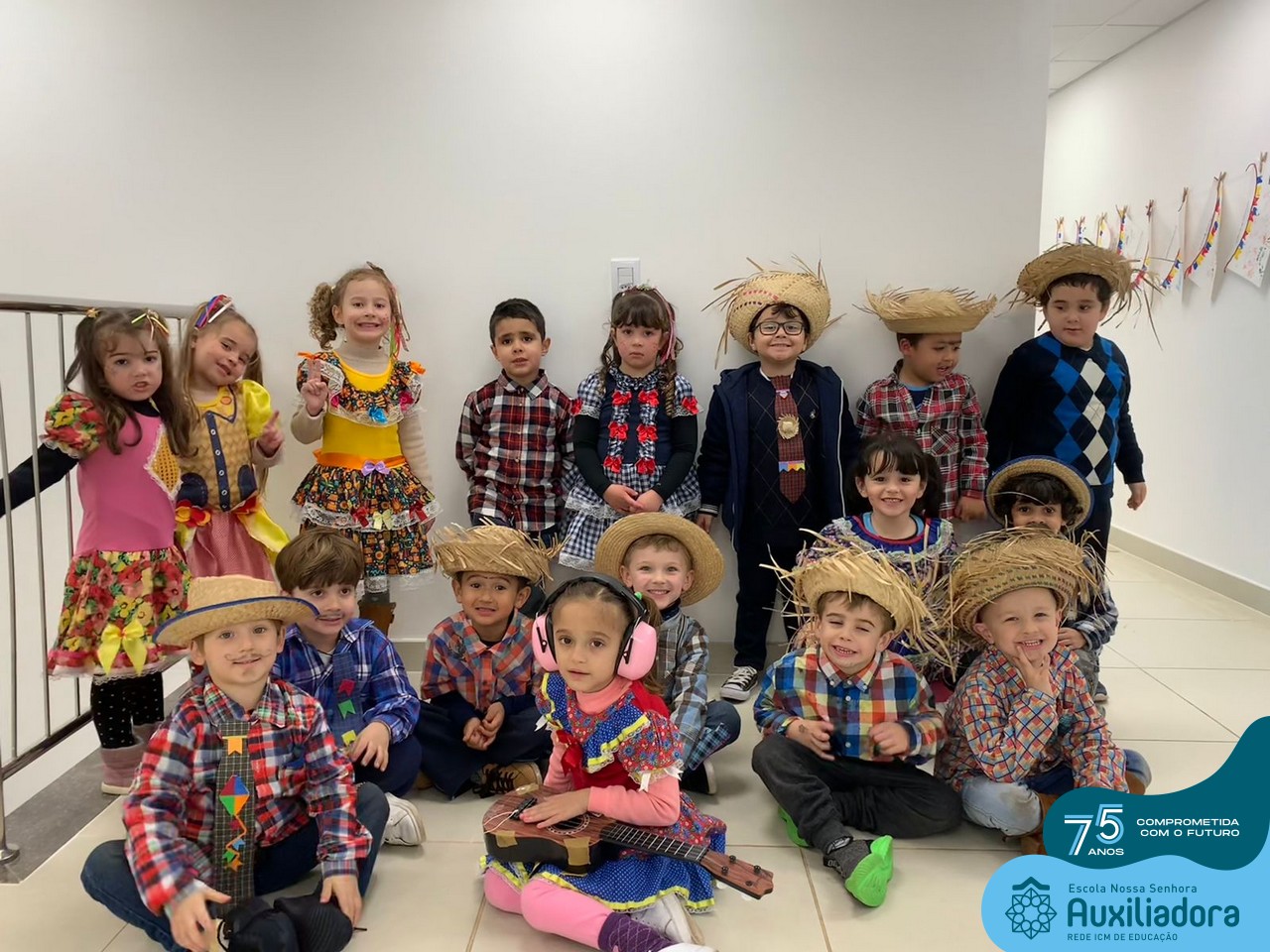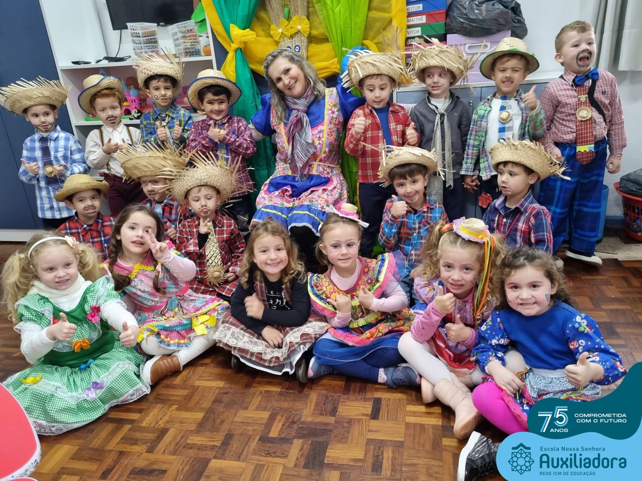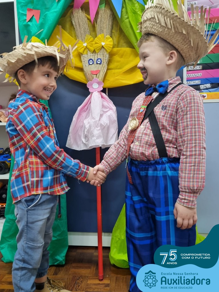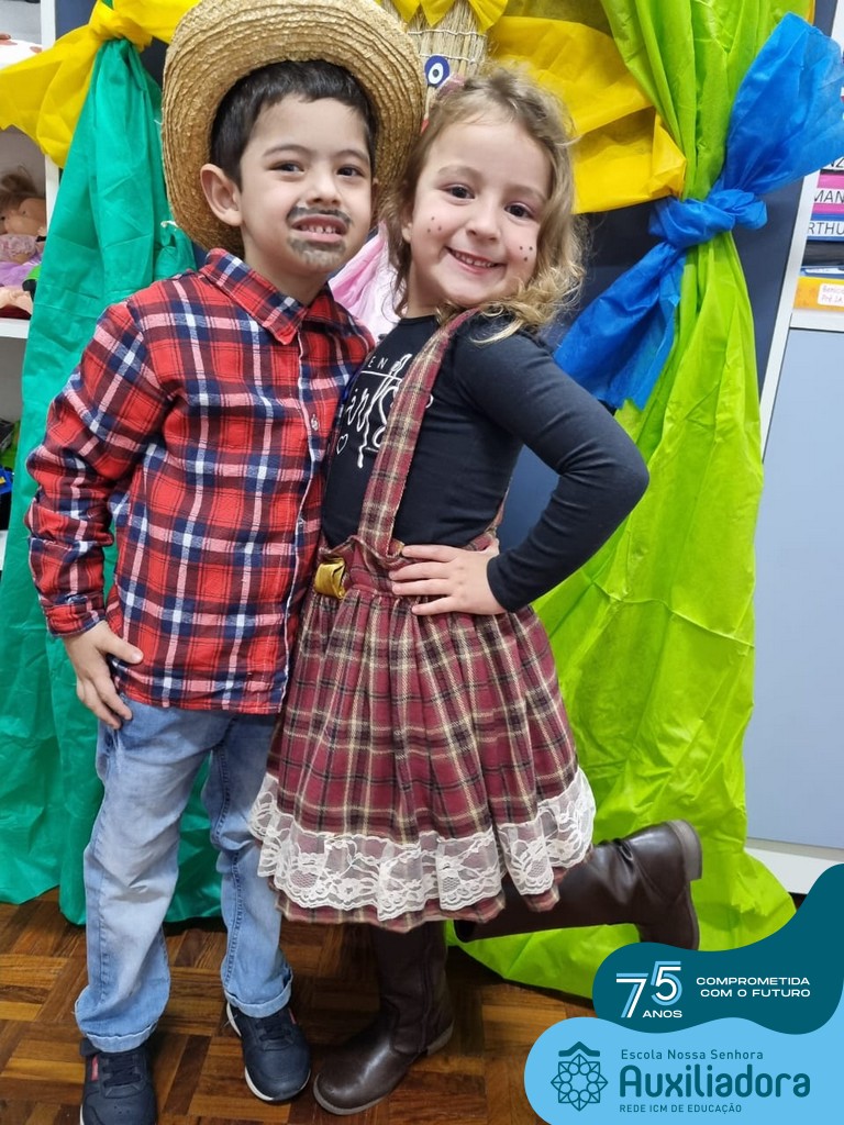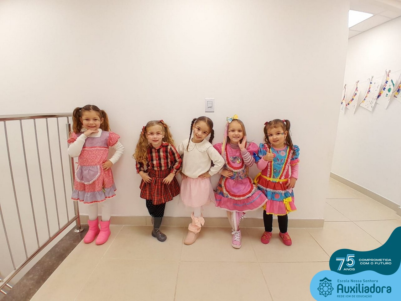Com o intuito de aprender mais sobre o folclore junino, as crianças realizaram a apresentação das comidas típicas, vestimentas, brincadeiras e músicas. Após este momento, realizamos a confraternização junina na sala de aula e pudemos experimentar as comidas, dançar e brincar com os colegas.