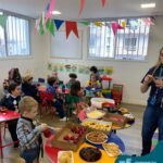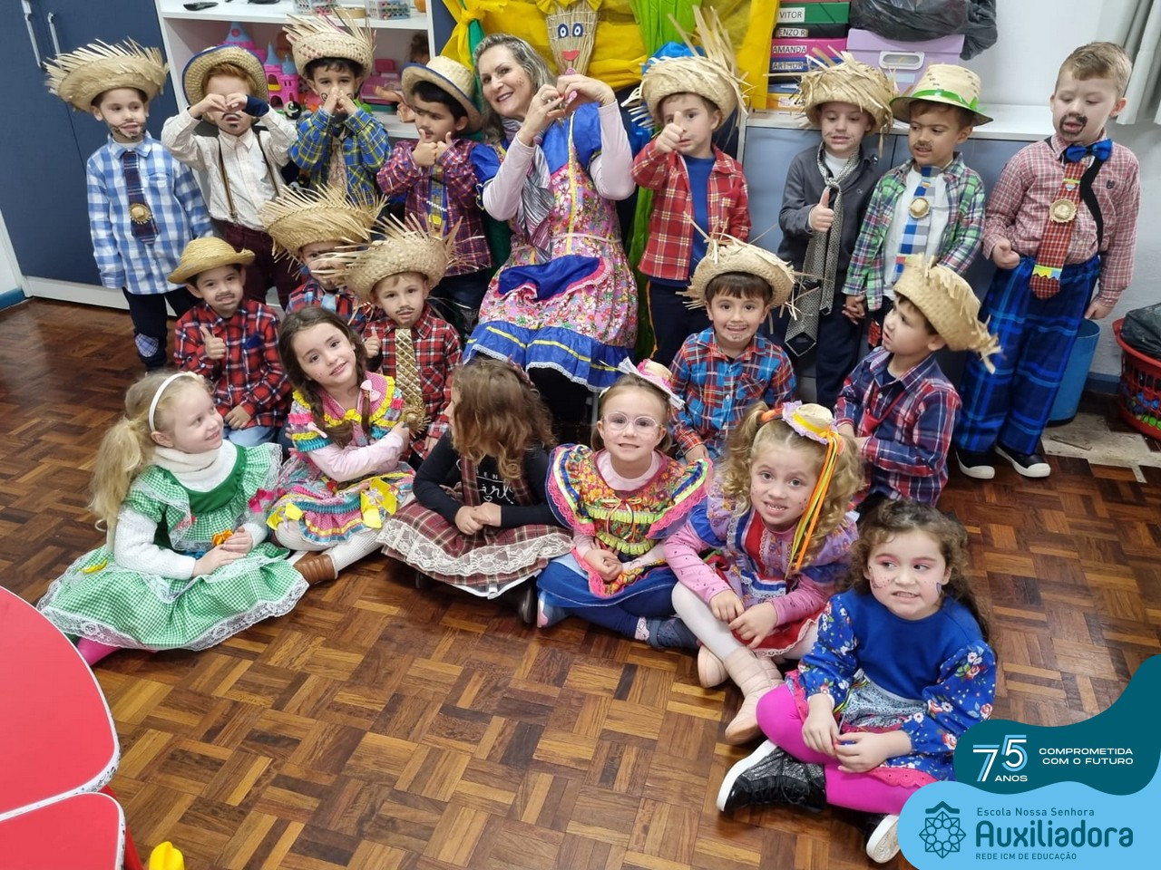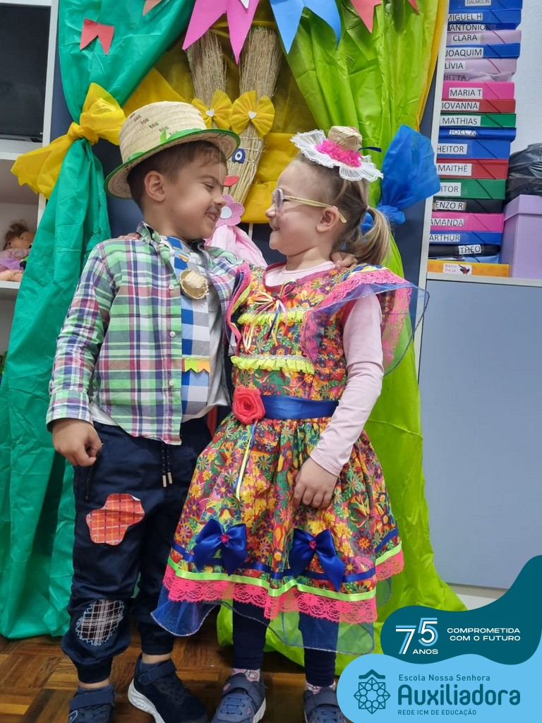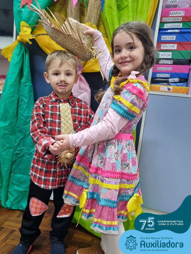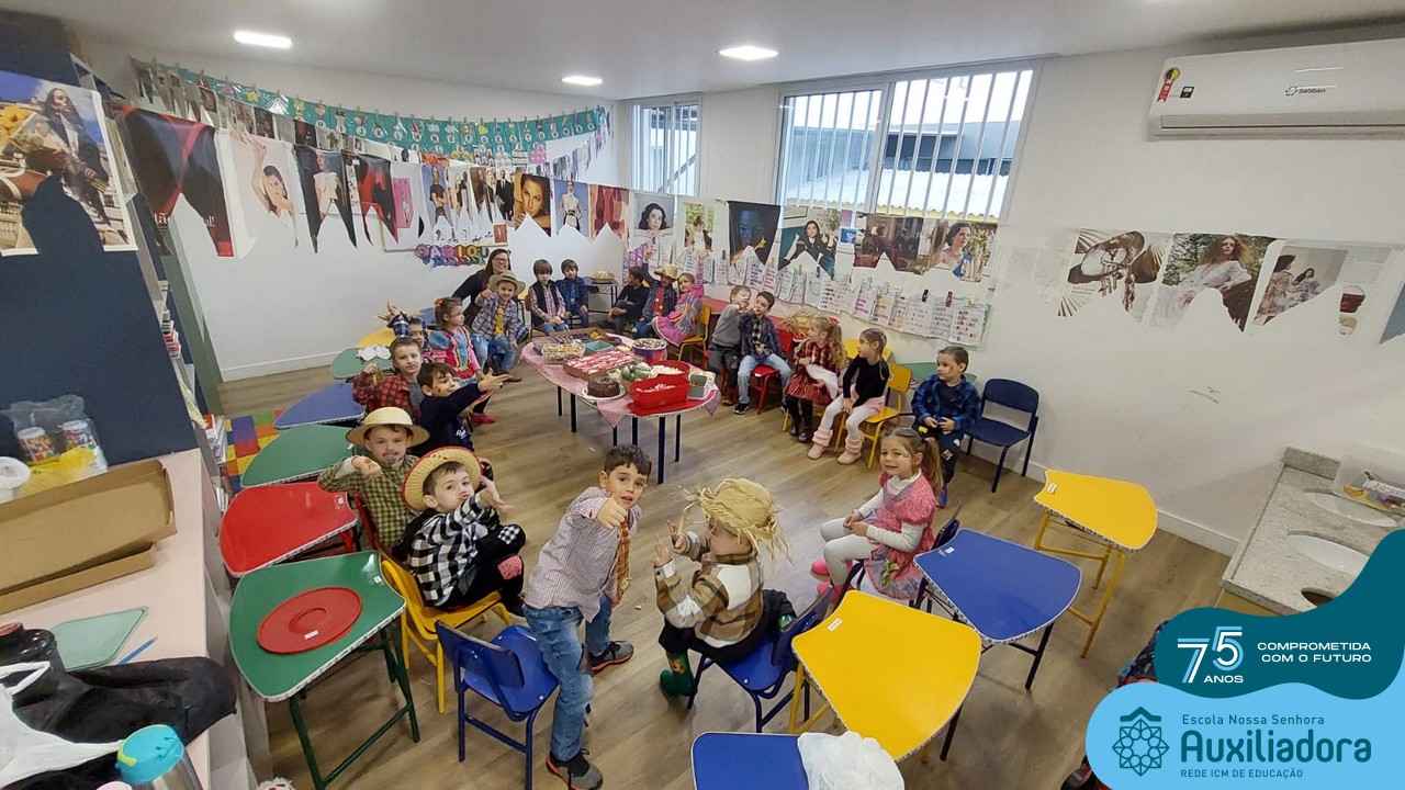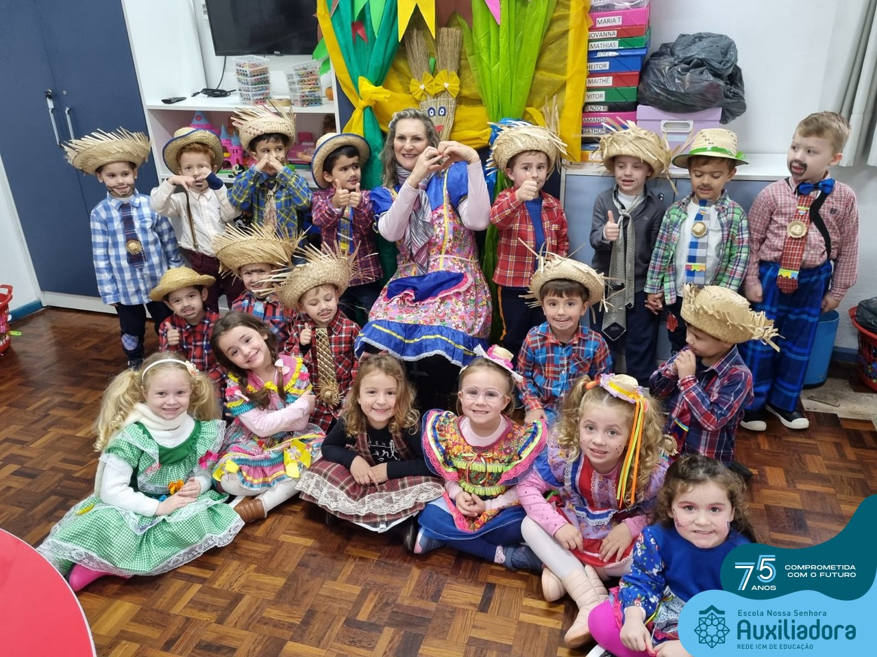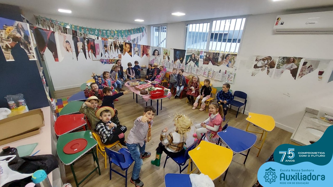 Com o intuito de aprender mais sobre o folclore junino, as crianças realizaram a apresentação das comidas típicas, vestimentas, brincadeiras e músicas. Após este momento, realizamos a confraternização junina na sala de aula e pudemos experimentar as comidas, dançar e brincar com os colegas.