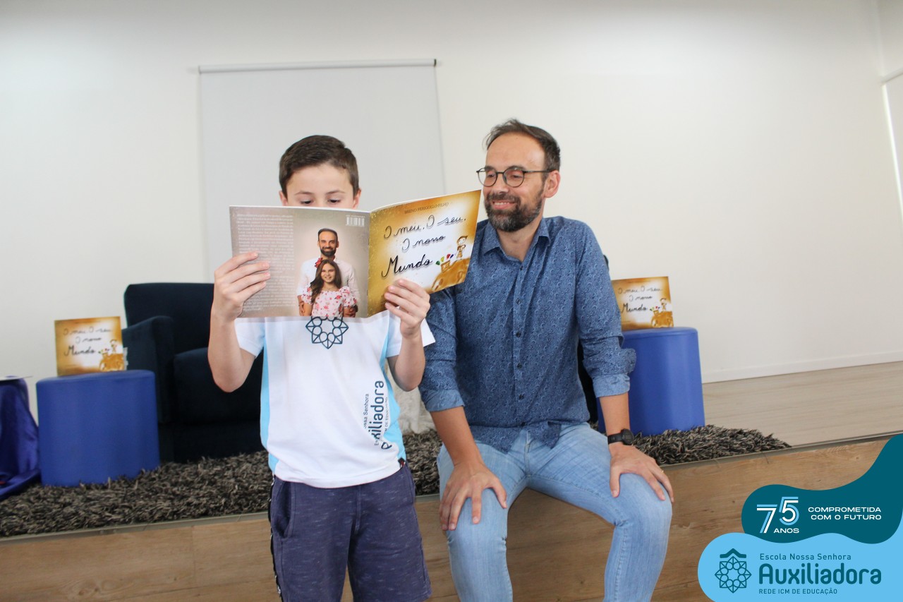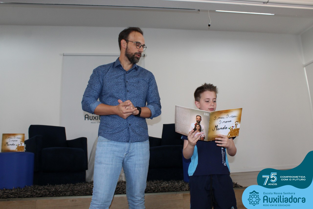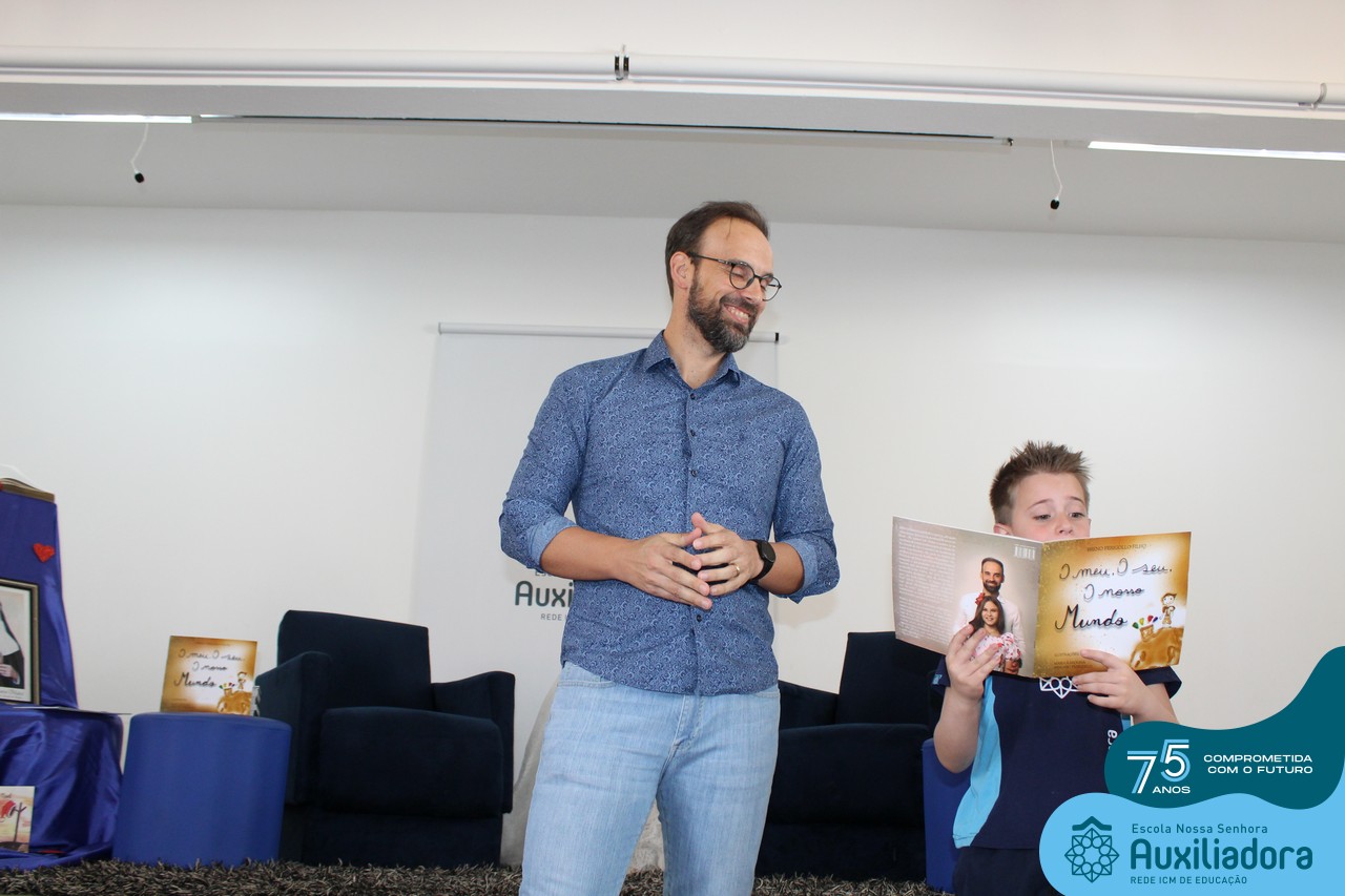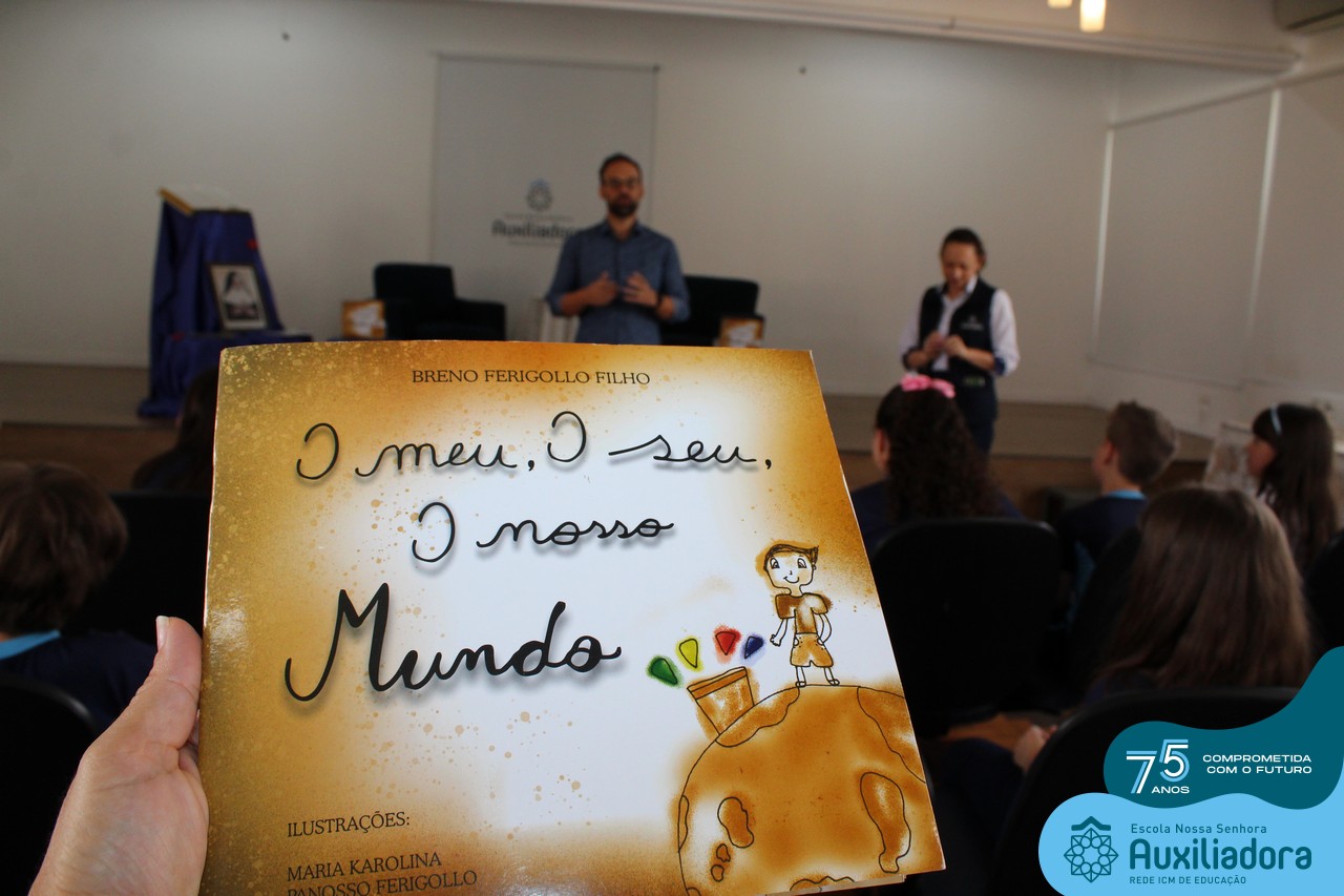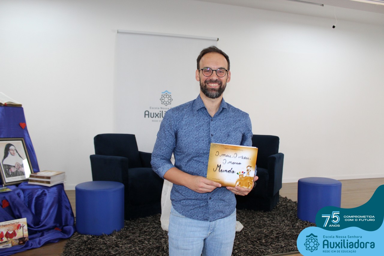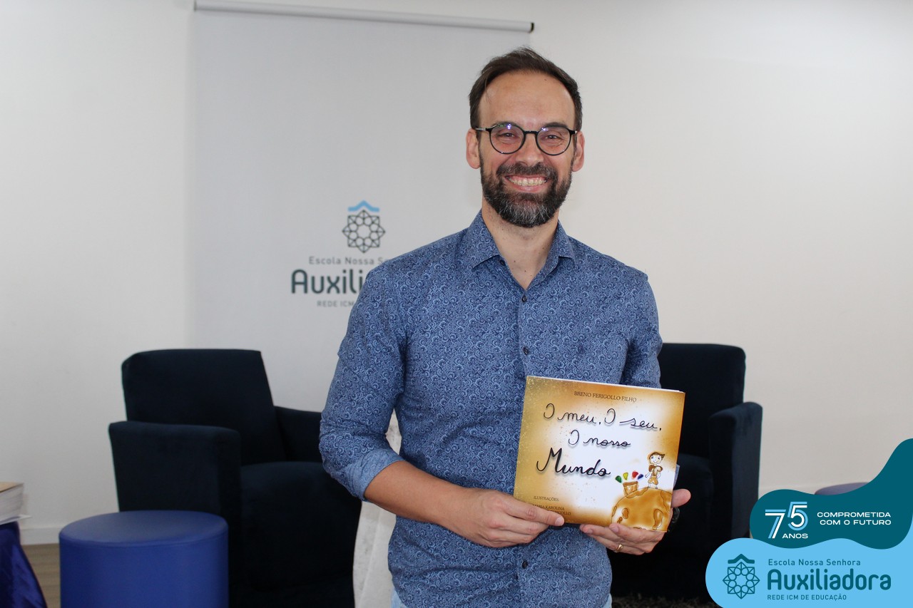 Foi com muita alegria, orgulho e gratidão que recebemos o Autor, ex-aluno e pai Breno Ferigollo Filho para o lançamento de seu novo livro “O meu, o seu, o nosso mundo”. O lançamento aconteceu no auditório da escola no dia 10/11.