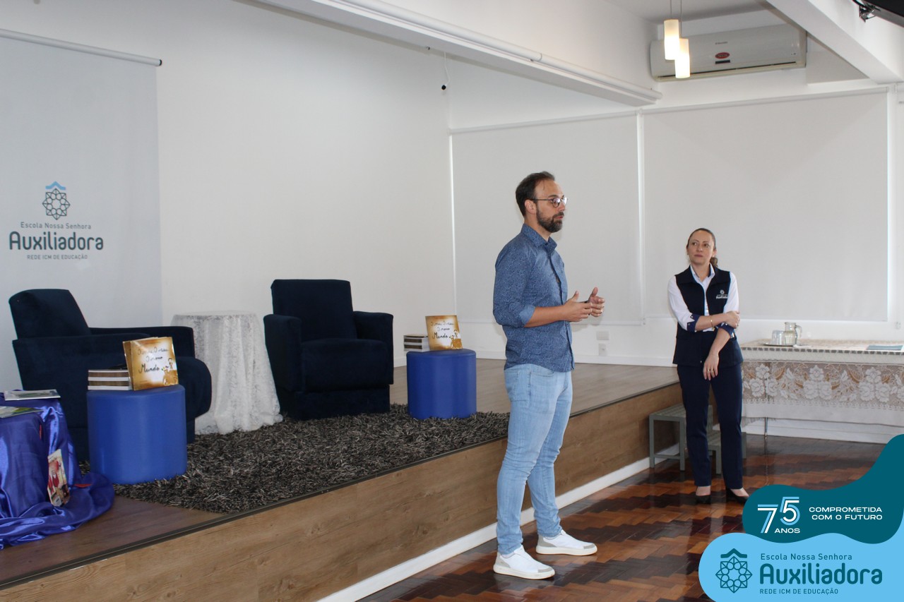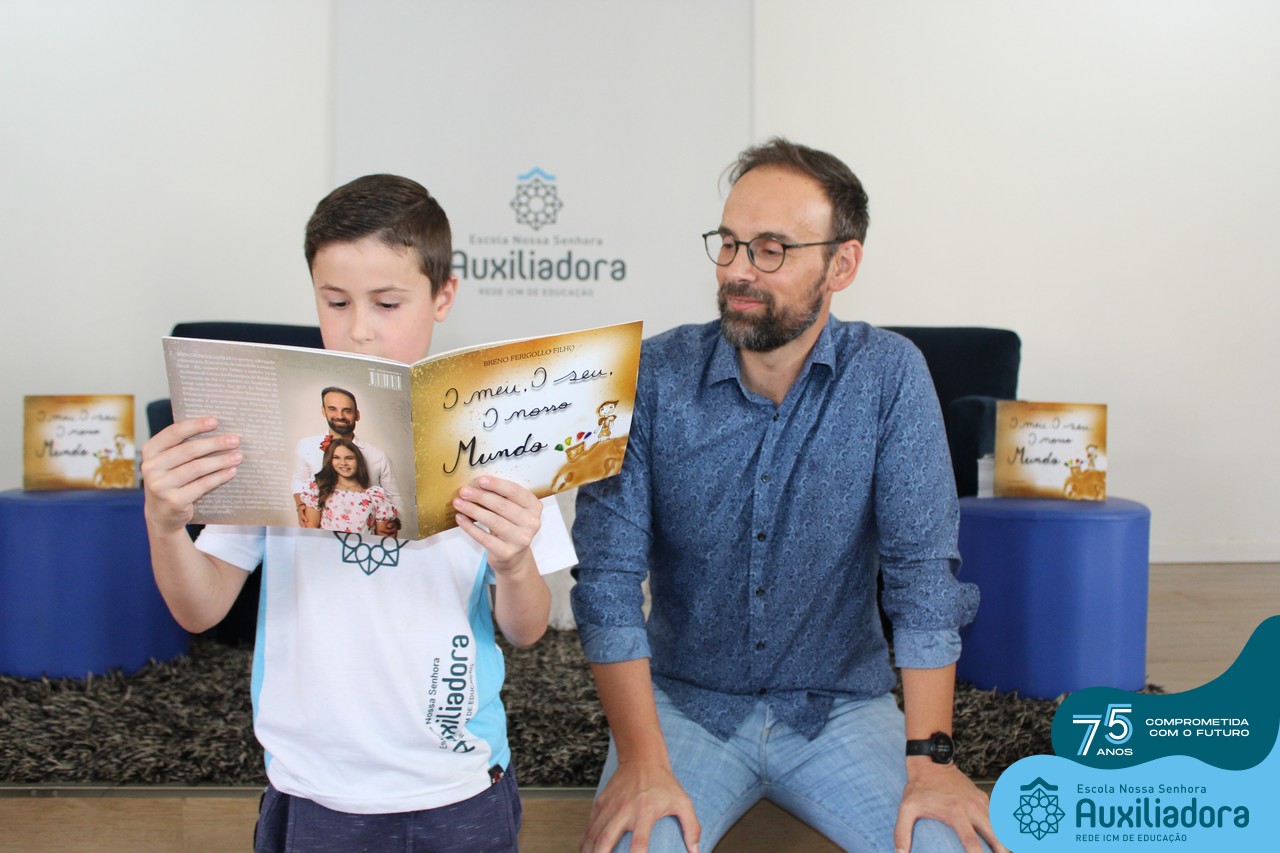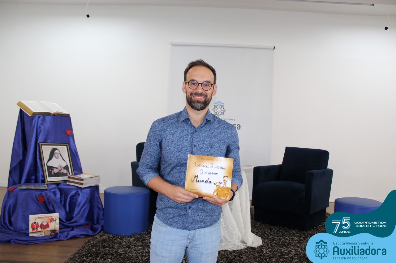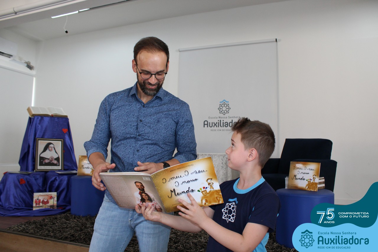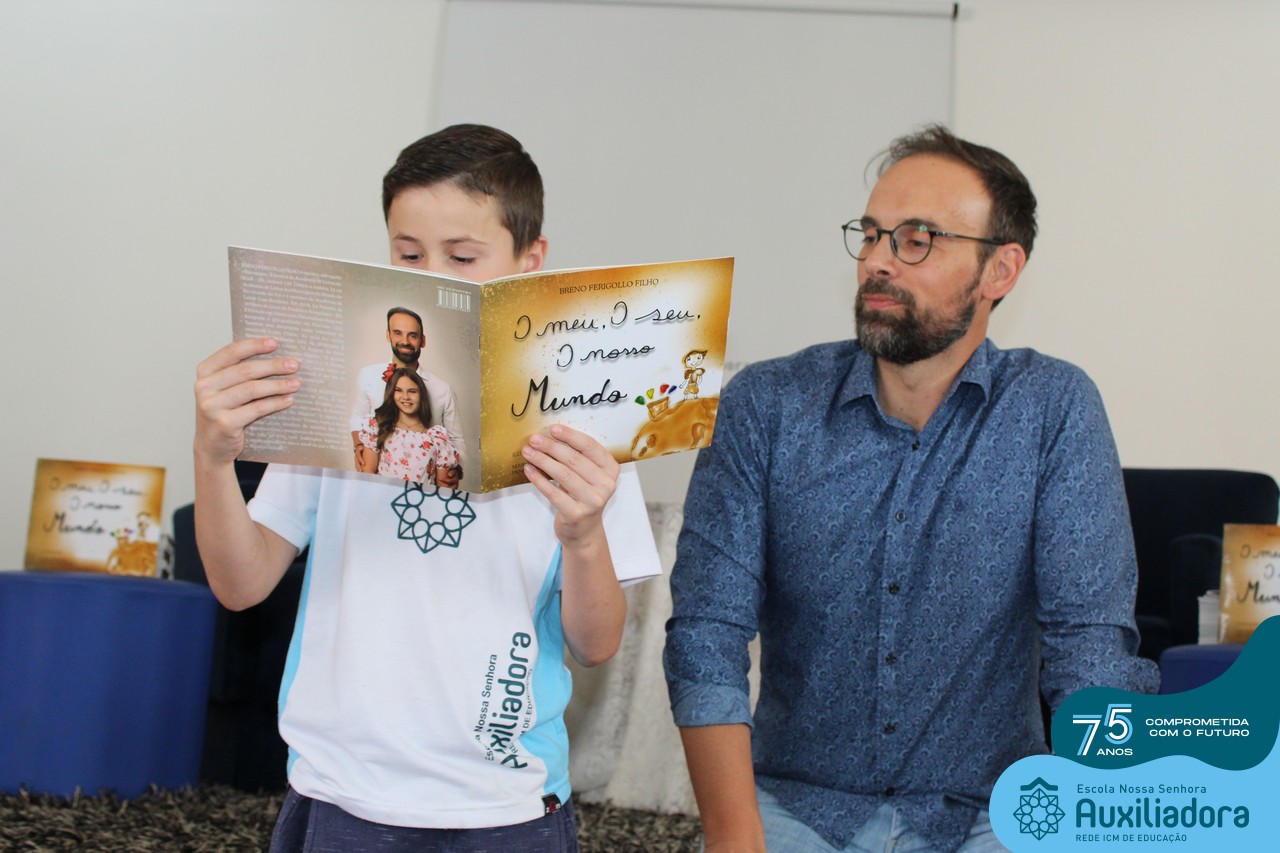Foi com muita alegria, orgulho e gratidão que recebemos o Autor, ex-aluno e pai Breno Ferigollo Filho para o lançamento de seu novo livro “O meu, o seu, o nosso mundo”. O lançamento aconteceu no auditório da escola no dia 10/11.