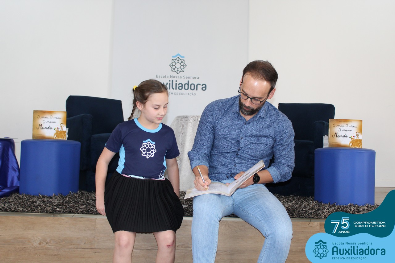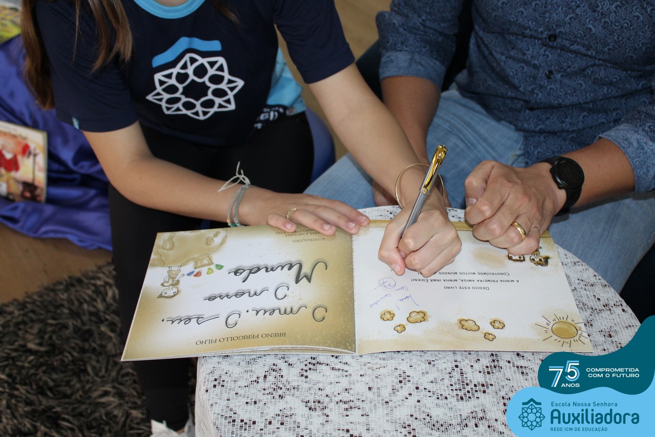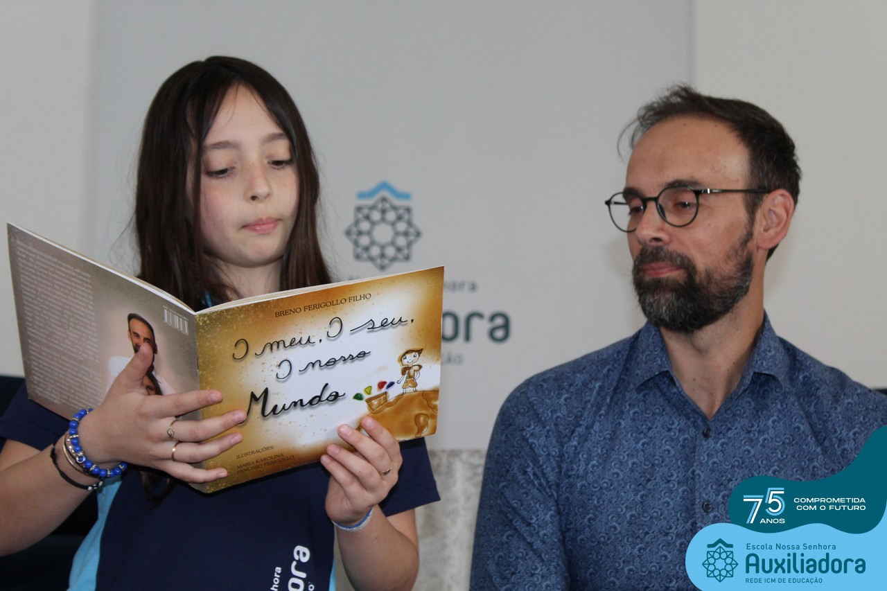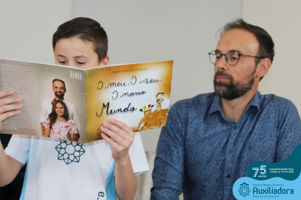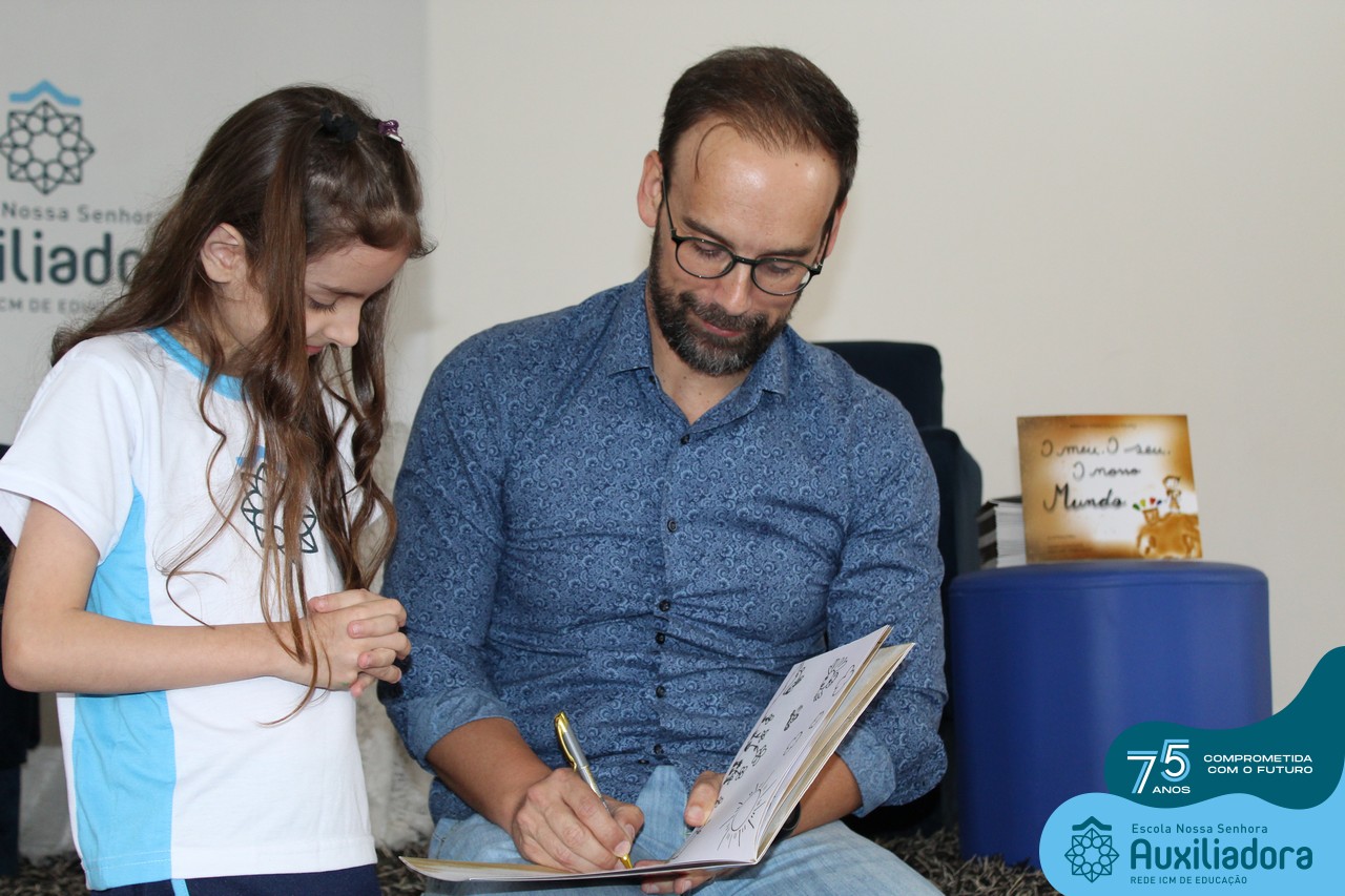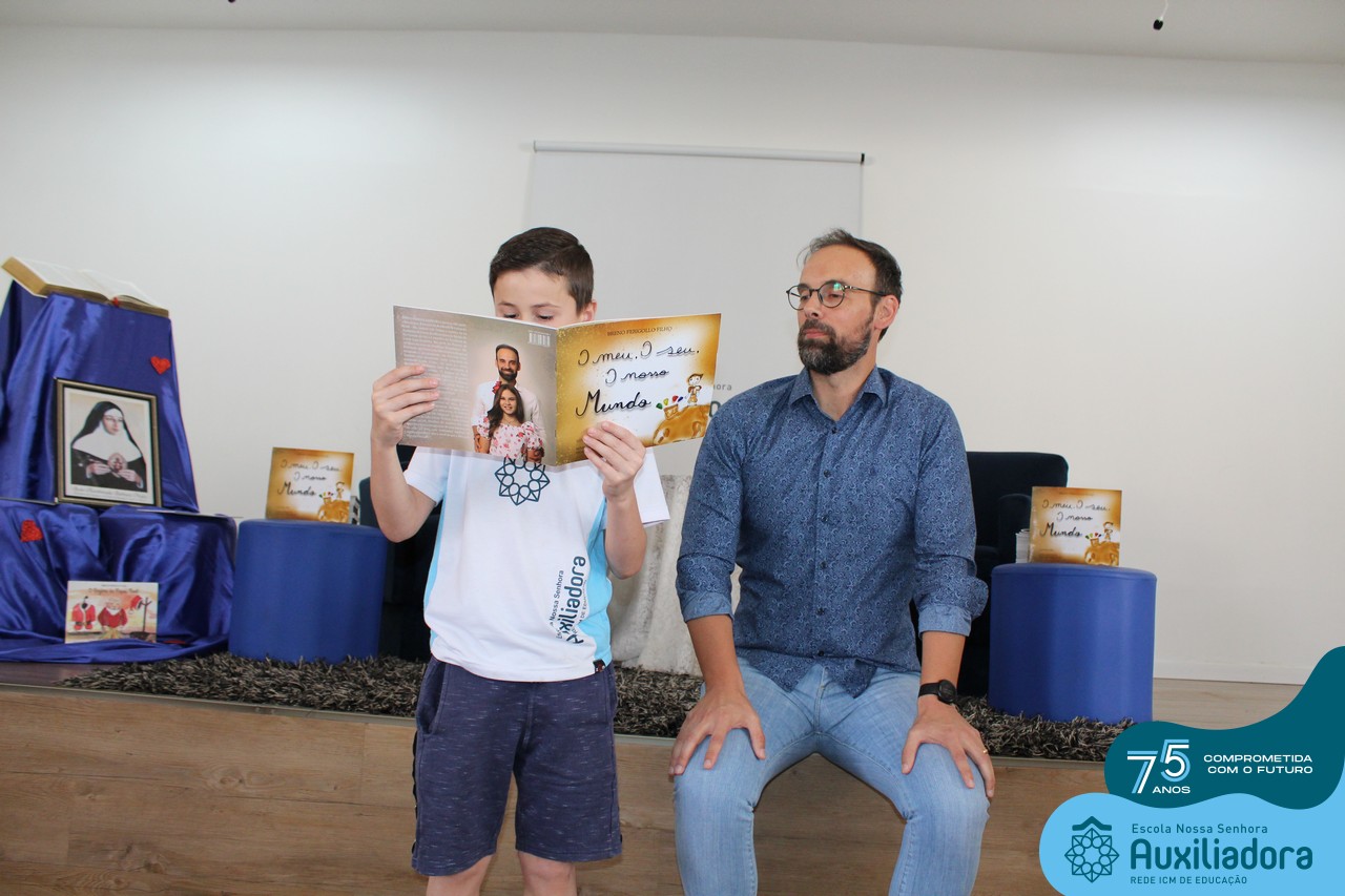Foi com muita alegria, orgulho e gratidão que recebemos o Autor, ex-aluno e pai Breno Ferigollo Filho para o lançamento de seu novo livro “O meu, o seu, o nosso mundo”. O lançamento aconteceu no auditório da escola no dia 10/11.