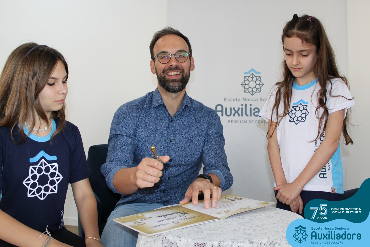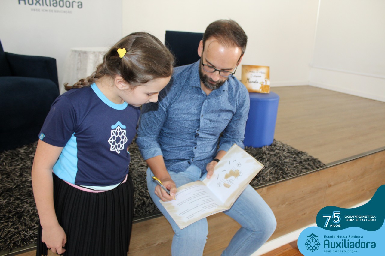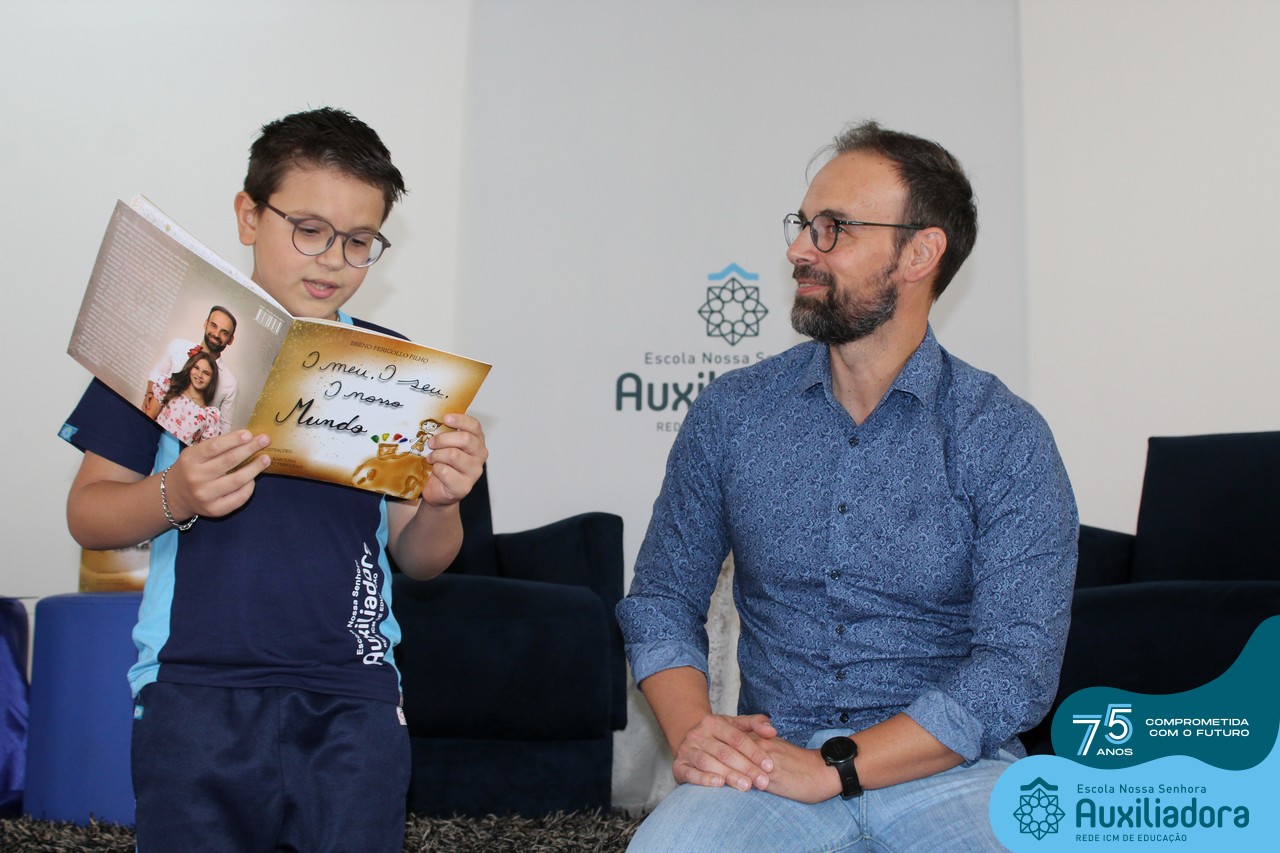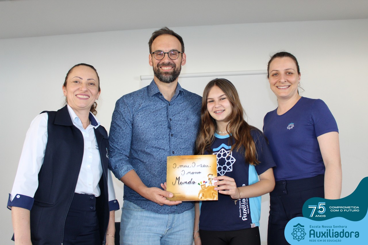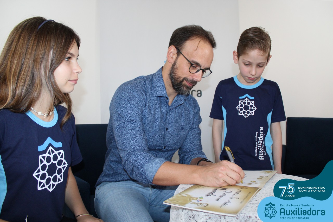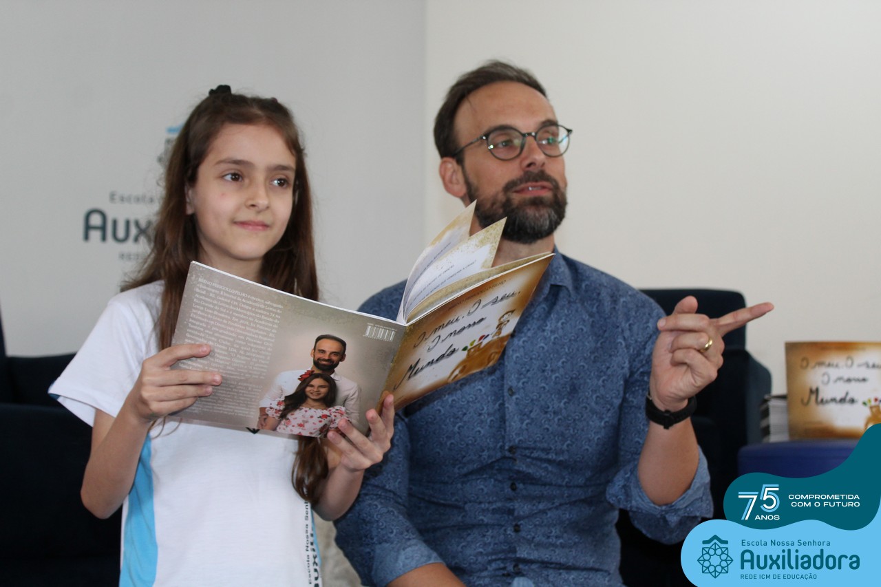 Foi com muita alegria, orgulho e gratidão que recebemos o Autor, ex-aluno e pai Breno Ferigollo Filho para o lançamento de seu novo livro “O meu, o seu, o nosso mundo”. O lançamento aconteceu no auditório da escola no dia 10/11.